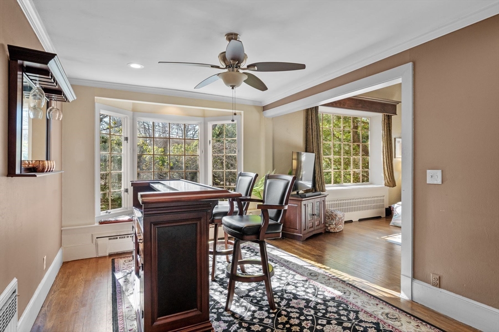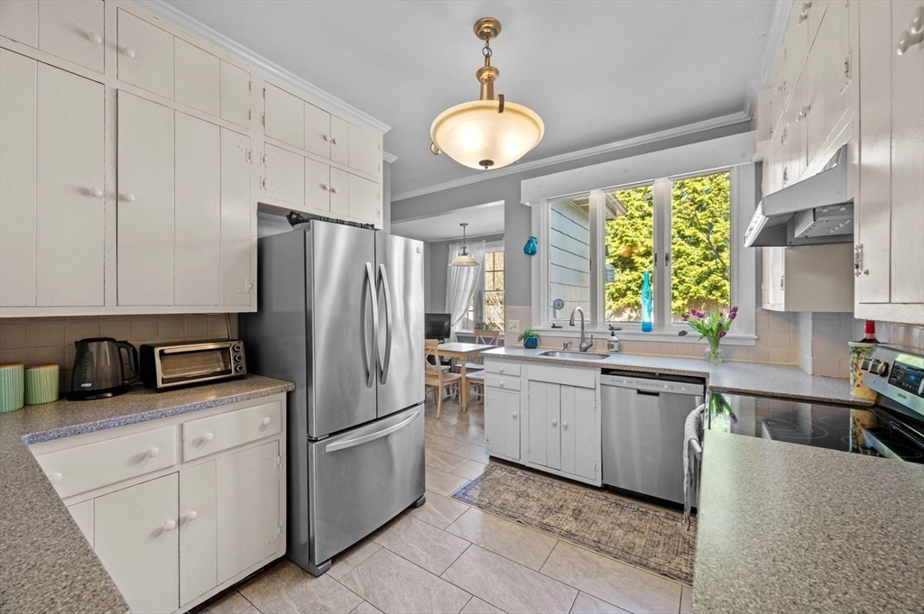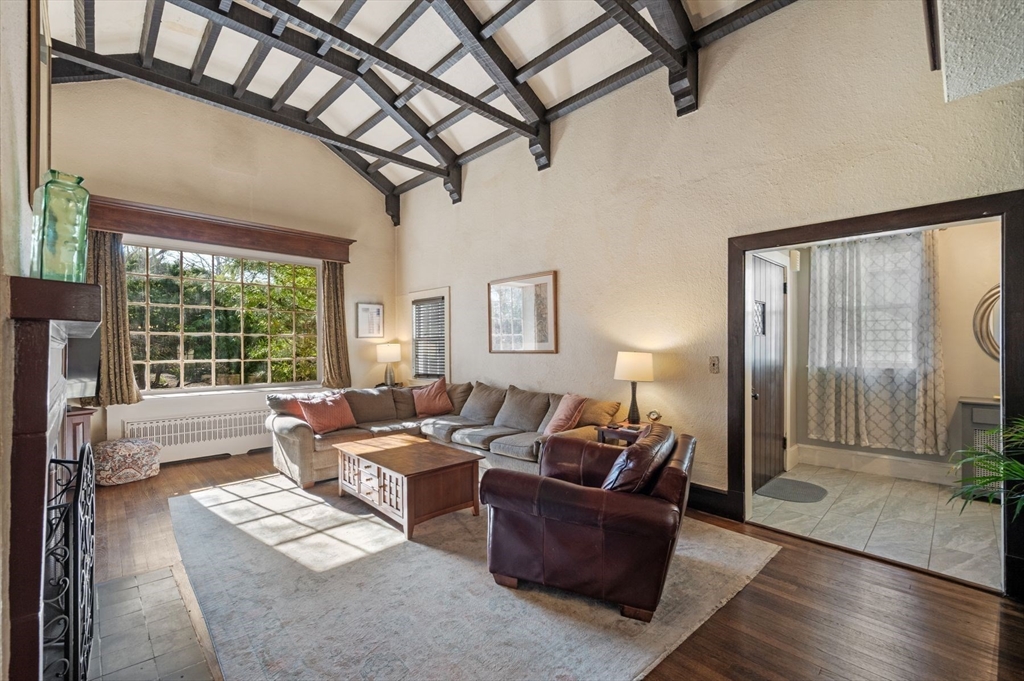 Located in the highly sought-after Littles Point area, down the street from the beach, this 4-bedroom Colonial blends 1920s charm with modern updates. Set back from the road, it offers privacy, abundant natural light, and generously sized rooms. A welcoming foyer leads to a fireplace living room with stunning beamed cathedral ceiling. Eat-in kitchen, formal dining room, and family room with direct yard access are great for entertaining. The first floor includes a office or guest bedroom with full bath. Upstairs features the primary ensuite, two additional bedrooms, and a renovated bath. Recent updates include a newer roof, updated windows, freshly painted interior rooms, and freshly painted exterior. A second-floor greenhouse/office, large, private fenced yard, patio, and two-car garage complete this move-in-ready home!