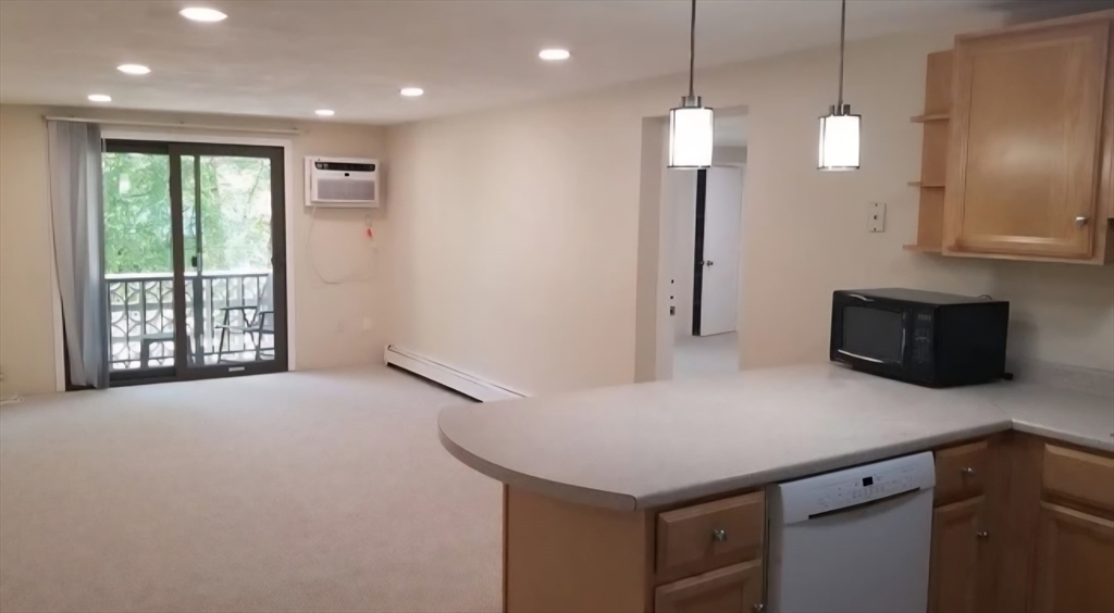 Spacious 2-bedroom, 2-bath garden-style unit in vibrant West Medford Square.Recently renovated unit features a modern kitchen and bathrooms, wall-mounted A/C, dishwasher, refrigerator, oven, freezer, balconies off the living room and master bedroom, ample storage, and carpeted flooring.Heat, gas, and water included.On-site laundry room, elevator, intercom security, and ample off-street parking.Just one block from the train (1 stop to North Station) with easy walking access to shops, restaurants, bus lines, Tufts University, and Davis Square.