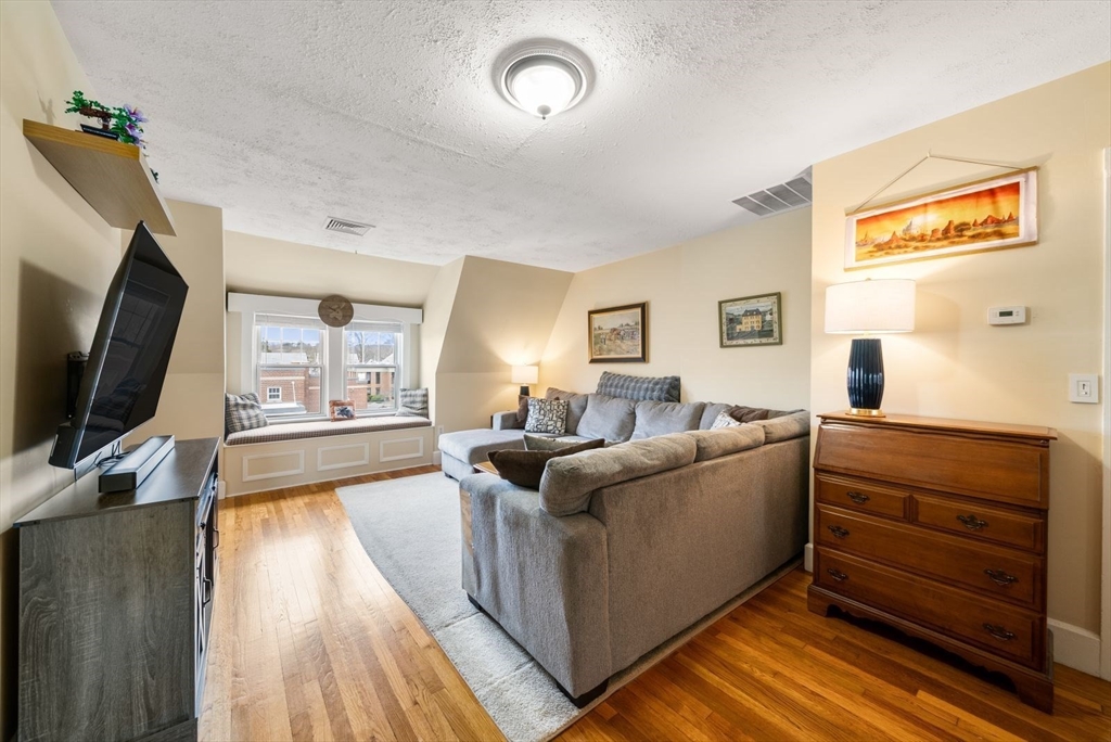 Bright, spacious, and ideally located, this sun-filled third-floor condo at 4 Alden Street in Danvers offers comfort, character, and everyday convenience. The well-designed layout features two generous bedrooms, a versatile study, an eat-in kitchen and a full bath, providing flexible space for living, working, or hosting guests. Beautiful hardwood floors run through the living room, primary bedroom, and study, adding warmth and timeless appeal. Natural light pours into the home, creating an inviting atmosphere throughout. Enjoy the ease of in-unit washer and dryer, along with ample storage to keep everything organized. Outside, a shared yard offers space to relax or unwind, while two-car parking adds rare and valuable convenience. Set in a desirable in-town location, this home provides easy access to local shops, dining, and commuter routes—making it a perfect blend of lifestyle and practicality.