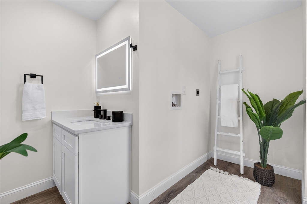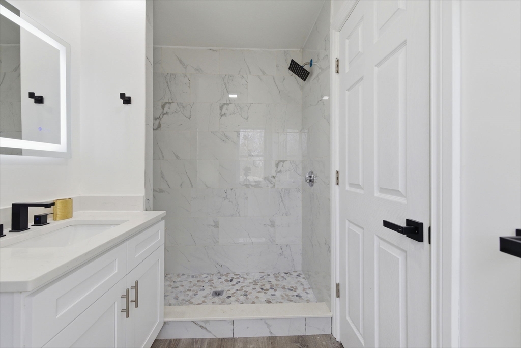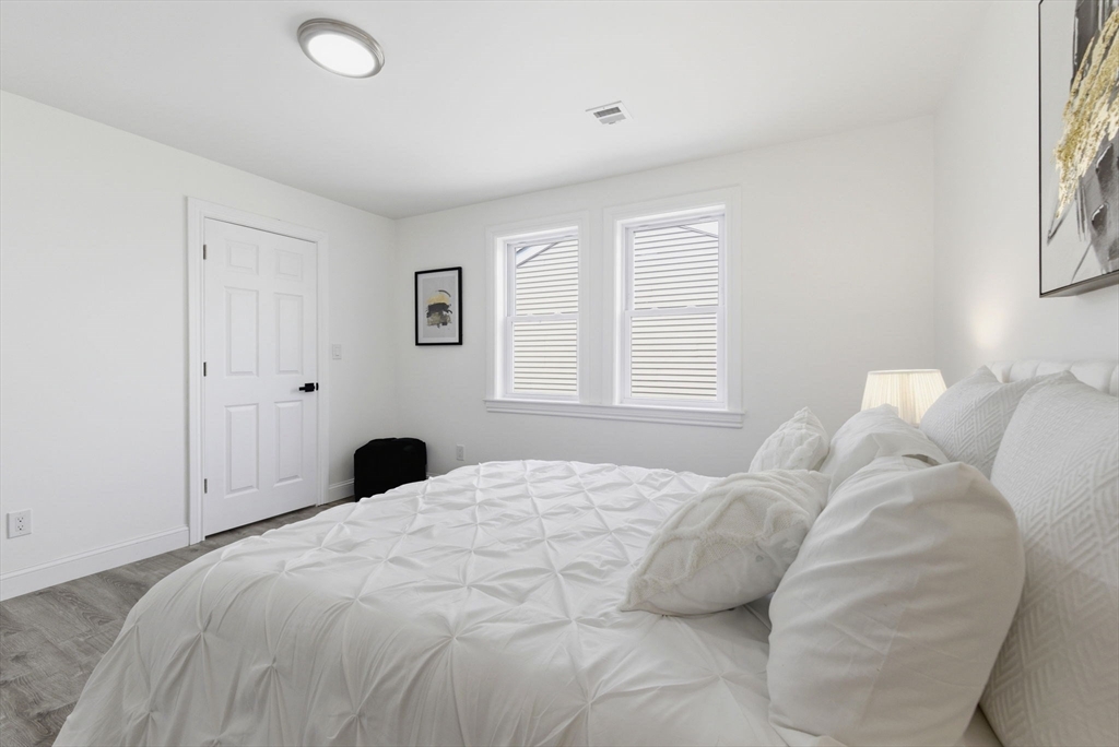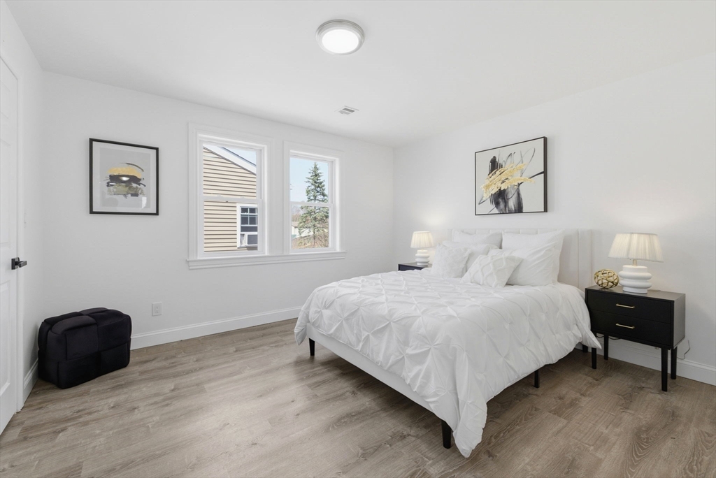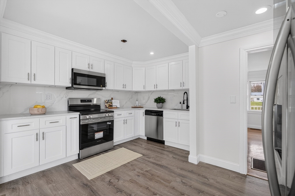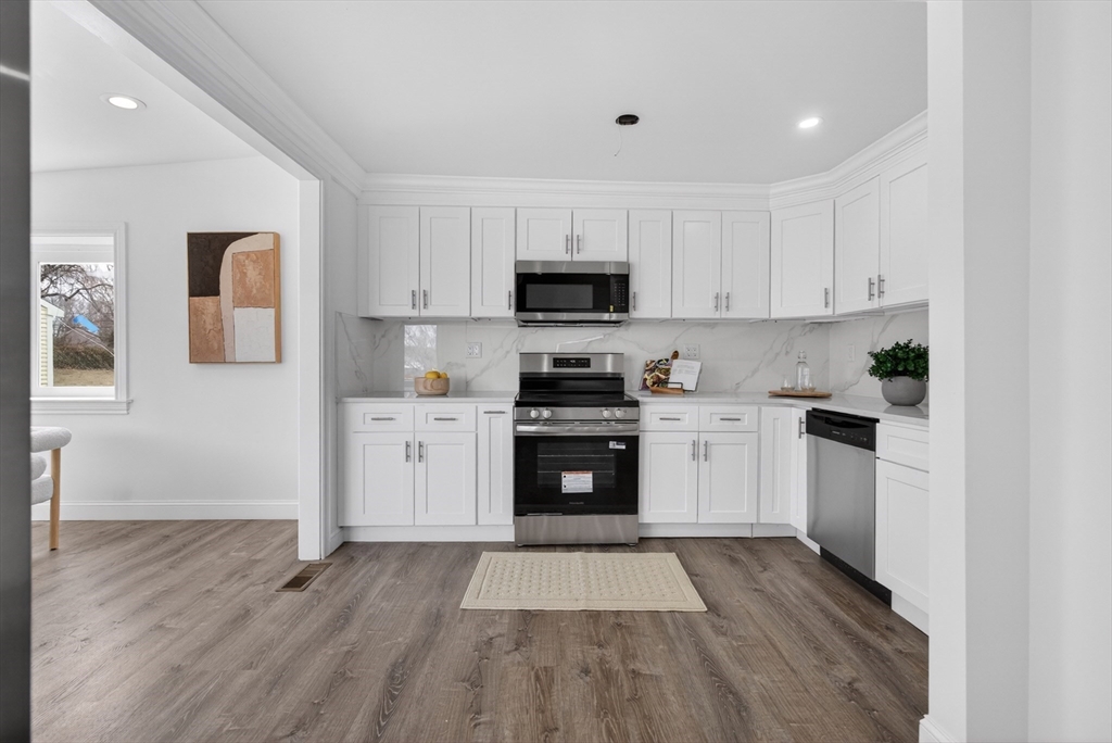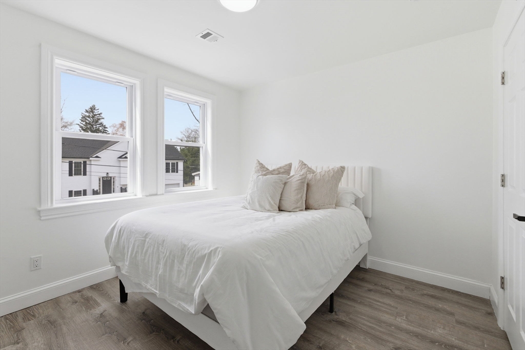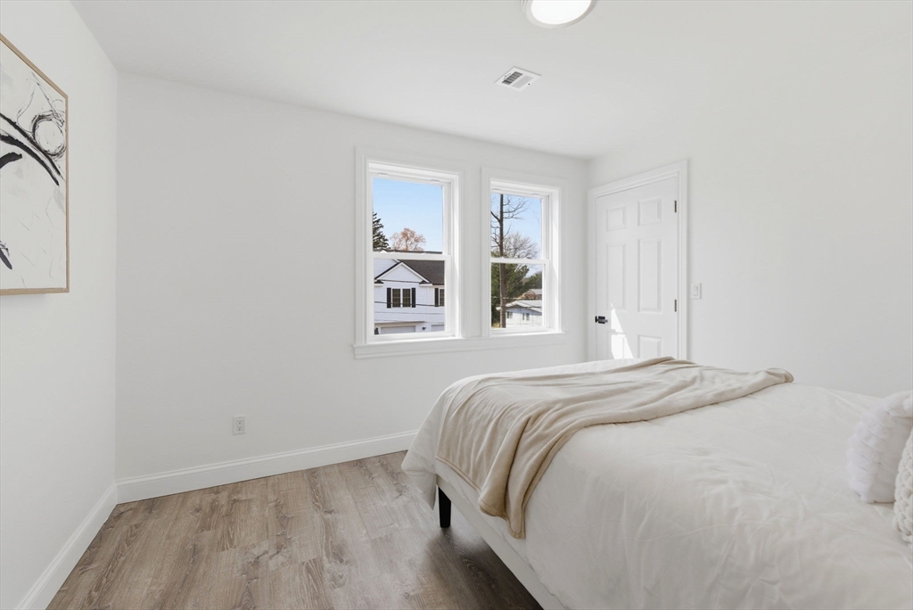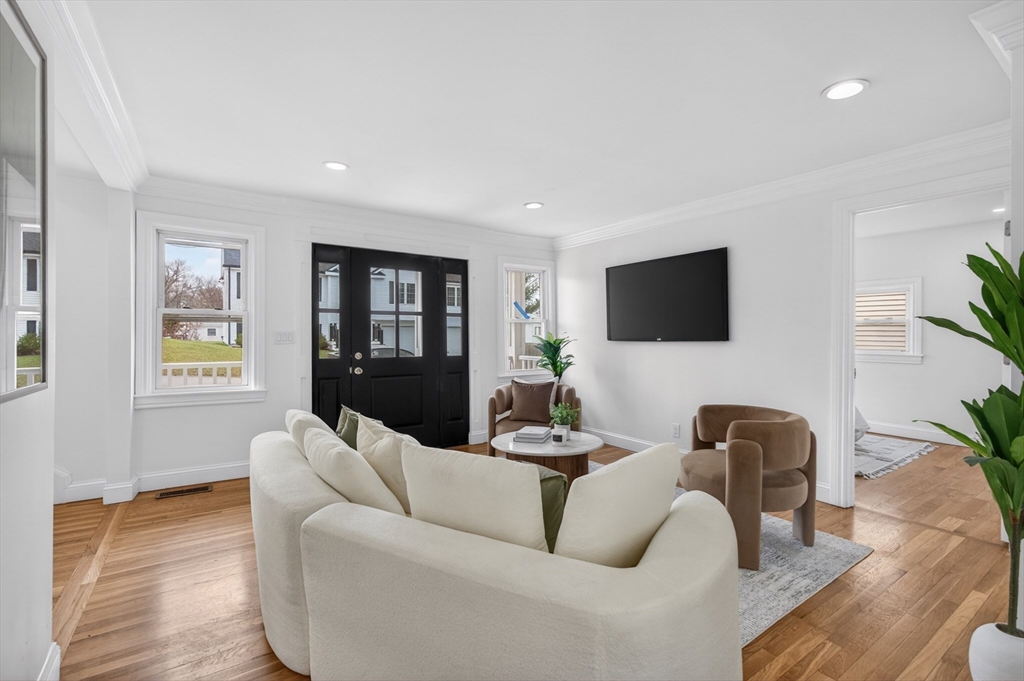 Experience the perfect blend of modern design and impressive scale in this extensively renovated Colonial home. Offering over 2,000 square feet of thoughtfully designed living space, this property has been transformed with high-end finishes throughout, including a fully rebuilt second level from the studs up. Features include new electrical, plumbing, roof, and high-efficiency heat pump providing both heating and central air. The open-concept layout is ideal for both entertaining and everyday living, flowing seamlessly from the sun-filled living area to a formal dining space enhanced by abundant natural light and a skylight, then out to an oversized deck overlooking a quiet, peaceful setting. This versatile floor plan features 4 spacious bedrooms and 4 designer bathrooms, highlighted by two private primary suites—an uncommon feature that provides exceptional flexibility for guests or multi-generational living. The massive unfinished basement offers endless potential for the future!