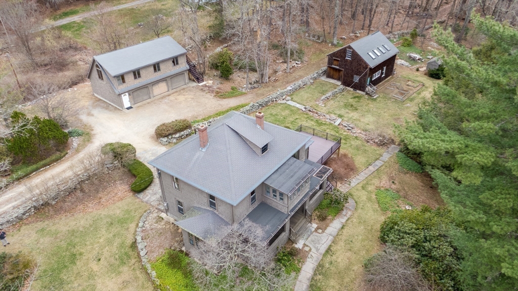 The Tyler-White House invites you to become part of its next chapter. Tucked away on 3 surprisingly private, picturesque acres, this timeless 5-bedroom Craftsman blends vintage charm with modern elegance in a truly special setting. Built in the early 1900s, its rare Prairie-style architecture and enduring craftsmanship create a home rich in character and presence. A standout feature is the detached three-car garage with a beautifully finished upper level, offering exceptional ADU potential—ideal for extended family, guests, or potential additional income. As you approach, the setting unfolds—elevated, peaceful, and surrounded by nature. The classic front porch welcomes you, while inside, more than 2,200 square feet of living space showcases timeless architectural detail, including a dining room with custom built-in cabinetry, alongside a renovated kitchen and baths. A walk-up attic offers expansion potential. A charming barn with two stalls adds versatility and character.