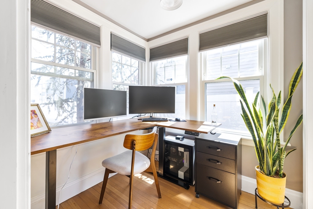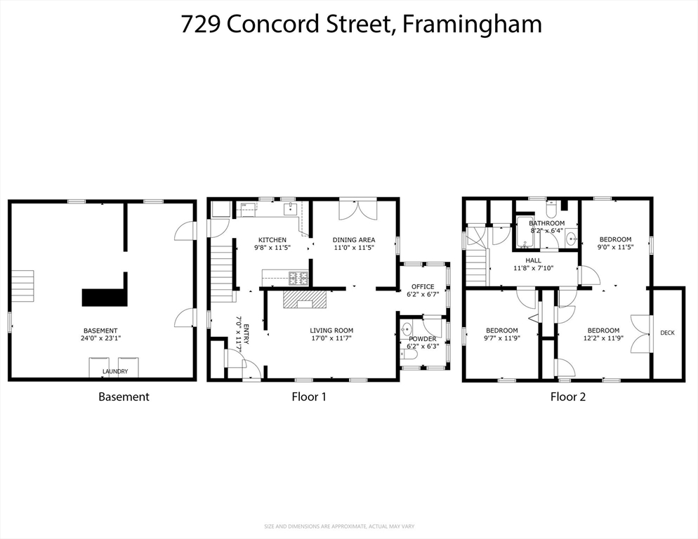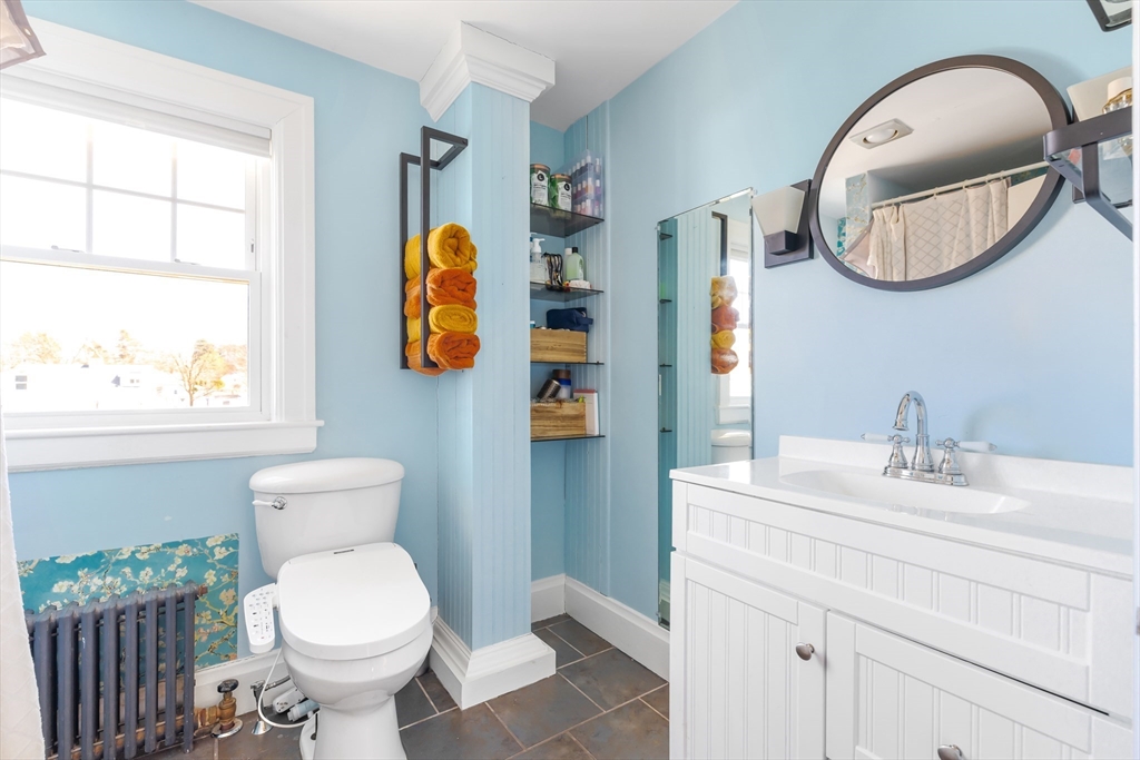 Absolutely charming move-in-ready 3-bedroom Colonial with great deck/yard space in super convenient Framingham location! The bright and sunny first floor is home to a kitchen, living room with fireplace, dining room with slider to back deck, office space and half bath. Upstairs, you will find three bedrooms (two are possible to be joined together into a larger room OR separated) and a full bathroom. One bedroom has access to a private and lovely balcony. The unfinished basement has laundry and tons of extra storage space. The unfinished walk-up added could be finished for additional living space within the home. Behind the house, there is a large detached garage plus additional parking in the driveway, and additionally a fabulous deck with fire pit and yard space. Minutes to the Natick mall area with stores/restaurants, and easy access to Rte 9 for commuting make this an ideal location. Do not miss this one!