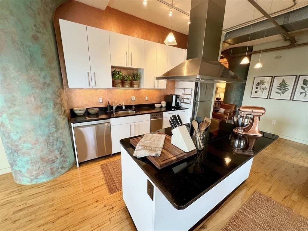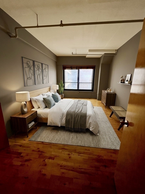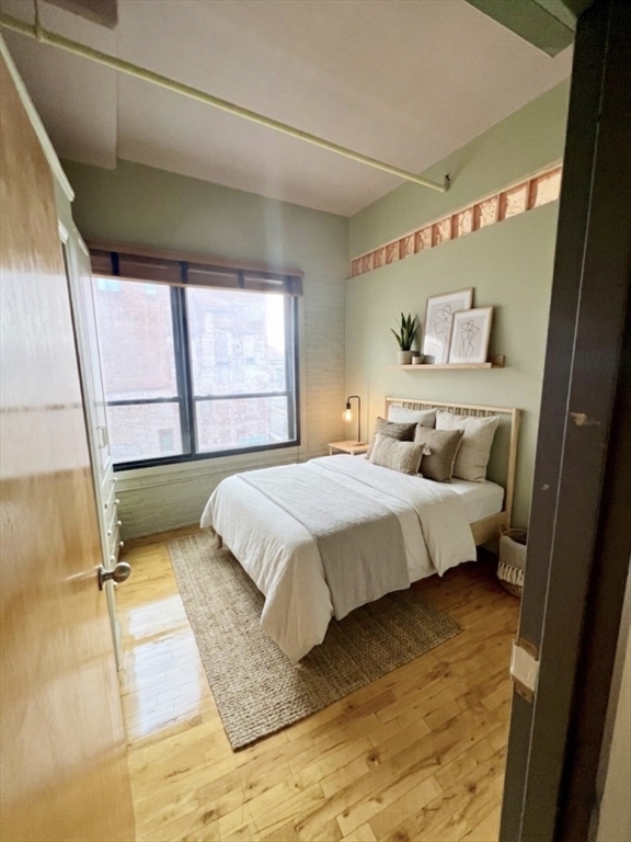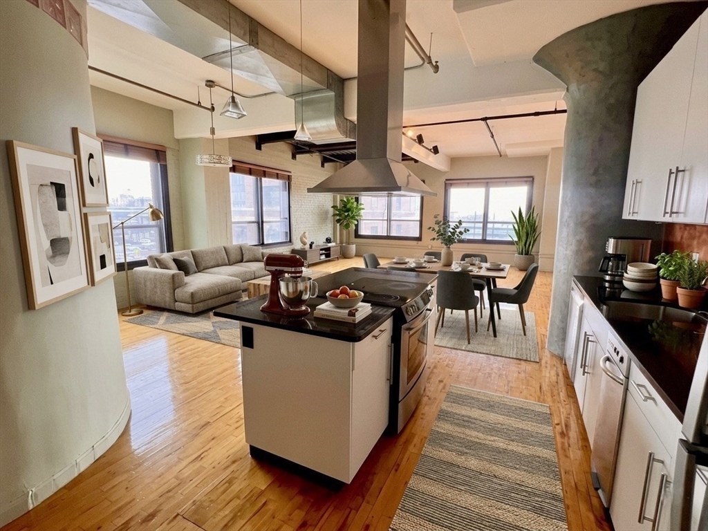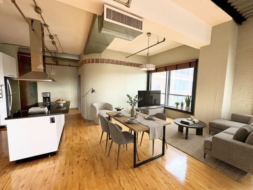 Experience authentic loft living in the heart of the Leather District. This exquisite corner-unit residence boasts over 1,400 square feet of airy, unobstructed living space defined by soaring 12-foot ceilings and massive industrial windows. Bathed in natural light, the open-concept floor plan flows seamlessly, featuring a spacious primary suite with a custom walk-in closet and private ensuite bath. With zero wasted space and a premier location minutes from the Financial District, South Station, and major transit (93/90), this home offers an unbeatable blend of historic character and modern convenience.