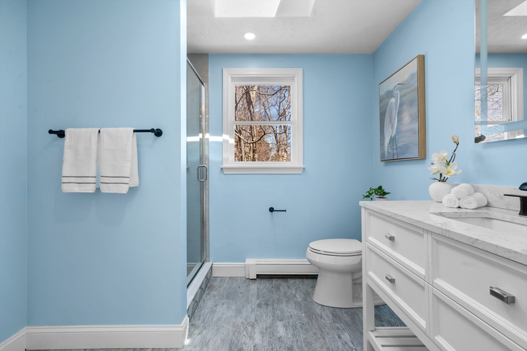 Beautifully renovated and filled with natural light, just 5 minutes drive from the beach, this 4-bedroom, 3-bath home offers the perfect mix of comfort, style, and flexible living in Falmouth. The stunning open kitchen is designed to impress, featuring all new shaker-style cabinetry, stainless-steel appliances, and sparkling Princess Quartzite countertops. It opens to the bright living and dining areas, where large windows and sliders to the deck create a sunny, inviting space for everyday living and entertaining. A first-floor bedroom and full bath add convenience, while the walkout lower-level offers a private suite with its own bedroom, full bath, living area, and kitchenette, perfect for guests, extended family, or extra space to spread out. Thoughtfully designed and move-in ready, this home is close to beaches, restaurants, shops, and all the best of Falmouth living.