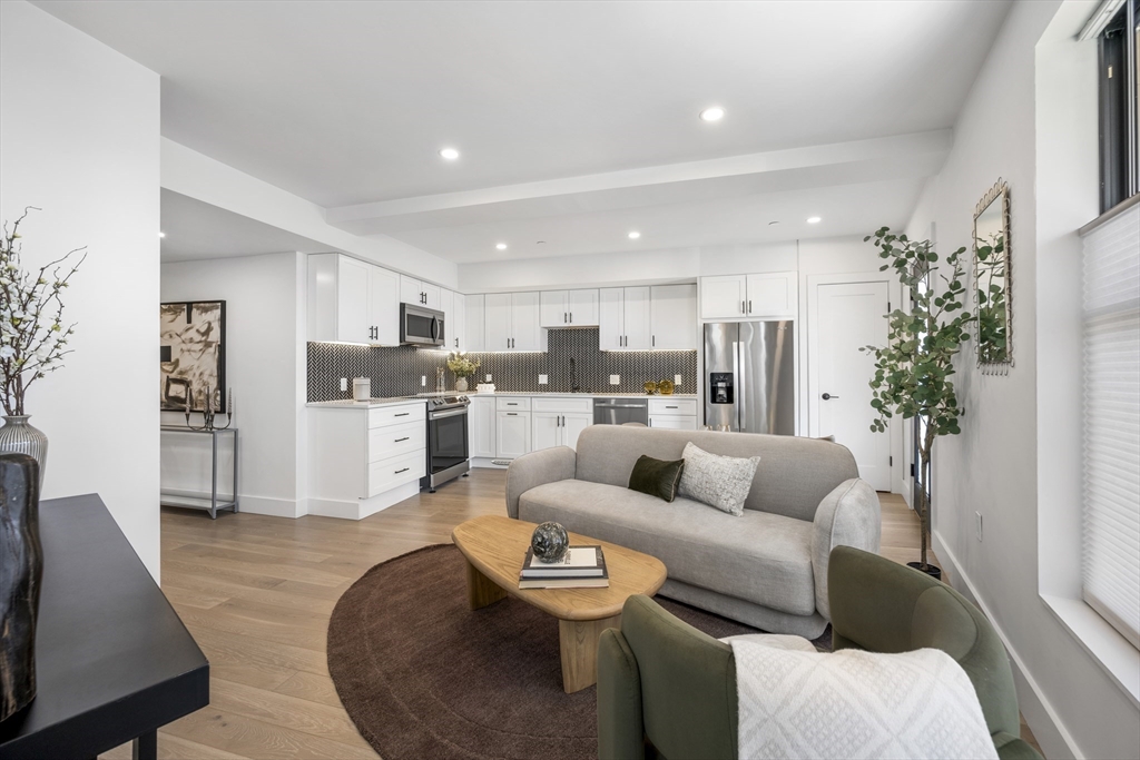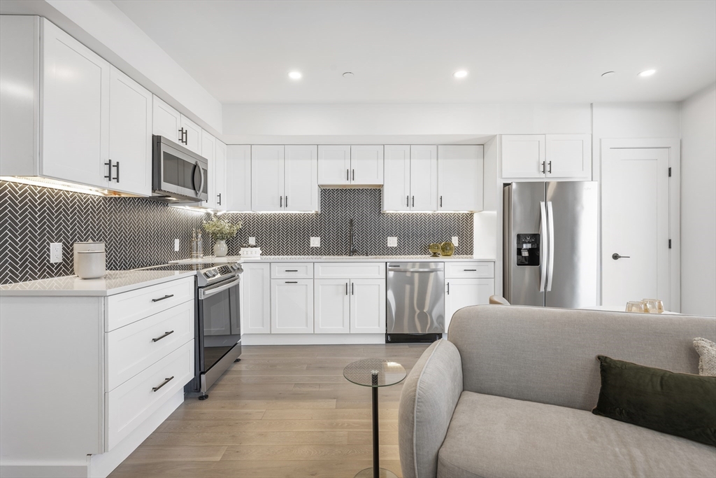 Spacious 1 bedroom with DEEDED GARAGE parking and private outdoor space. Built in 2023, 7 Wordsworth #1 features open concept living, contemporary finishes, in-unit laundry, Central AC, high ceilings and plenty of windows that allow natural light throughout the day. Private entry provides easy access with no stairs, ideal for everyday living, pet owners, and effortless move-ins. Thoughtfully designed kitchen includes modern cabinetry and stainless appliances. Deeded garage parking space and low condo fee provide outstanding value! Conveniently located near neighborhood restaurants, green space, bus routes, Logan Airport, and downtown Boston. Perfect opportunity for first-time buyers or investors seeking newer construction, parking, and low carrying costs in East Boston! Easy to show!