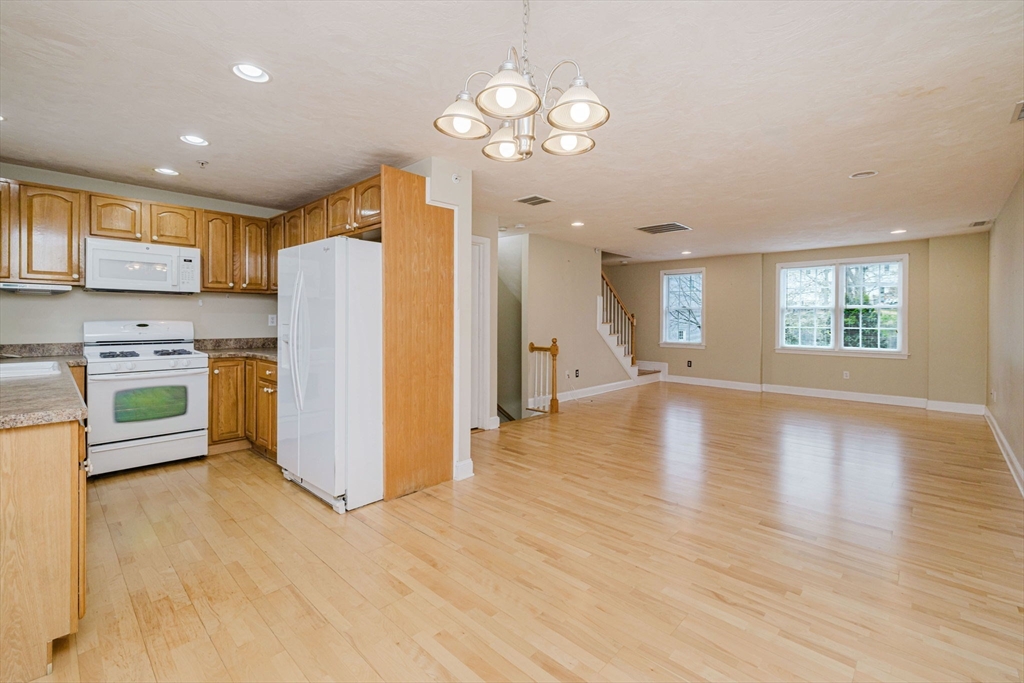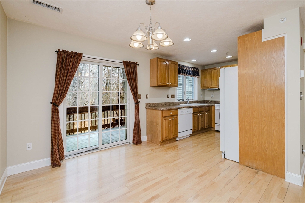 Beautiful Townhouse located in a very quiet area adjacent to tranquil woods with a winding river view. Townhouse offers an Open Concept on the main area, 2 Large bedrooms, 2 Full baths, a ½ bath and a loft area that is perfect for an at home office or play area! You will find hardwood floors throughout, including Tile in baths and the updated kitchen. Sit on your back deck areas (2) and watch the deer. Town water & sewer, electric is TMLP, central air and added storage space can be found off the 1 car garage providing for a total of 3 unit parking spaces. Unit also includes all appliances & washer & dryer. Well managed association with Low condo fees of $248.00 per month. This property is minutes to Route 138 and 140 and Rt. 495 for an easy commute. Shopping and dining including medical facilities are all close by!