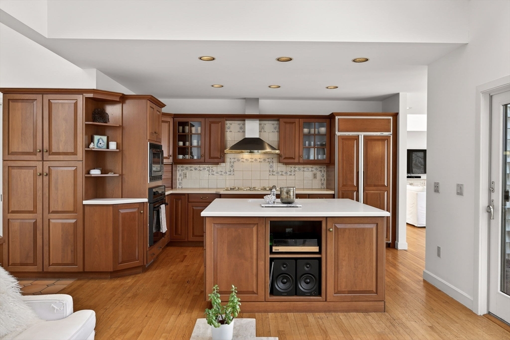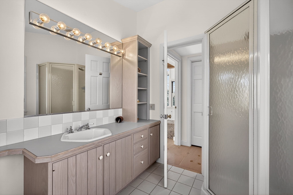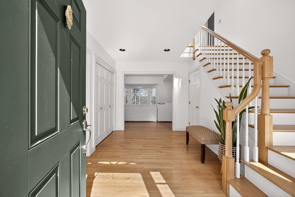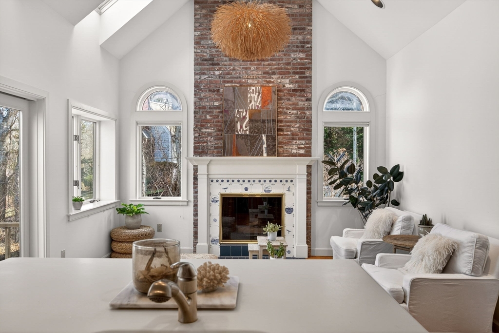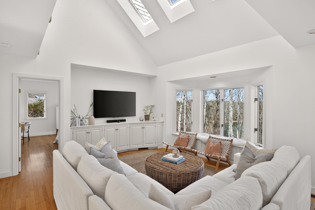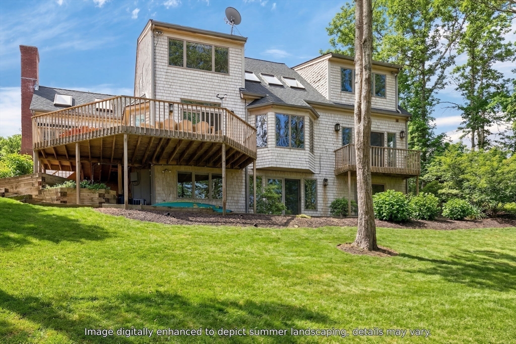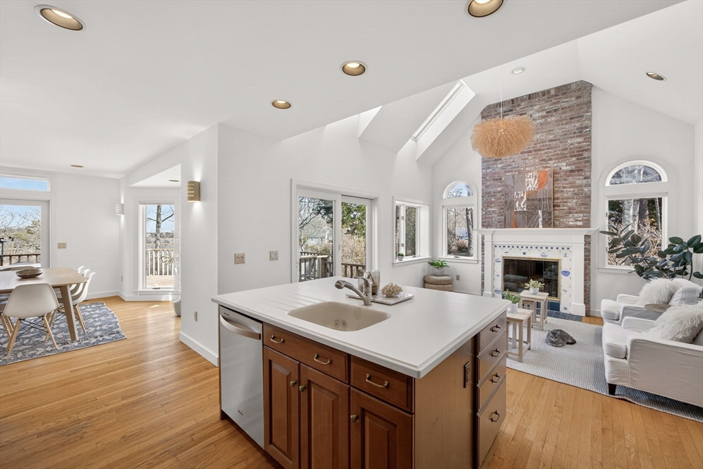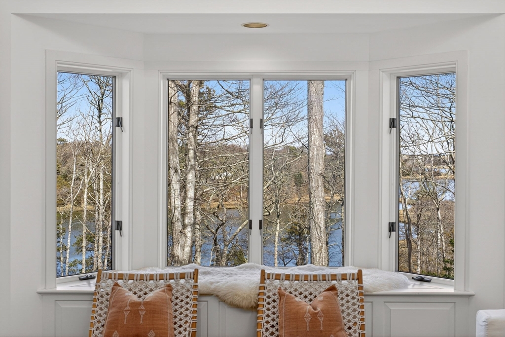 This impeccable waterfront home offers panoramic views across Mill Pond to Nauset Beach and beyond from every primary living space. A private path leads to the water with mooring potential and direct ocean access. The cathedral-ceiling living room flows through the dining area and kitchen with sliders to a wraparound deck for seamless indoor-outdoor living. The kitchen features cherry cabinetry, a center island, and mudroom/laundry with access to a side deck, stone patio, and outdoor shower, while a wood-burning fireplace anchors the den. The first-floor primary suite includes water views, a walk-in closet, ensuite bath, and private deck. Above the two-car garage, a private guest suite with full bath and separate entrance is ideal for guests or a studio. The walk-out lower level offers a wet bar, finished living area with views, guest room/office, cedar closet, and plumbing for a future bath. Passing Title V for 5 bedrooms, with expansion potential and room for a pool.
