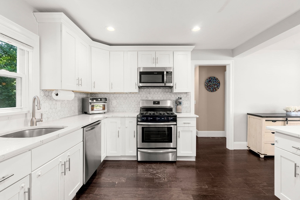 Welcome to 68 Prospect Street! Thoughtfully taken down to the studs and completely rebuilt in 2018, this home showcases modern design and quality craftsmanship throughout. The open-concept layout features a stunning chef’s kitchen with custom cabinetry, stainless steel appliances, quartz countertops, and a spacious center island—perfect for everyday living and entertaining.Stylish finishes include recessed lighting, designer tile in the kitchen and baths, elegant moldings, and engineered hardwood floors. The home offers three generously sized bedrooms with ample closet space.Ideally located just moments from the town center, train, and elementary school, this property sits in a quiet cul-de-sac neighborhood with direct access to a ball field and playground. Set on over half an acre, the beautifully terraced yard backs up to wooded privacy and offers exciting potential for future expansion.