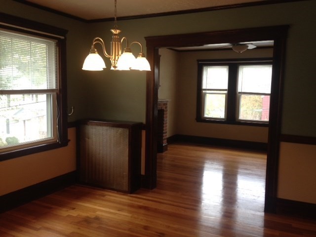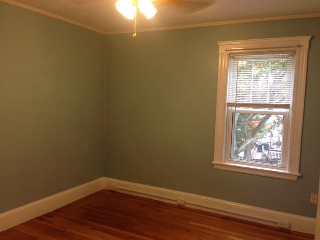 Spacious and sunny second floor unit, Updated kitchen and bath, lovely hardwood floors, laundry for unit in basement, storage, off street parking, beautiful grounds.