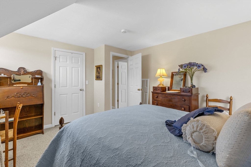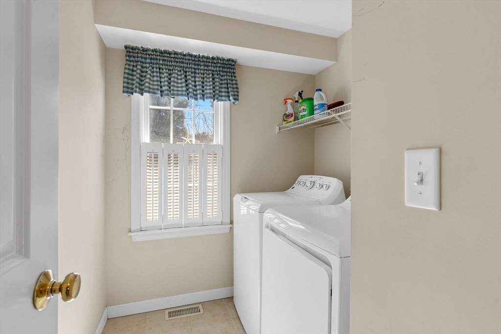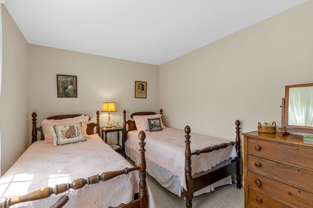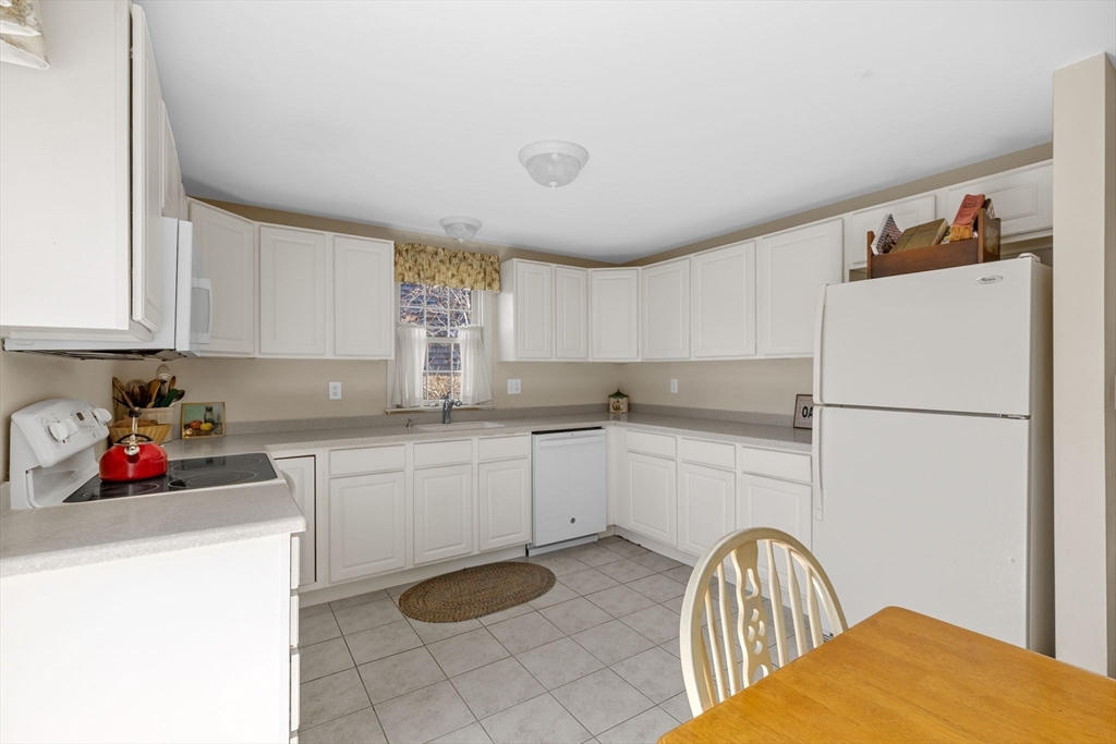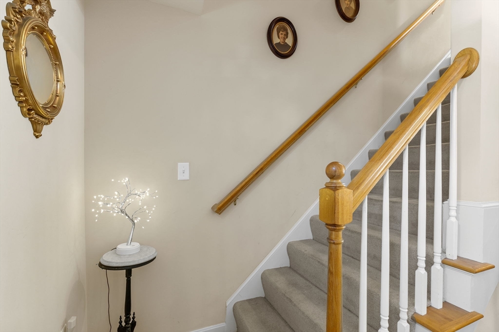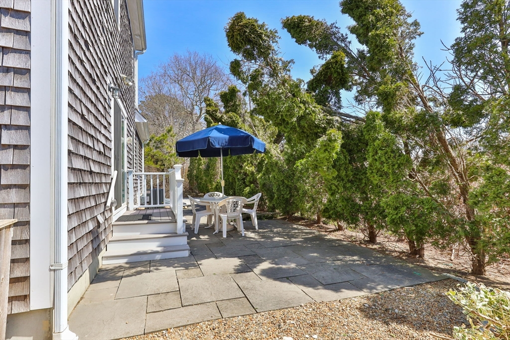 Welcome to Mill Pond Village! These beautifully landscaped Nantucket-style homes offer the privacy of single-family living with the convenience of condominium ownership. This well maintained 3-bedroom, 2-bath free-standing condo is move-in ready. The open-concept first floor features a bright kitchen with eat-in dining and large sliders leading to a private stone patio, convenient first-floor laundry, and a spacious primary bedroom with a private full bath. Upstairs, two generously sized bedrooms share a full bath and also includes a large unfinished storage room. Additional highlights include lots of closets, a full clean basement offering excellent storage or future potential, new central A/C, a gas fireplace, and newer natural gas heat for year-round comfort. Ideally located just minutes from shopping, dining, great beaches, and the Cape Cod Rail Trail.
