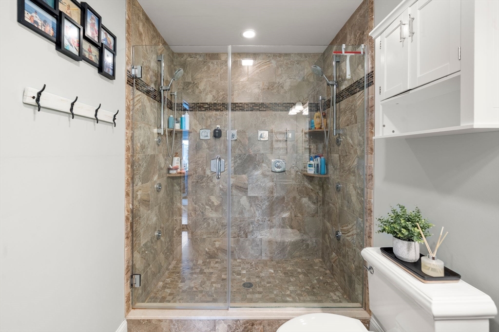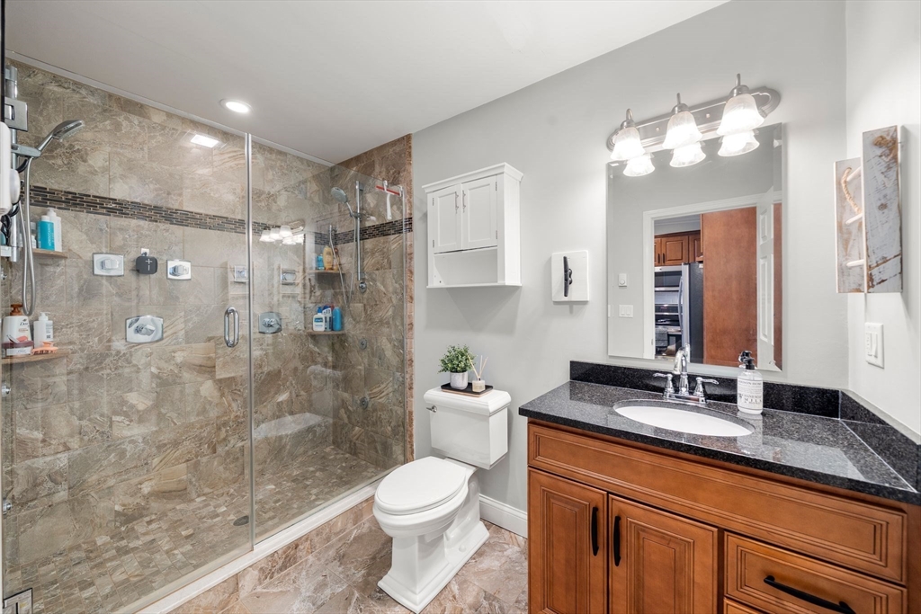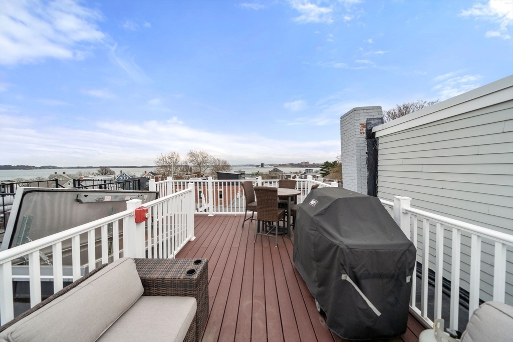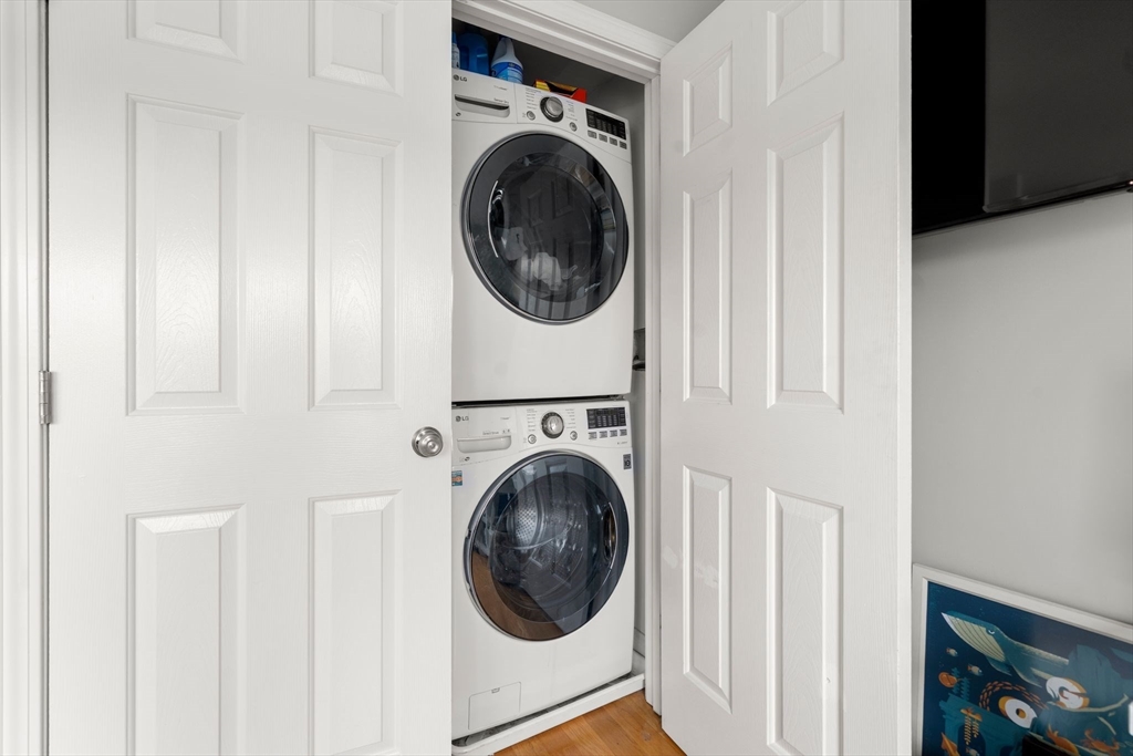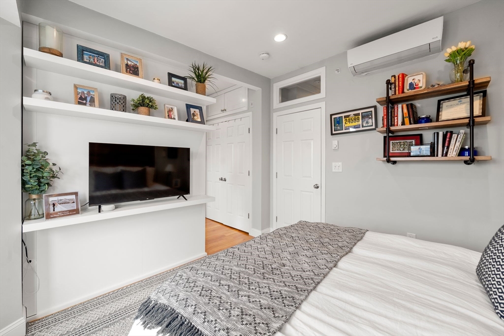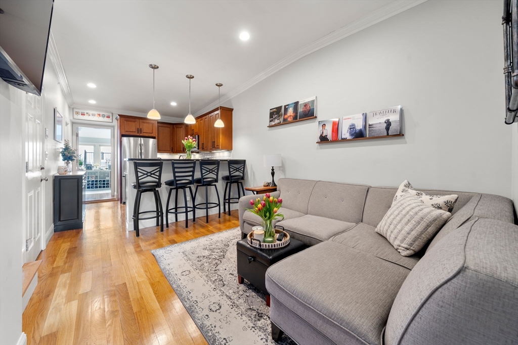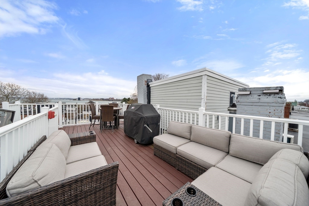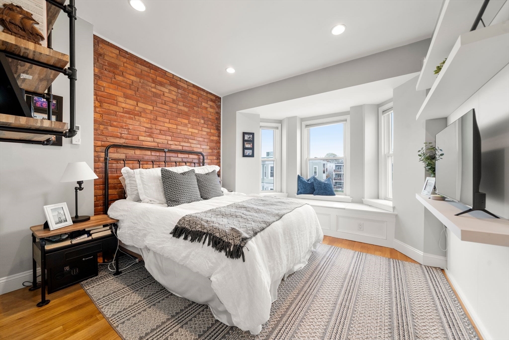 Welcome to this penthouse unit on the East side of Southie! This floor-through condo offers a clean, modern layout with thoughtful details throughout. The home includes a spacious primary bedroom and a second room perfect for a gym or office, making it easy to adapt to your needs. The kitchen features granite countertops, stainless steel appliances, and a breakfast bar that opens to the living area. High ceilings, hardwood floors, crown molding, and recessed lighting add to the overall feel, while central air and an in-unit washer/dryer bring everyday convenience. The bedroom has nice character with exposed brick and a custom window seat and a walk in closet with amazing storage. The spacious bathroom includes a walk-in shower with dual jets. The best part is the private roof deck that offers an impressive 360-degree views of the water and the city skyline!