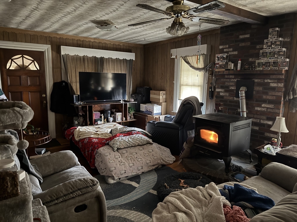 Showings Start Thursday from 2-4 by accompnaied appointments only! This diamond in the rough being sold as-is, as seen. 3 bedroom and 1 bath bungalow home on a large lot, back portion has detached garage, fenced area and 2 sheds. Spacious living room with pellet stove and eat in area, 2 bedrooms off the of the LR, kitchen with full bath and 3rd bedroom round out the floor plan. Basement is unfinished, plenty of room for storage and laundry in the basement as well as an unfinished enclosed porch off the front of the house..