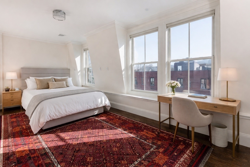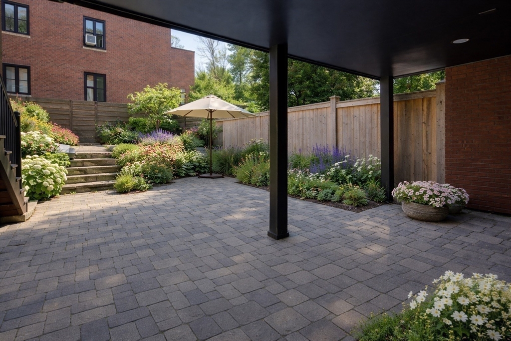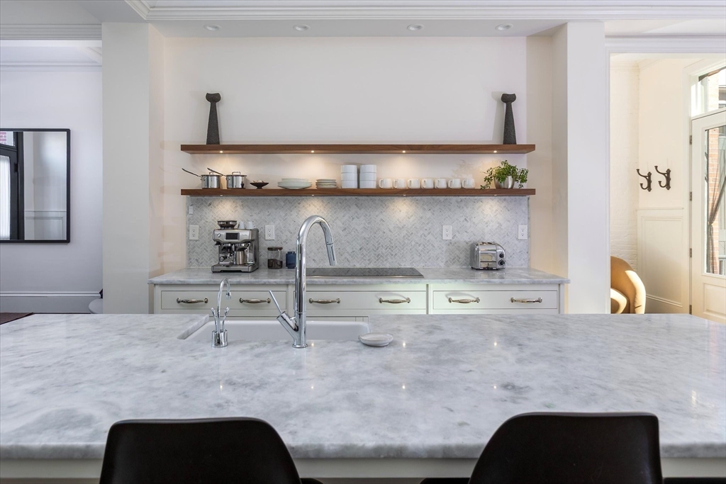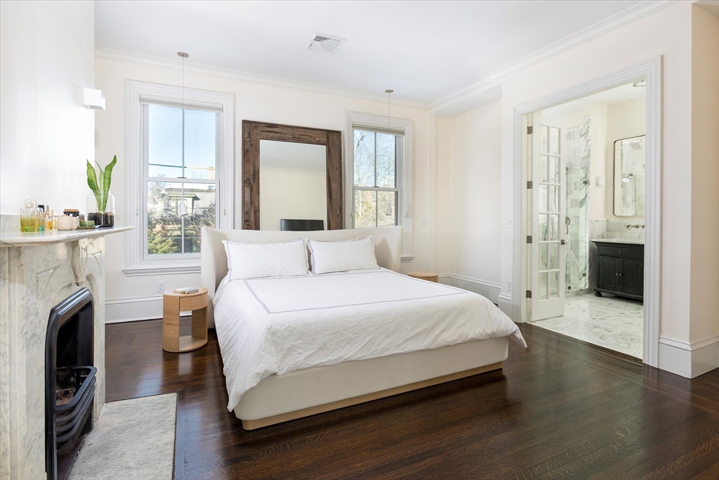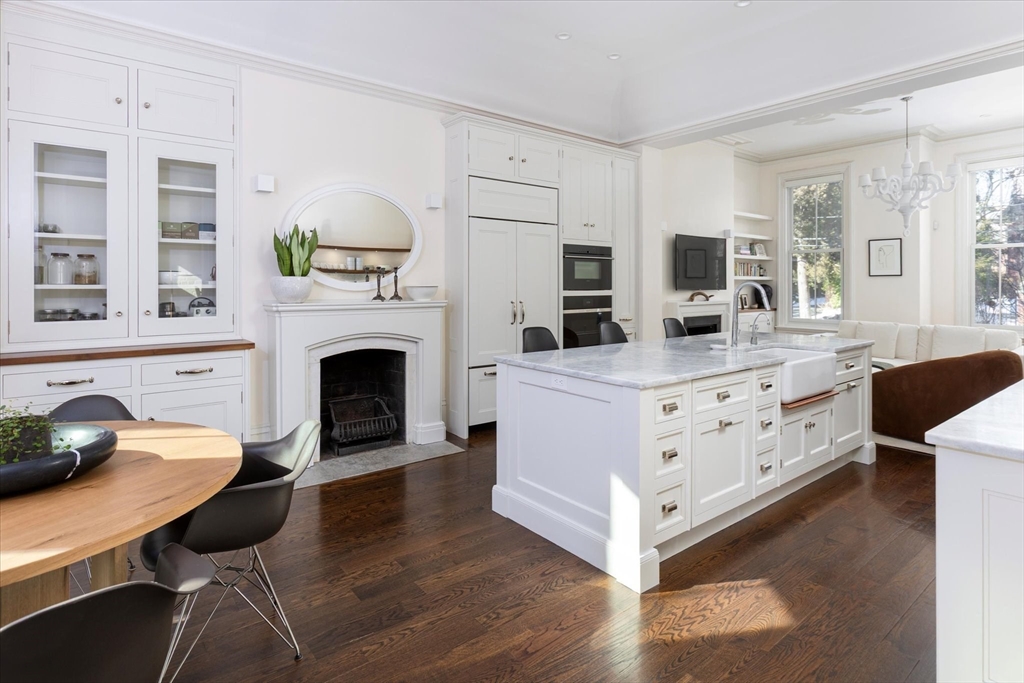 Exquisitely renovated 1876 townhouse showcasing top-of-the-line finishes in a prime Brookline location. Elegant entertaining spaces flow seamlessly into a stunning chef’s kitchen designed for both everyday living and sophisticated gatherings. An expansive deck overlooks a beautifully landscaped yard, creating the perfect backdrop for al fresco dining and outdoor enjoyment. A graceful staircase ascends to the second level, where a serene and luxurious primary suite awaits. The spa-inspired marble en suite bath features dual showers and a separate water closet. Adjacent to the primary bedroom is a library or home office with a fireplace, along with pocket doors leading to a dressing room and convenient laundry area. The skylit staircase continues to the third and top floor, offering three additional bedrooms and a full bath—providing flexibility. The lower level includes a half bath and a self-contained garden apartment with a private entrance. Rental Garage parking is available