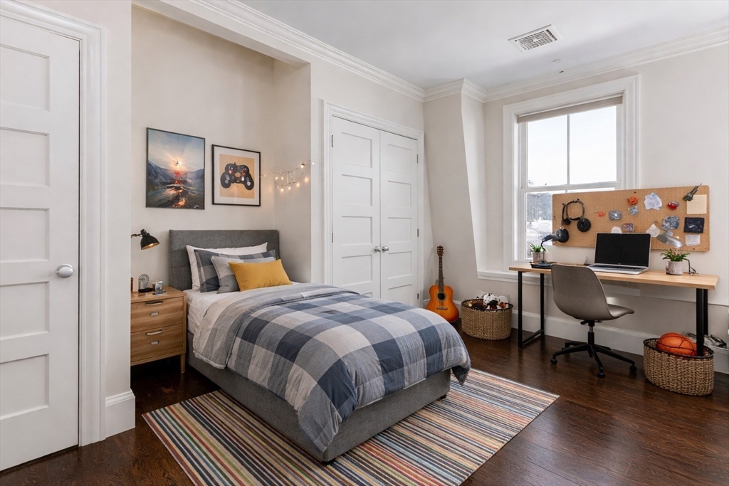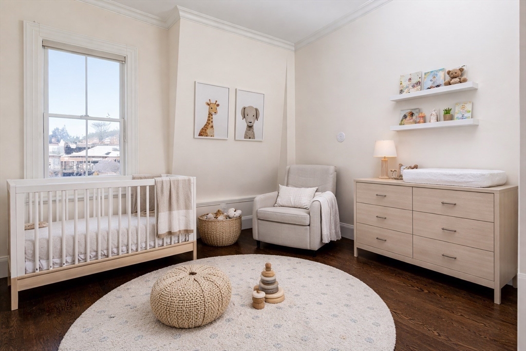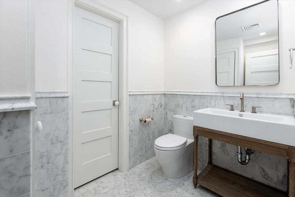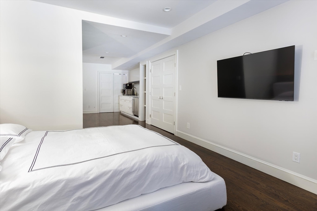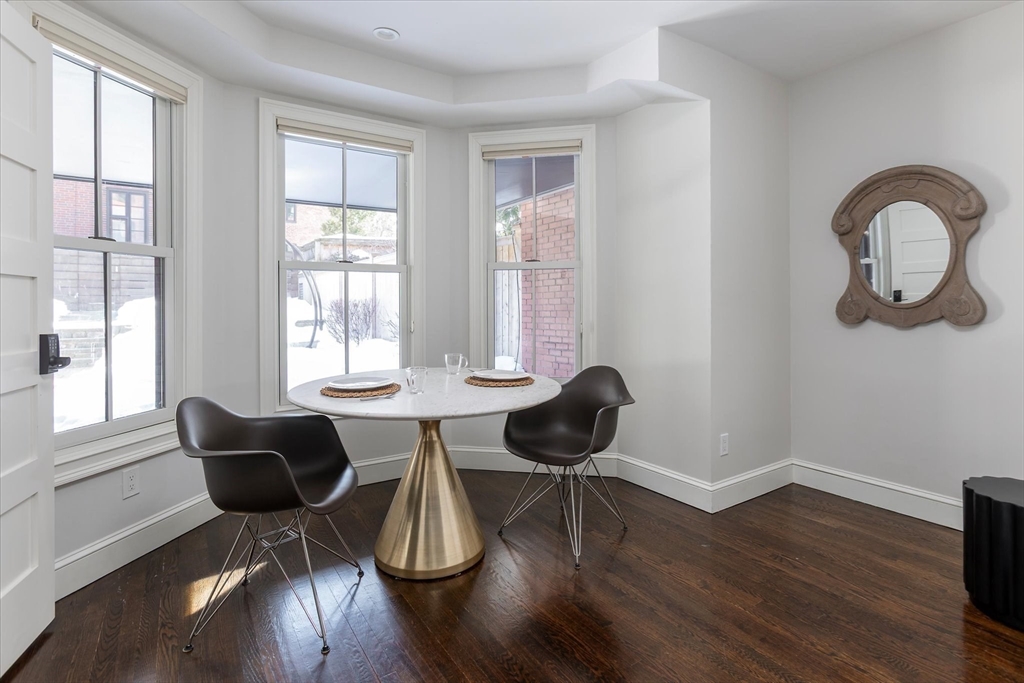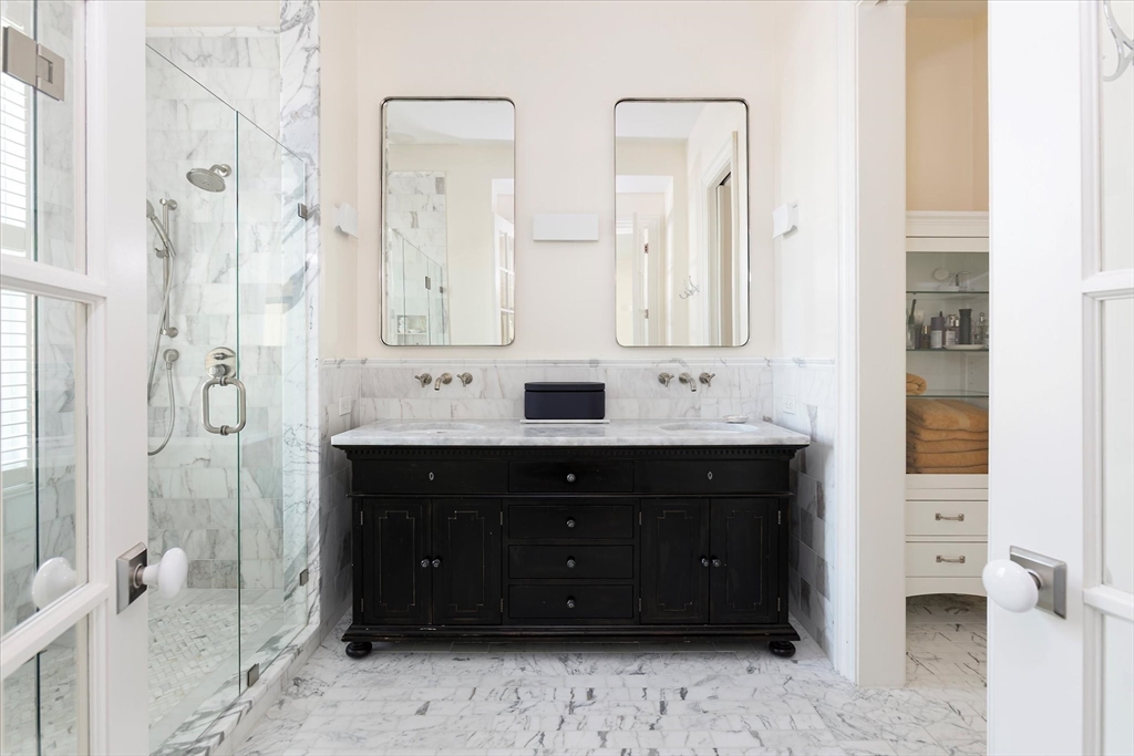 Exquisitely renovated 1876 townhouse showcasing top-of-the-line finishes in a prime Brookline location. Elegant entertaining spaces flow seamlessly into a stunning chef’s kitchen designed for both everyday living and sophisticated gatherings. An expansive deck overlooks a beautifully landscaped yard, creating the perfect backdrop for al fresco dining and outdoor enjoyment. A graceful staircase ascends to the second level, where a serene and luxurious primary suite awaits. The spa-inspired marble en suite bath features dual showers and a separate water closet. Adjacent to the primary bedroom is a library or home office with a fireplace, along with pocket doors leading to a dressing room and convenient laundry area. The skylit staircase continues to the third and top floor, offering three additional bedrooms and a full bath—providing flexibility. The lower level includes a half bath and a self-contained garden apartment with a private entrance. Rental Garage parking is available