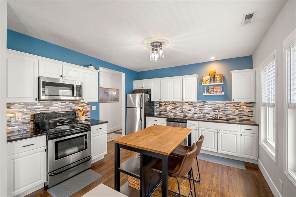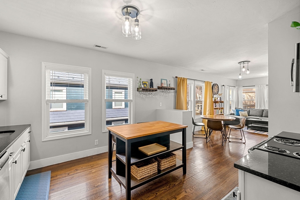 Welcome to this beautifully renovated and light-filled three-bedroom condo, ideally situated in a desirable Swampscott neighborhood. Thoughtfully updated and move-in ready, this home offers the perfect blend of comfort, style, and convenience. Inside, you’ll find an inviting open layout featuring a spacious living area, and a seamless flow from the living room into the dining space and the renovated kitchen. The kitchen and both bathrooms have been tastefully updated, creating a fresh and comforting feel. Just off the living room, you will find a charming enclosed three-season porch offering abundant natural light and a versatile space that can be enjoyed year-round. Additional highlights include central air conditioning, newer roof (2017), new insulation (2024), in-unit laundry, ample storage space, and garage parking with an EV outlet. Located close to the commuter rail to Boston, beaches, shops, and local dining, this home offers easy access to everything Swampscott has to offer!