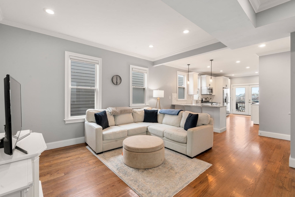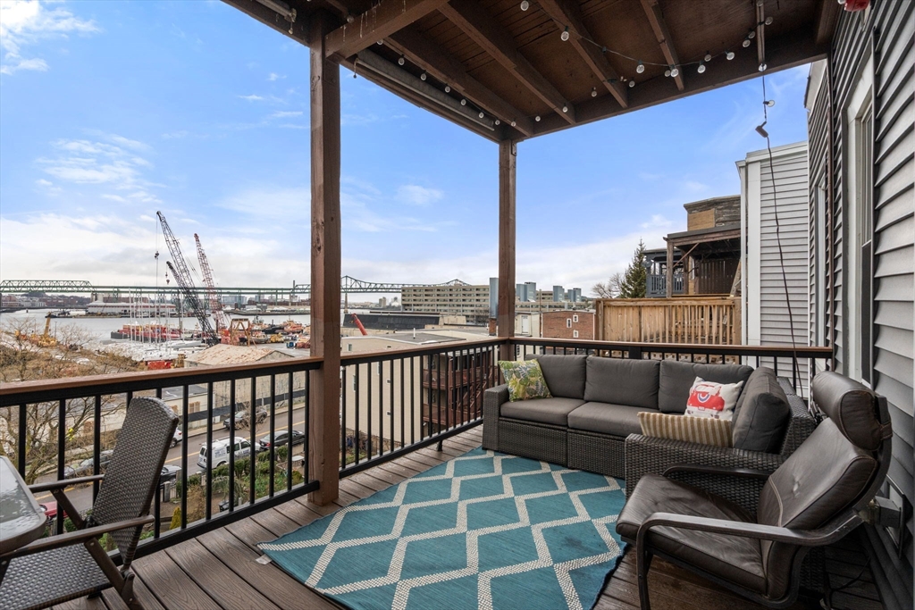 You will be hard-pressed to find a condo offering this level of function, light, and views! This 1,365 sq ft top-floor 3BR + office/2BA features sweeping Boston Harbor and skyline views from the kitchen, bedroom, and private deck. A flexible layout offers exceptional versatility, anchored by an expansive living/dining area. The oversized kitchen includes granite counters, gas range, dishwasher, stainless steel appliances, ample cabinetry, and a breakfast bar with seating for three or more. Additional highlights include in-unit W/D, central AC, and hardwood floors throughout. Tastefully updated bathrooms, generous primary suite and ample sized 2nd and 3rd bedrooms PLUS a bonus space for office/etc. A rare bonus: fenced common yard plus ~150 sq ft of private basement storage. Enjoy stunning sunsets and a prime location—just ~10 minutes to Maverick (Blue Line), moments to the airport downtown, with a bus at your door and easy access to groceries, gyms, parks + top local restaurants.