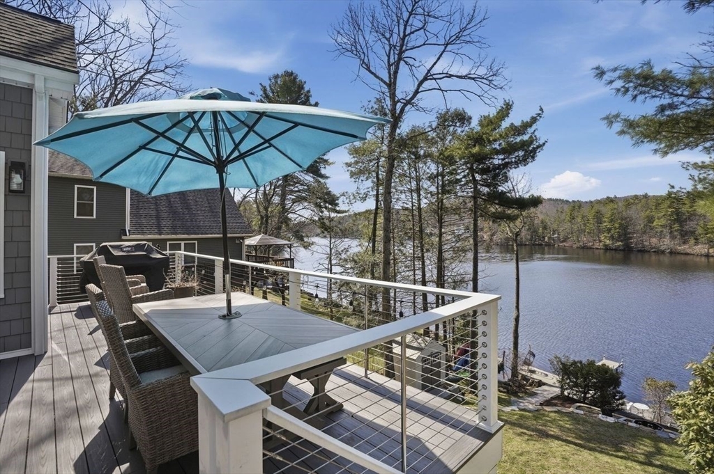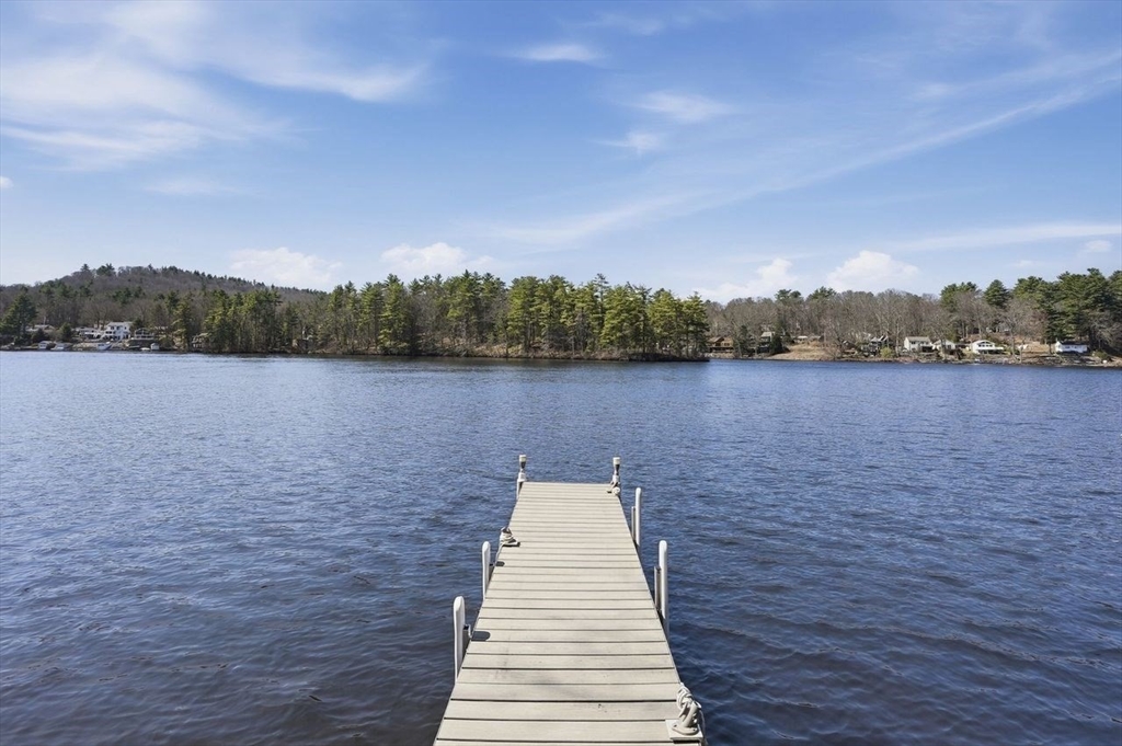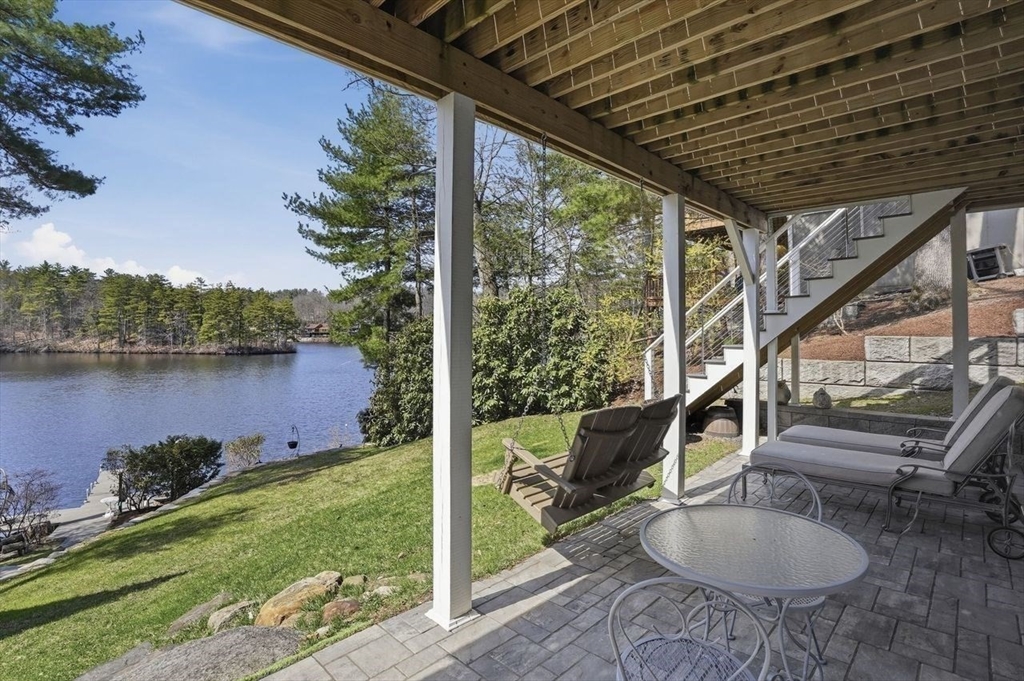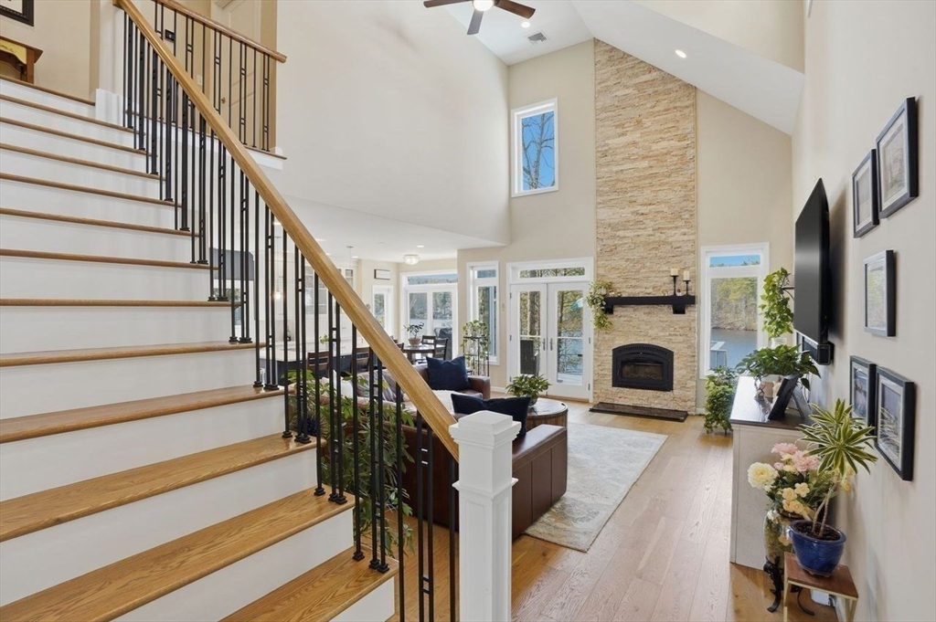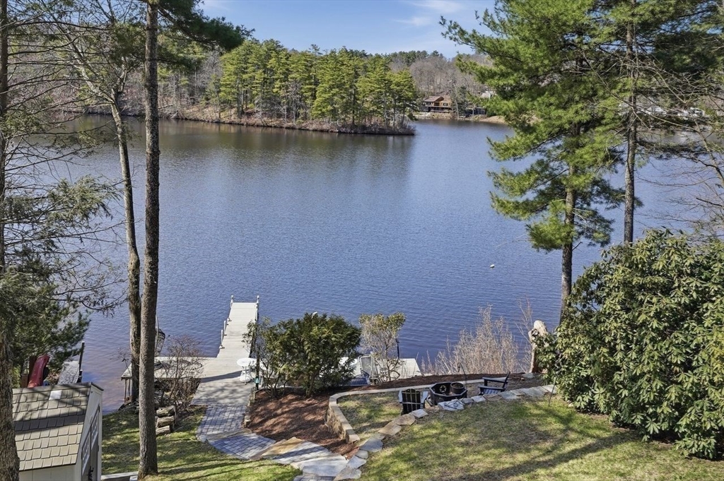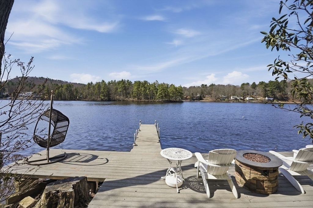 Experience the pinnacle of lakeside living in this stunning contemporary retreat on the shores of Hamilton Reservoir. W/ an open floor plan, the heart of the home is the sun-drenched Living Rm featuring soaring cathedral ceilings & a cozy fireplace. The seamless flow leads you into a chefs kitchen, equipped w/ upgraded cabinetry, sleek SS appliances, & a massive center island. Enjoy your morning coffee in the adjacent dining area to take in the panoramic water views. The main level offers a luxurious 1st-floor primary suite, boasting a spacious walk-in closet & a spa-like en-suite w/ dual vanity. A 1/2 bath & laundry complete this floor. Upstairs are 2 BR's, each w/ walk-in closets & a 2nd full bath w/ soaking Tub and custom tiled shower. The finished basement offers a versatile rec room w/ a 2nd fireplace & walk-out access to the patio. Outside, your private dock creates the perfect setting for fully recreational water access and unforgettable summer fun!