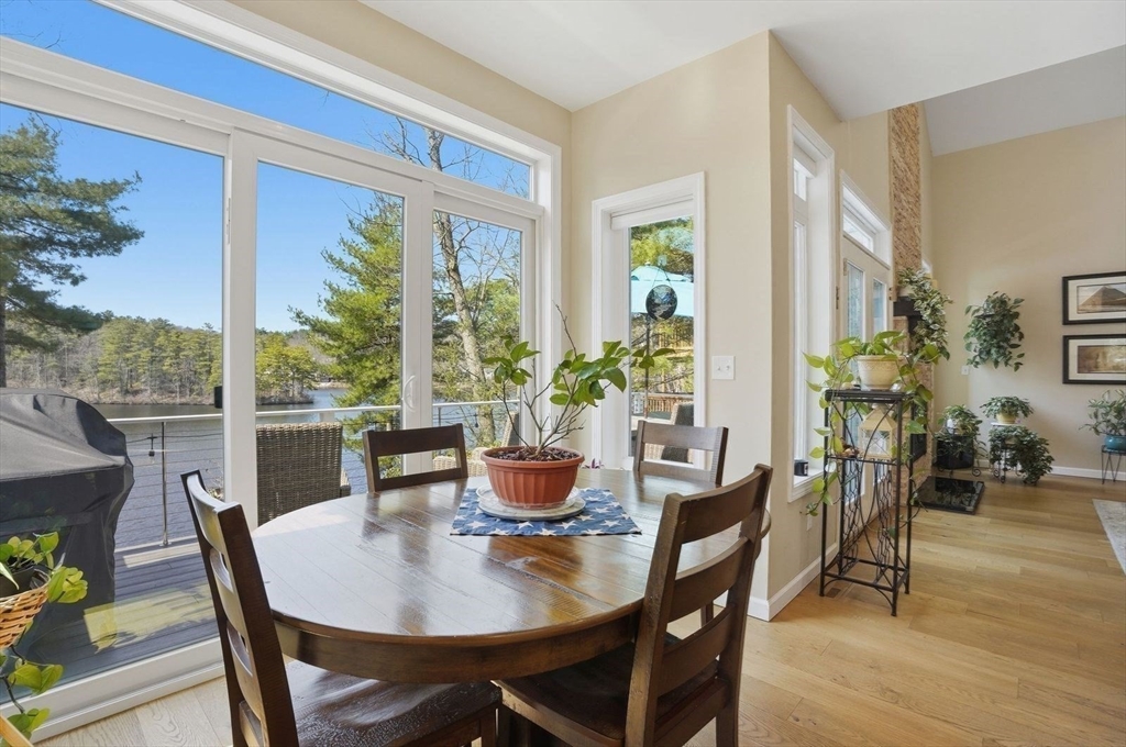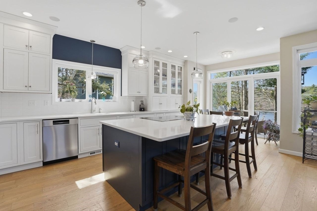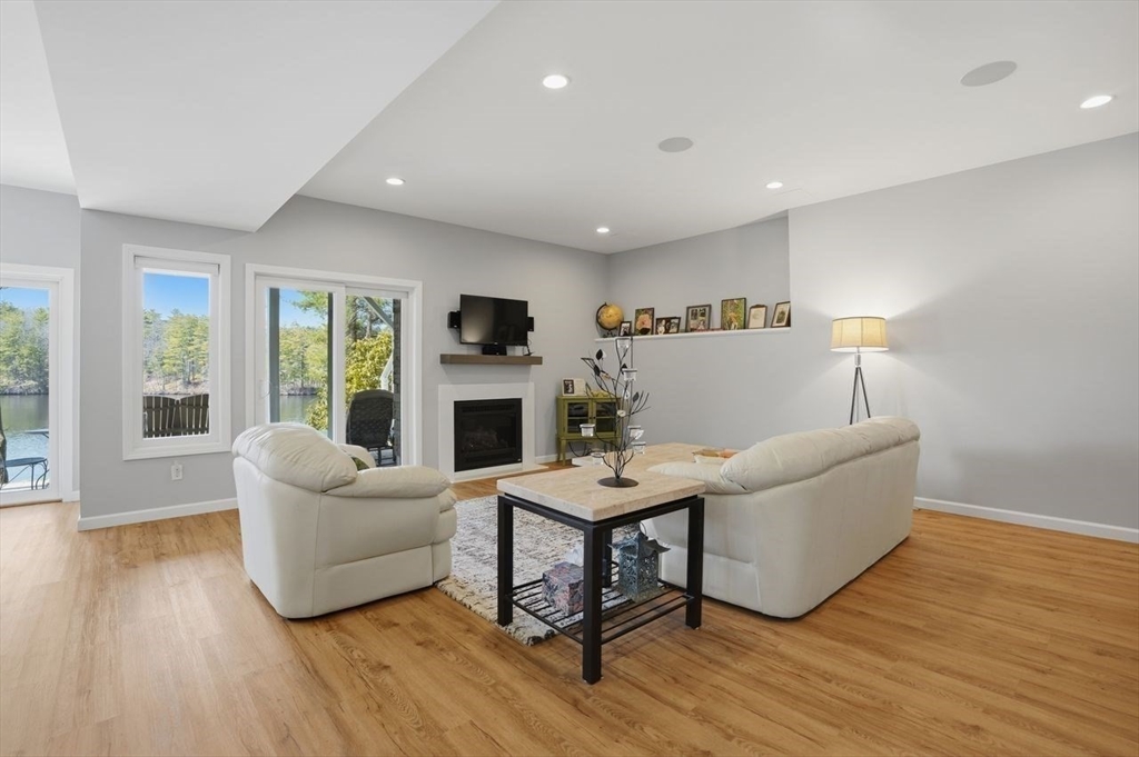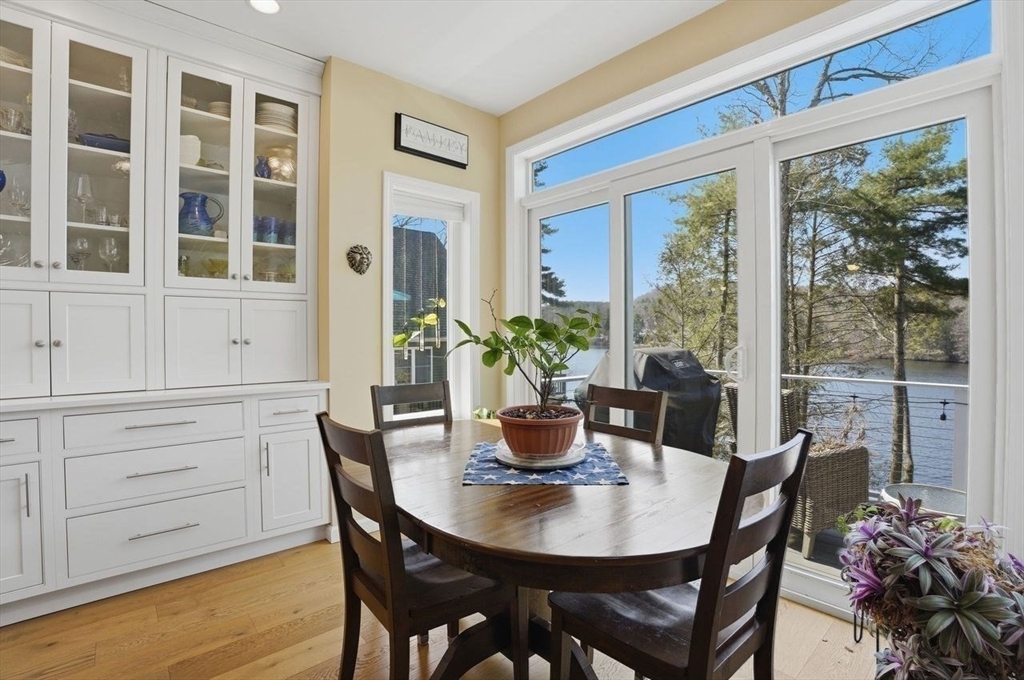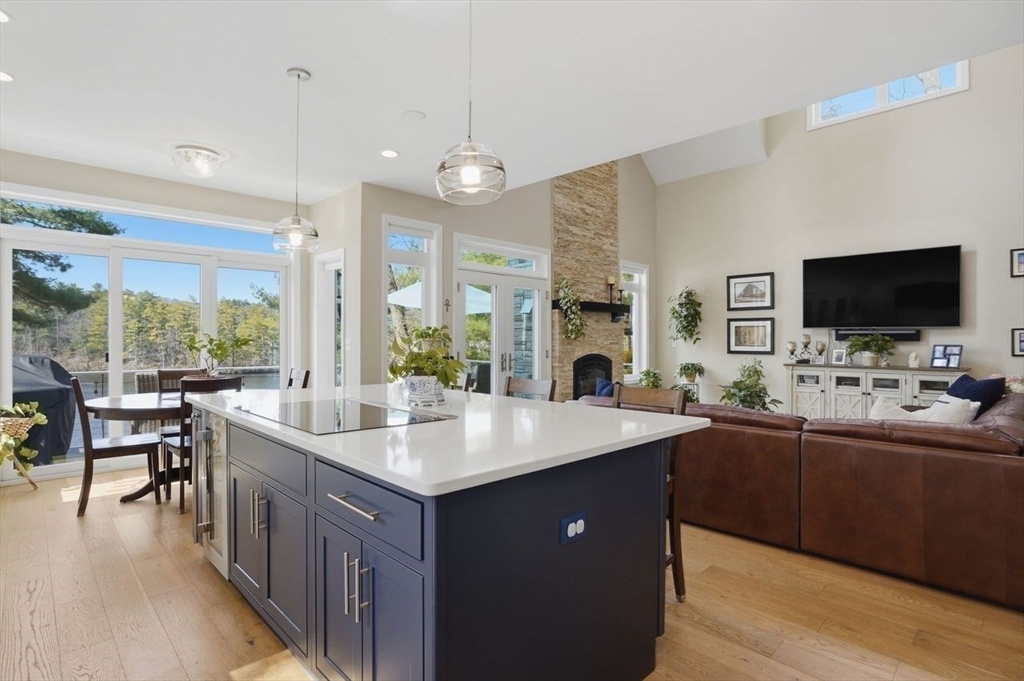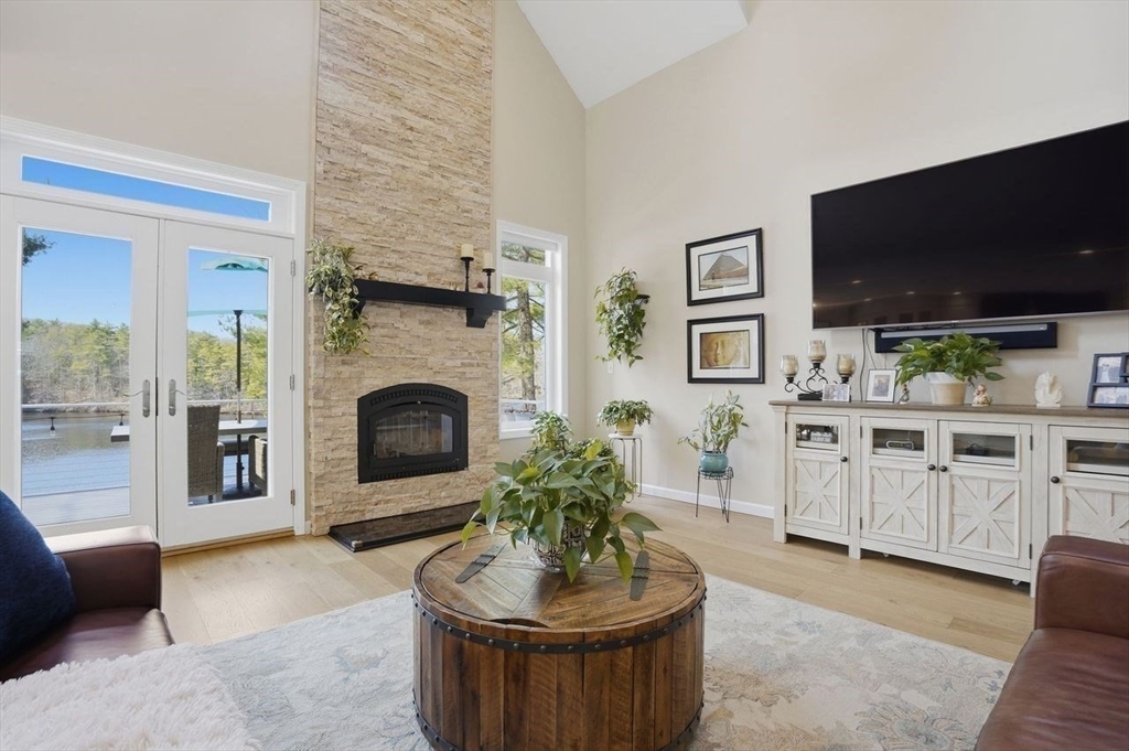 Experience the pinnacle of lakeside living in this stunning contemporary retreat on the shores of Hamilton Reservoir. W/ an open floor plan, the heart of the home is the sun-drenched Living Rm featuring soaring cathedral ceilings & a cozy fireplace. The seamless flow leads you into a chefs kitchen, equipped w/ upgraded cabinetry, sleek SS appliances, & a massive center island. Enjoy your morning coffee in the adjacent dining area to take in the panoramic water views. The main level offers a luxurious 1st-floor primary suite, boasting a spacious walk-in closet & a spa-like en-suite w/ dual vanity. A 1/2 bath & laundry complete this floor. Upstairs are 2 BR's, each w/ walk-in closets & a 2nd full bath w/ soaking Tub and custom tiled shower. The finished basement offers a versatile rec room w/ a 2nd fireplace & walk-out access to the patio. Outside, your private dock creates the perfect setting for fully recreational water access and unforgettable summer fun!