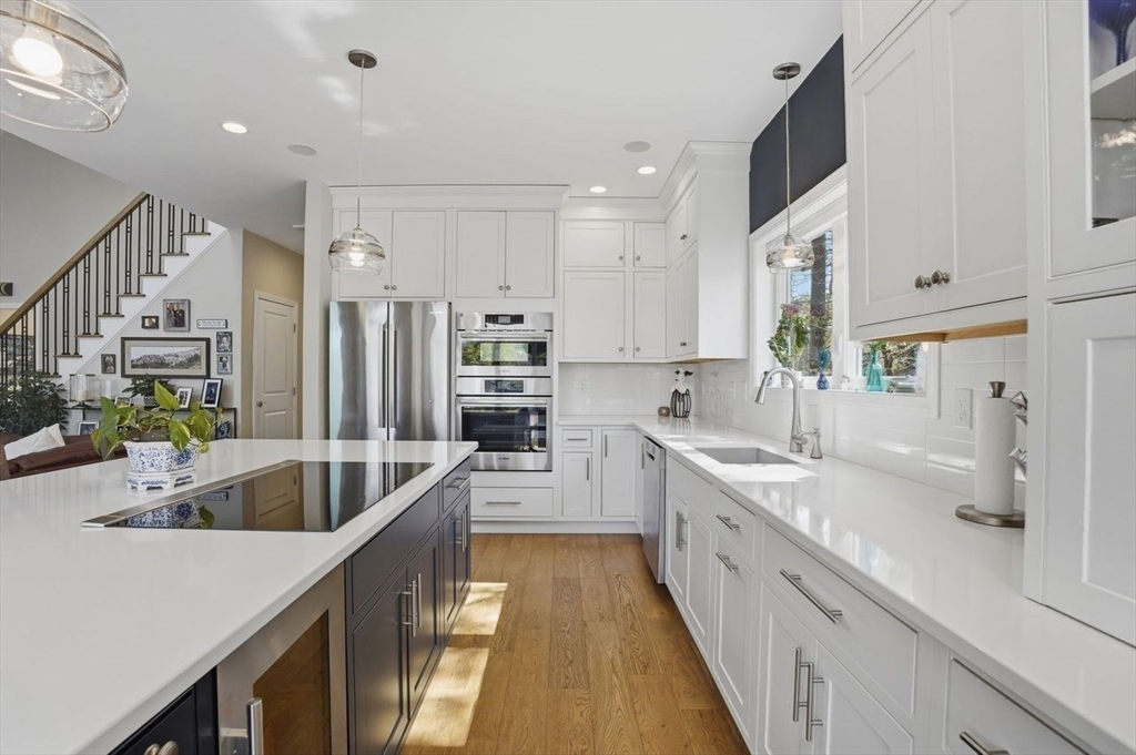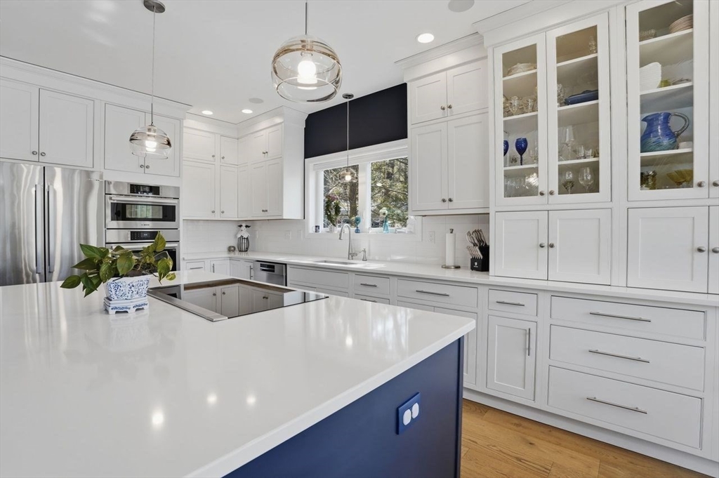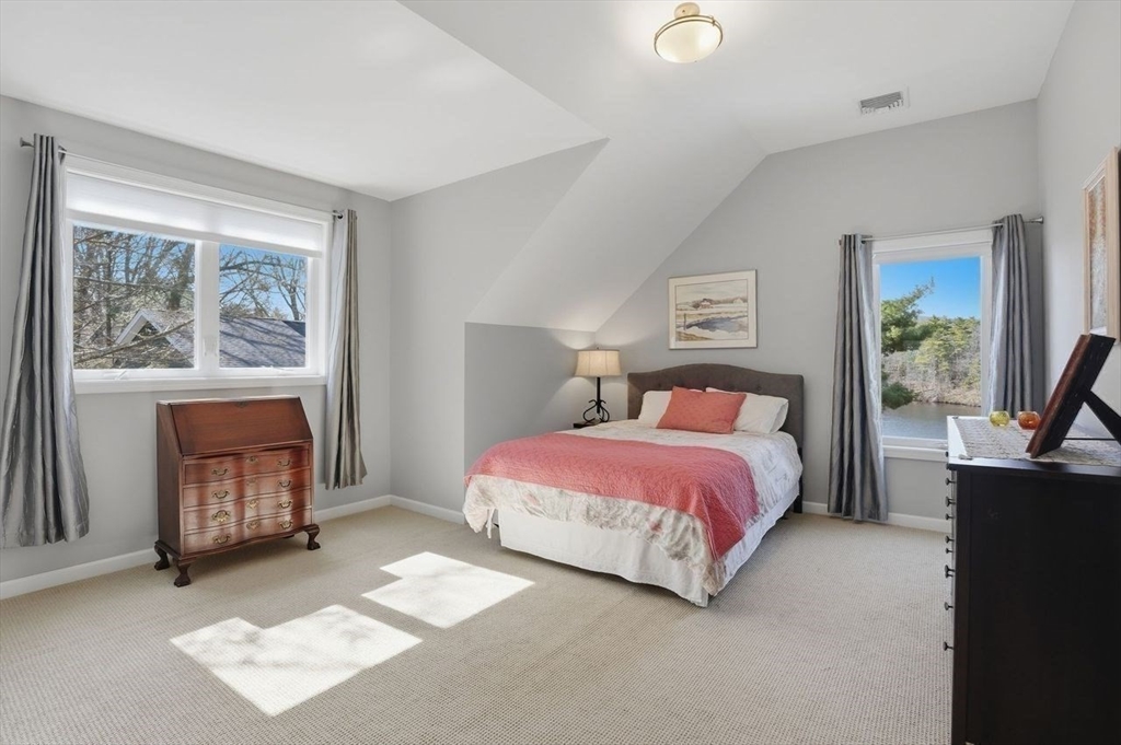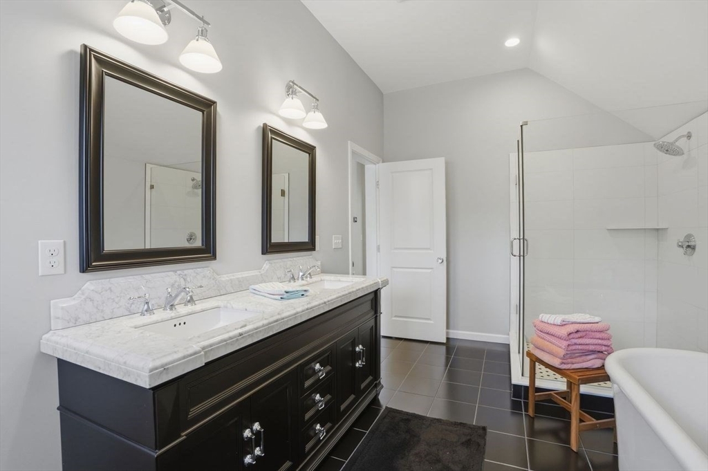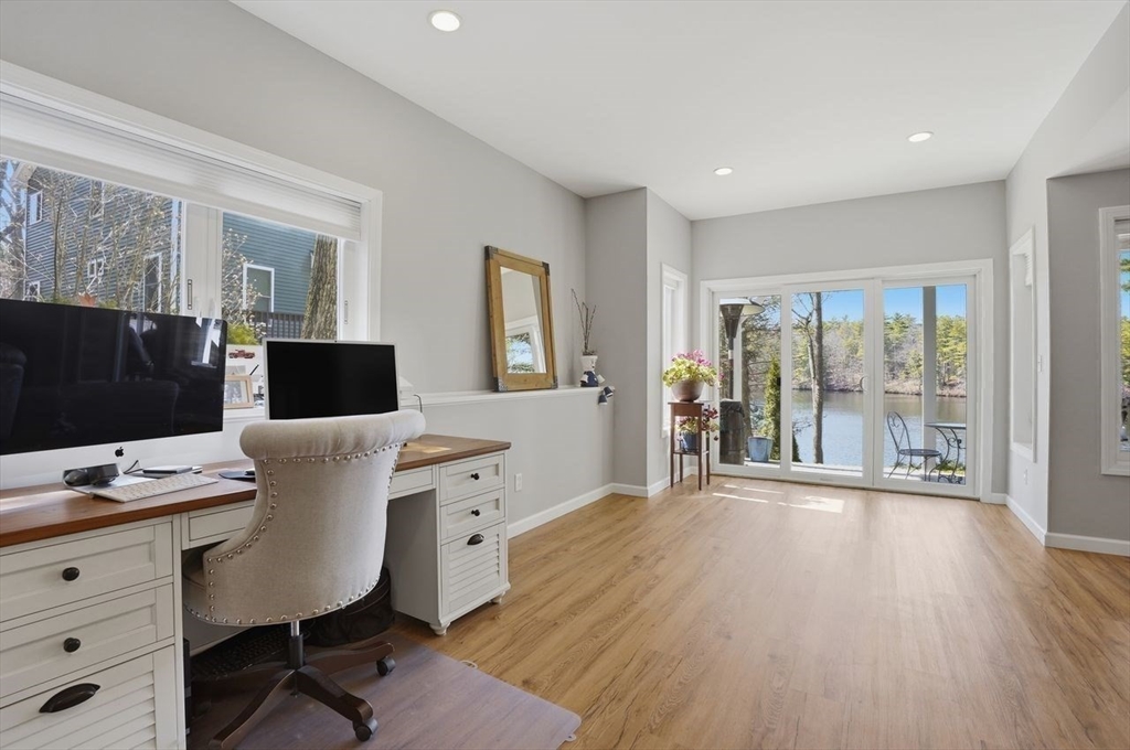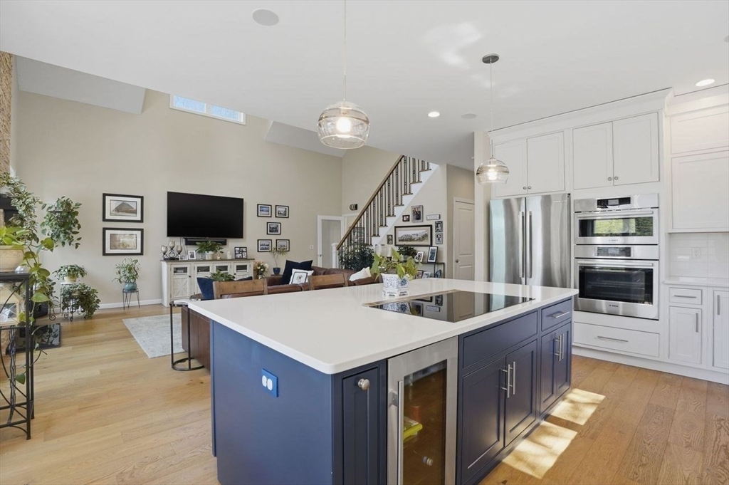Experience the pinnacle of lakeside living in this stunning contemporary retreat on the shores of Hamilton Reservoir. W/ an open floor plan, the heart of the home is the sun-drenched Living Rm featuring soaring cathedral ceilings & a cozy fireplace. The seamless flow leads you into a chefs kitchen, equipped w/ upgraded cabinetry, sleek SS appliances, & a massive center island. Enjoy your morning coffee in the adjacent dining area to take in the panoramic water views. The main level offers a luxurious 1st-floor primary suite, boasting a spacious walk-in closet & a spa-like en-suite w/ dual vanity. A 1/2 bath & laundry complete this floor. Upstairs are 2 BR's, each w/ walk-in closets & a 2nd full bath w/ soaking Tub and custom tiled shower. The finished basement offers a versatile rec room w/ a 2nd fireplace & walk-out access to the patio. Outside, your private dock creates the perfect setting for fully recreational water access and unforgettable summer fun!