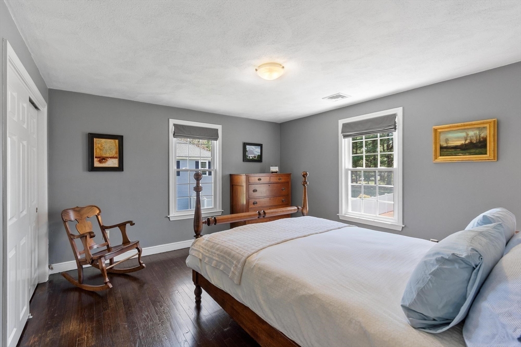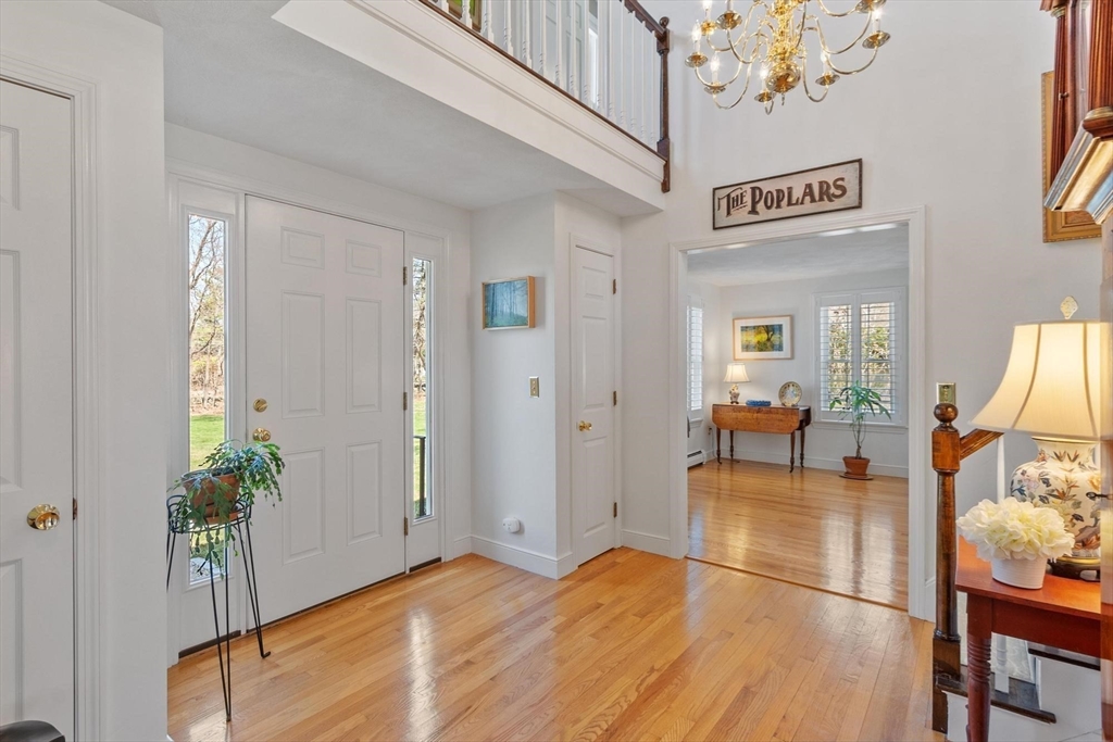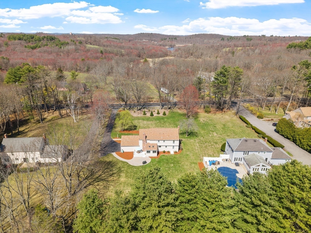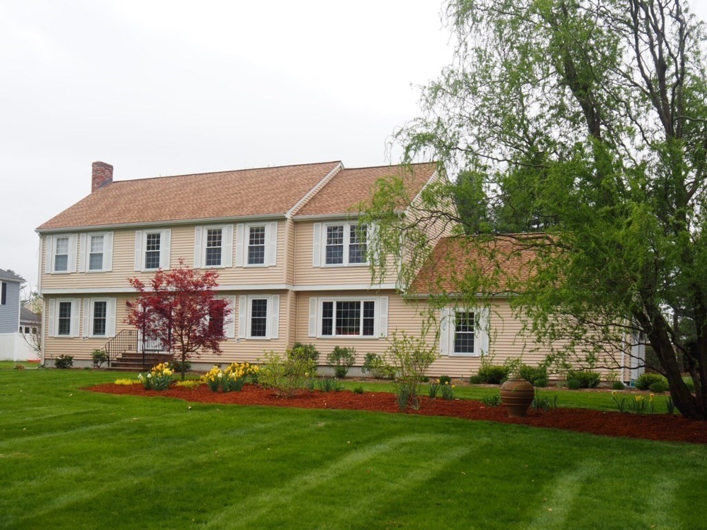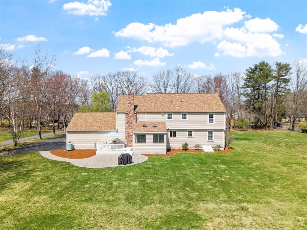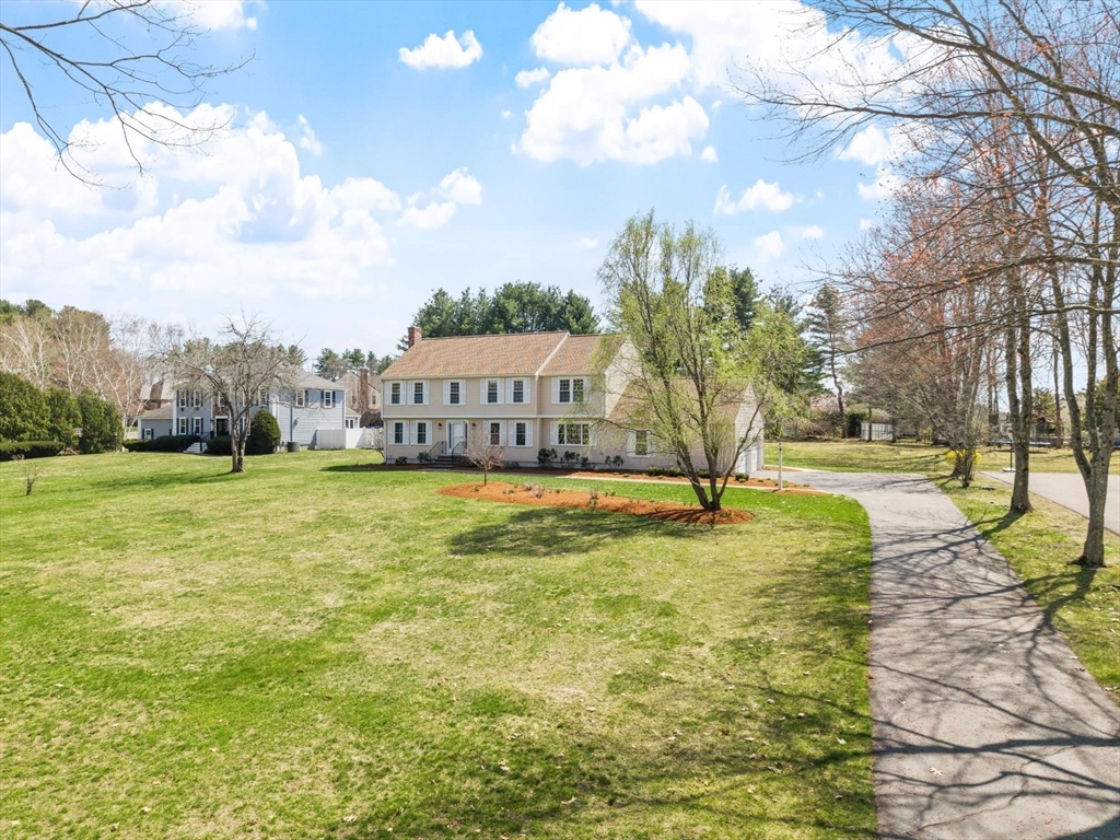 Tucked back from the road near the prestigious Brooks School, this handsome 4-bedroom classic colonial offers space, warmth, and thoughtful detail throughout. A gracious two-story foyer welcomes you to hardwood floors throughout and classic millwork. The stunning kitchen boasts custom cabinetry, granite counters, and center island. Kitchen opens to a beamed ceiling family room with gas fireplace. A front-to-back living room with second fireplace and wainscoted dining room are ideal for entertaining. The sunroom opens to a deck and impressive paver patio, extending living outdoors. Upstairs, the primary suite impresses with soaring cathedral ceilings, fireplaced sitting area, and renovated en suite bath. Three additional bedrooms complete the second floor. Over an acre with a level, private backyard offers room for a pool and more. Two-car garage, full basement, central air and town water & sewer. Minutes to Smolak Farm, Butcher Boy market and all major highways. A true gem!