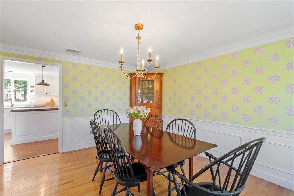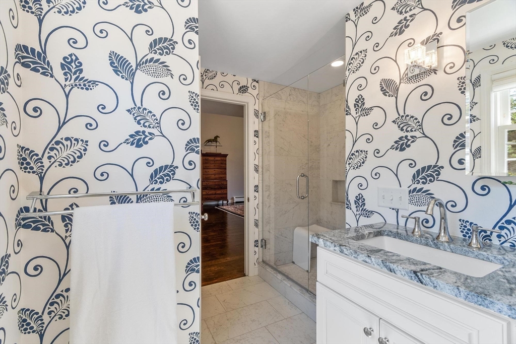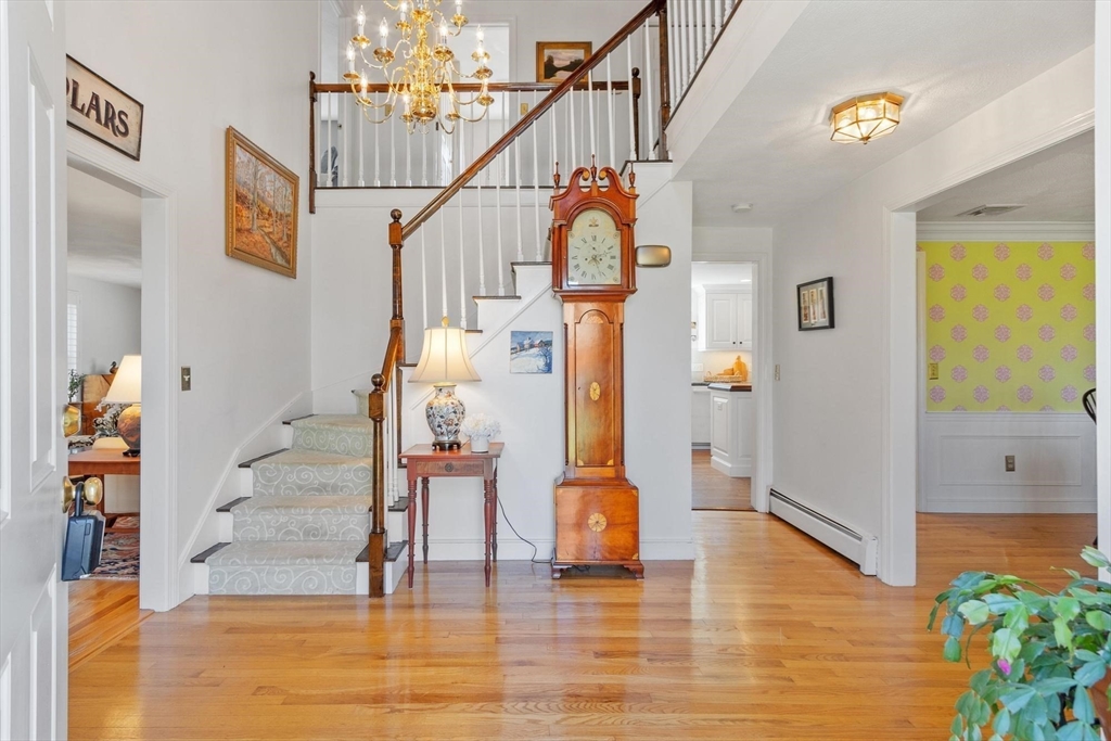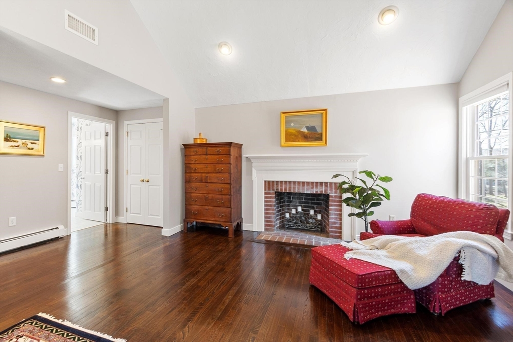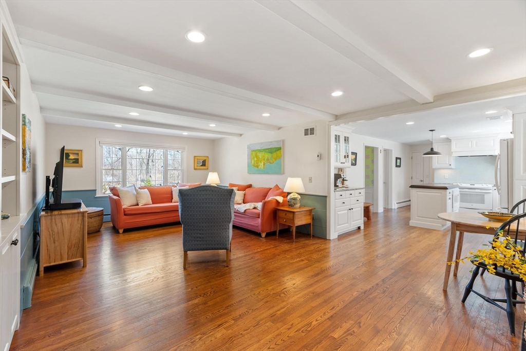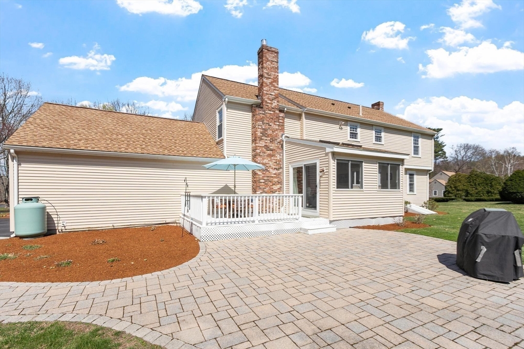 Tucked back from the road near the prestigious Brooks School, this handsome 4-bedroom classic colonial offers space, warmth, and thoughtful detail throughout. A gracious two-story foyer welcomes you to hardwood floors throughout and classic millwork. The stunning kitchen boasts custom cabinetry, granite counters, and center island. Kitchen opens to a beamed ceiling family room with gas fireplace. A front-to-back living room with second fireplace and wainscoted dining room are ideal for entertaining. The sunroom opens to a deck and impressive paver patio, extending living outdoors. Upstairs, the primary suite impresses with soaring cathedral ceilings, fireplaced sitting area, and renovated en suite bath. Three additional bedrooms complete the second floor. Over an acre with a level, private backyard offers room for a pool and more. Two-car garage, full basement, central air and town water & sewer. Minutes to Smolak Farm, Butcher Boy market and all major highways. A true gem!