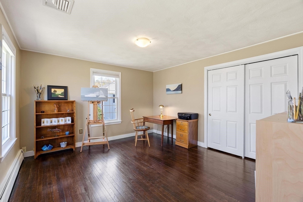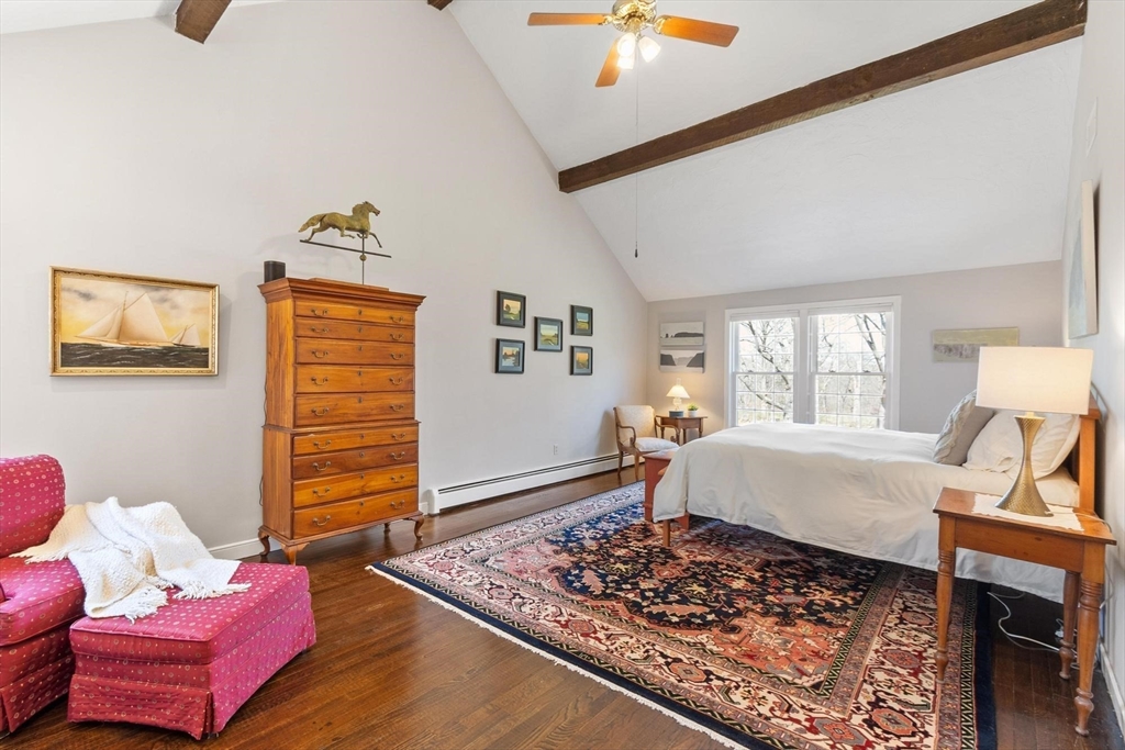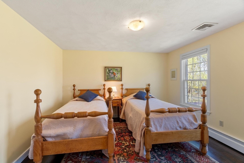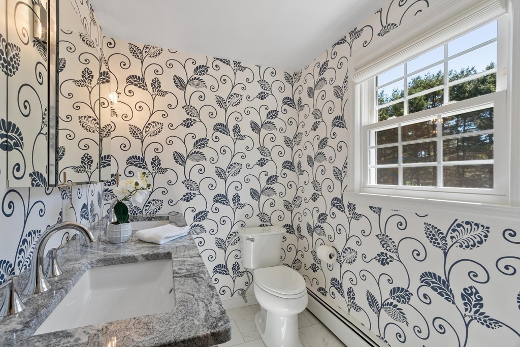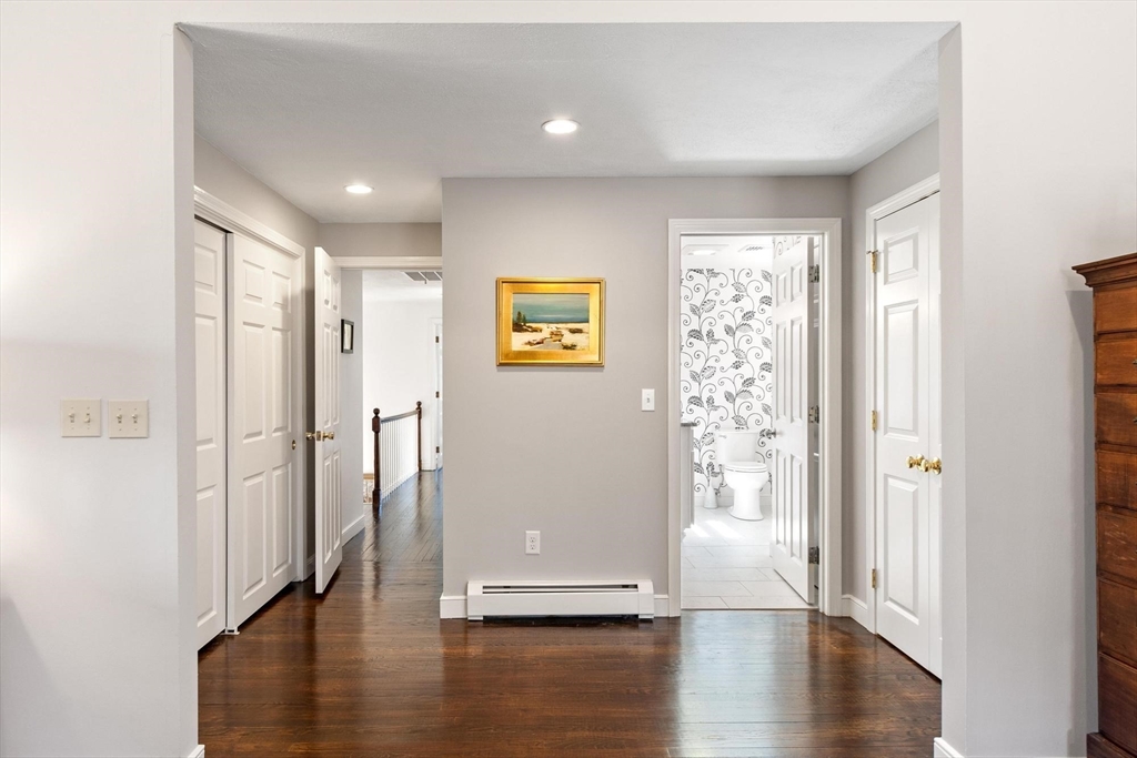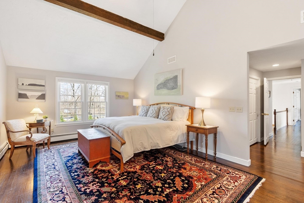 Tucked back from the road near the prestigious Brooks School, this handsome 4-bedroom classic colonial offers space, warmth, and thoughtful detail throughout. A gracious two-story foyer welcomes you to hardwood floors throughout and classic millwork. The stunning kitchen boasts custom cabinetry, granite counters, and center island. Kitchen opens to a beamed ceiling family room with gas fireplace. A front-to-back living room with second fireplace and wainscoted dining room are ideal for entertaining. The sunroom opens to a deck and impressive paver patio, extending living outdoors. Upstairs, the primary suite impresses with soaring cathedral ceilings, fireplaced sitting area, and renovated en suite bath. Three additional bedrooms complete the second floor. Over an acre with a level, private backyard offers room for a pool and more. Two-car garage, full basement, central air and town water & sewer. Minutes to Smolak Farm, Butcher Boy market and all major highways. A true gem!