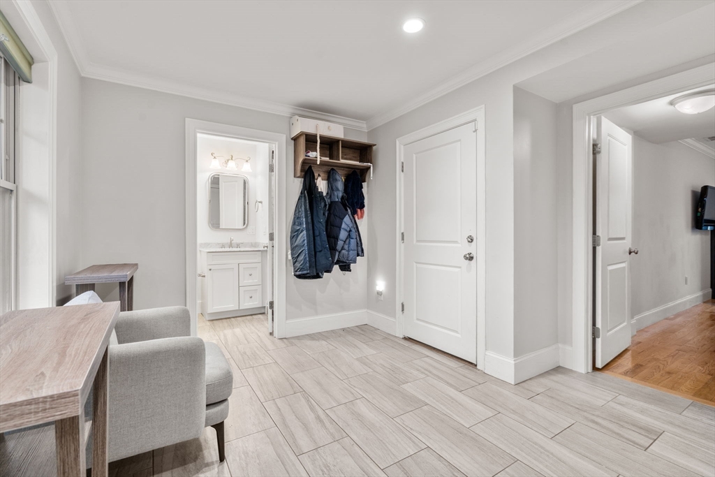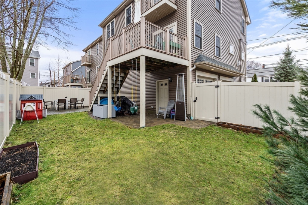 Welcome to this stunning luxury townhouse on the Waltham/Newton line! Built in 2017 with over 3,200 sq ft, this sun-drenched home offers high ceilings, elegant custom millwork, hardwood floors, and exceptional storage throughout. The open main level features a grand living room with gas fireplace and a chef’s kitchen with stone countertops, stainless steel appliances, and a large island, flowing into a dining area with access to a private balcony. The entry level includes a mudroom, full bath, and versatile bonus room ideal for an office, gym, or guest space, with direct walkout to a fenced yard with patio and green space. Upstairs offers three spacious bedrooms, full bath, and laundry, plus a luxurious primary suite with walk-in closet, en-suite bath, and private balcony. Two-car garage and driveway parking. Close to Moody St, Charles River paths, parks, dining, and highway access for easy commuting.