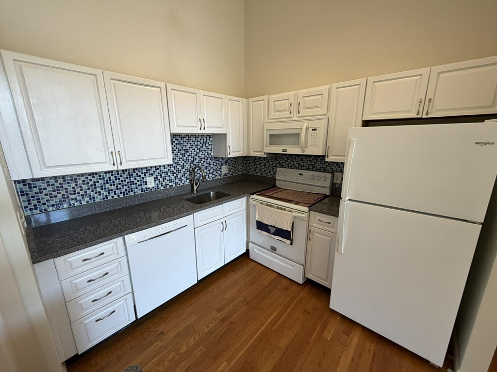 Welcome to your perfect retreat at 10 Chapman Street, Unit 303, in Weymouth, a beautifully maintained top-floor penthouse condominium in the desirable Birchwood community. Nestled in a peaceful, wooded setting with walking trails just behind the building, this third-floor unit offers the ideal blend of comfort, style, and convenience. Step inside to discover a light-filled, open-concept layout highlighted by soaring cathedral ceilings and skylights that flood the space with natural light. The sunken living room, complete with a cozy fireplace, creates a warm and inviting atmosphere perfect for relaxing or entertaining. From here, step out onto your private balcony, an ideal spot to unwind. The kitchen features a movable island, opening seamlessly into the dining and living areas. Plenty of extra storage on the balcony is available.