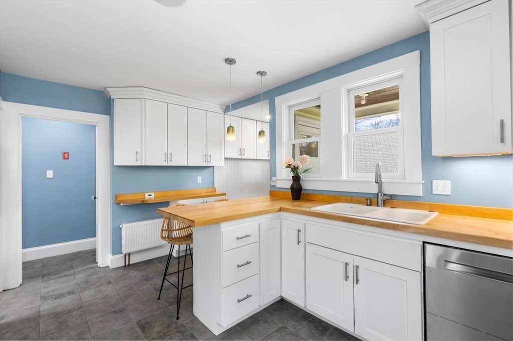Welcome to your new home in the sought-after Winn Brook area! Front-to-back fireplaced living room opens to a relaxing 3-season enclosed porch, formal dining room, & a beautifully updated kitchen & first-floor half bath from a complete 2014 renovation, featuring custom wood counters & high-end appliances, plus a convenient mudroom. The second floor offers a spacious front-to-back primary bedroom, two additional bedrooms, full bath, & office space. Walk-up attic provides excellent potential for future expansion, along with a large open basement. Set on a lovely corner lot with mature plantings & a 2-car garage. Updates include newer roof (2023), back deck & stairs (2024), front steps and walkway (2025), 200 AMP electrical, and repaved driveway. Ideally located near Winn Brook School, Joey’s Park, Belmont Center, Harvard bus, and commuter rail to North Station, with easy access to Route 2, Cambridge, and Boston, offering an ideal blend of neighborhood charm and commuter accessibility.
