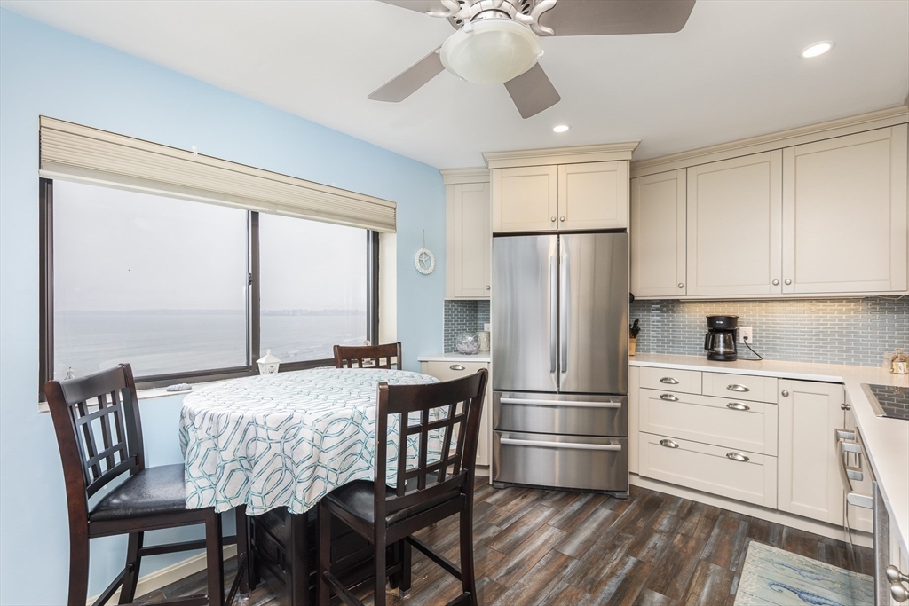 THIS IS THE ONE YOU HAVE BEEN WAITING FOR !!! Your dream has come true! Penthouse, front two bedroom, two bath with fabulous ocean views, garage, plus outside space and in unit laundry. Eat-in updated kitchen with window overlooking the ocean and Nahant Bay. Feels like you are on a cruise ship - enjoy your morning coffee or evening cocktail on your private balcony plus the July 4th fireworks. Spacious living/dining room with extra large bedrooms with ample closet space and two updated baths. Enjoy the outdoor pool, function room, recreation room, two exercise rooms and saunas. Storage room on the first floor plus compactor and additional laundry room on every floor. Shopping, restaurants, beaches, Logan Airport and Boston are near by. Make this your new home! OPEN HOUSE April 18th and 19th from 12:00 to 2:00.