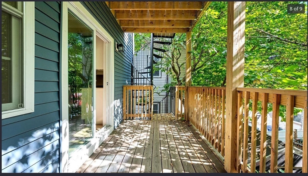 Beautifully gut-renovated 2-bedroom, 1-bath condo in East Boston offering a modern open layout with high-end finishes throughout. The stylish kitchen features white shaker cabinets, quartz countertops, and a full stainless steel appliance package including a double oven, gas range, microwave, refrigerator, and dishwasher. The kitchen flows seamlessly into a spacious living area with large sliding glass doors leading to a private porch, creating a bright and inviting space.Additional features include central air, in-unit laundry, and hardwood flooring throughout. The bathroom has been fully updated with modern finishes and a tiled stand-up shower. Located on the second floor of a fully renovated building, this home offers convenient access to local restaurants, cafés, parks, and the waterfront. Easy access to nearby bus lines and Maverick Station (Blue Line) provides a quick commute to Downtown Boston and Logan Airport.