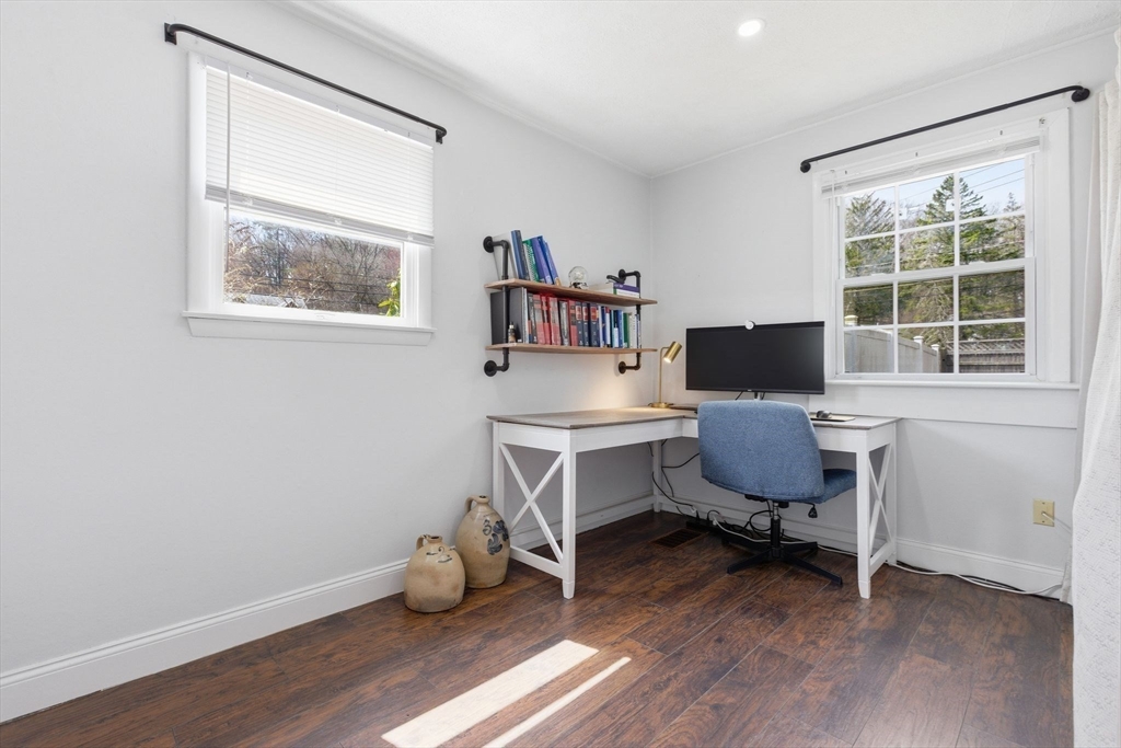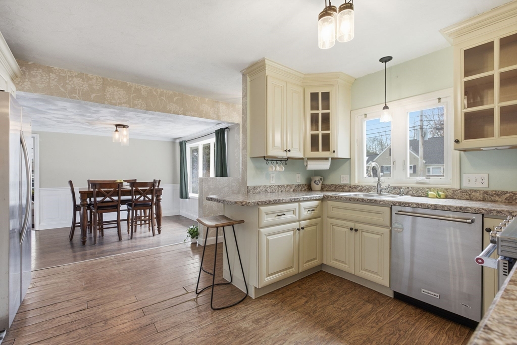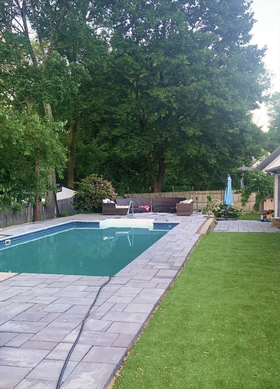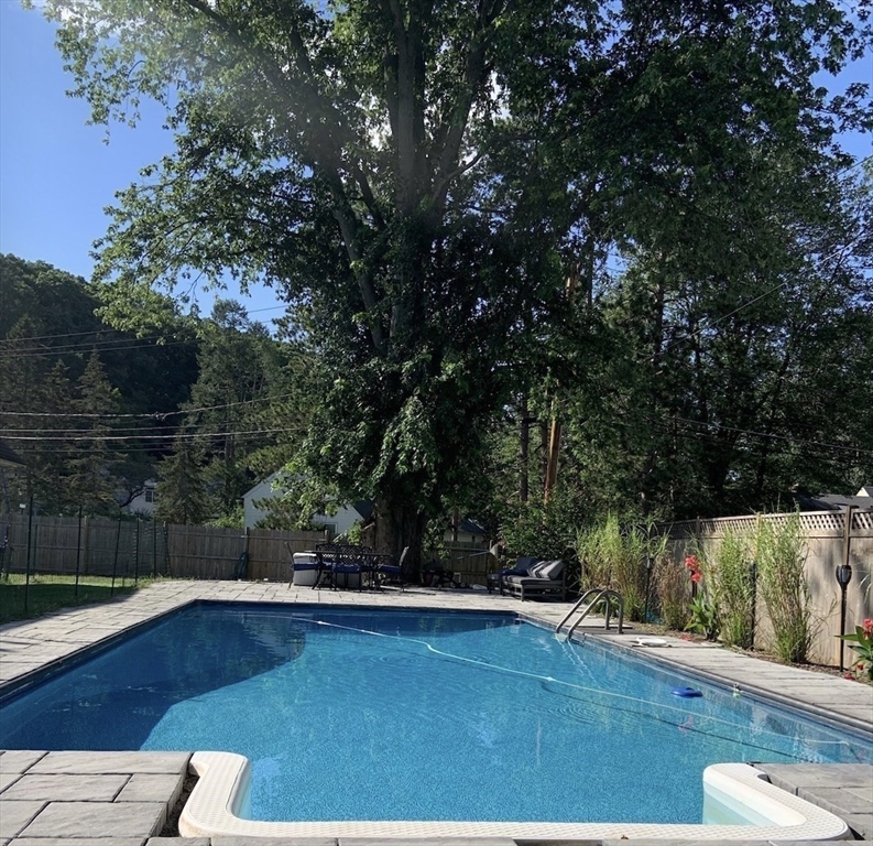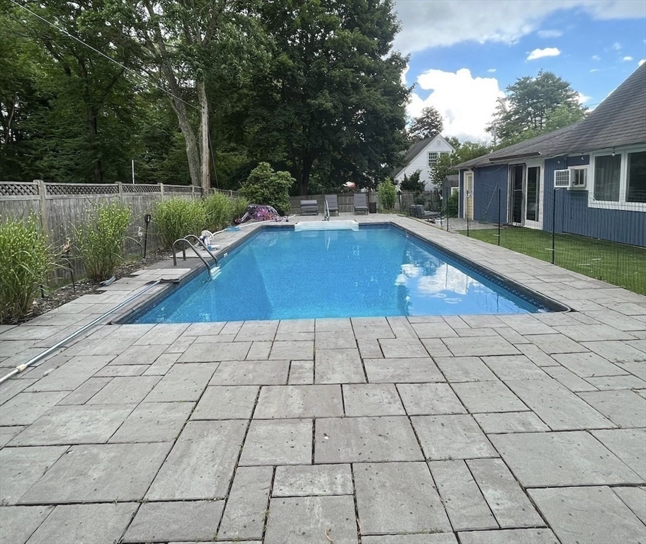 Beautifully updated home in sought-after West Natick, set on a level, corner lot in a quiet neighborhood. This 4-bedroom, 1.5-bath gem features a bright, sun-filled main level with updated laminate flooring throughout. The stylish kitchen offers SS appliances & gas cooking, flows into a spacious living room w/ fireplace & picture window, overlooking the backyard & fabulous in-ground pool. An oversized dining/flexible floor plan & entertaining area opens seamlessly to a true backyard oasis w/ new pavers & covered patio space, perfect for summer gatherings. A recent garage conversion adds flexible living space, including a 2nd family room w/ soaring ceilings & bonus office or potential 5th bedroom with exterior access. Ideal for extended family w plenty of room to spread out. 2nd floor W/D. Tons of recent updates, including newer gas furnace, on demand water heater, upgraded electrical & added insulation. Enjoy a comfortable convenient lifestyle in a prime location
