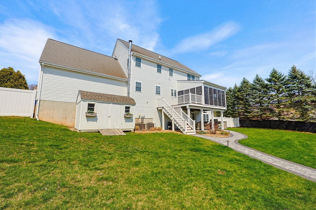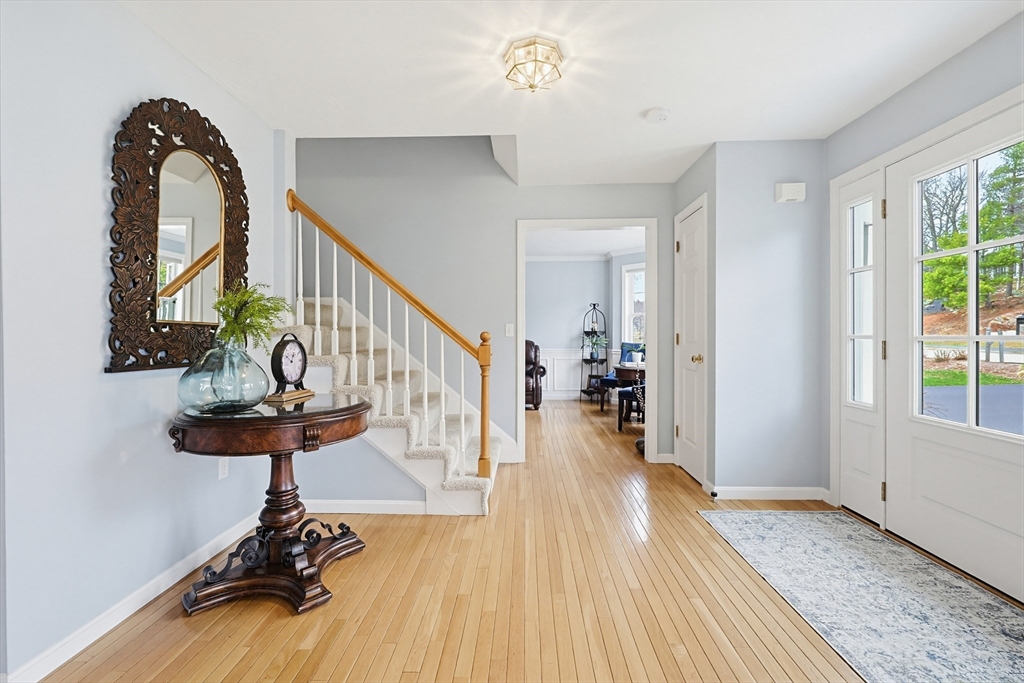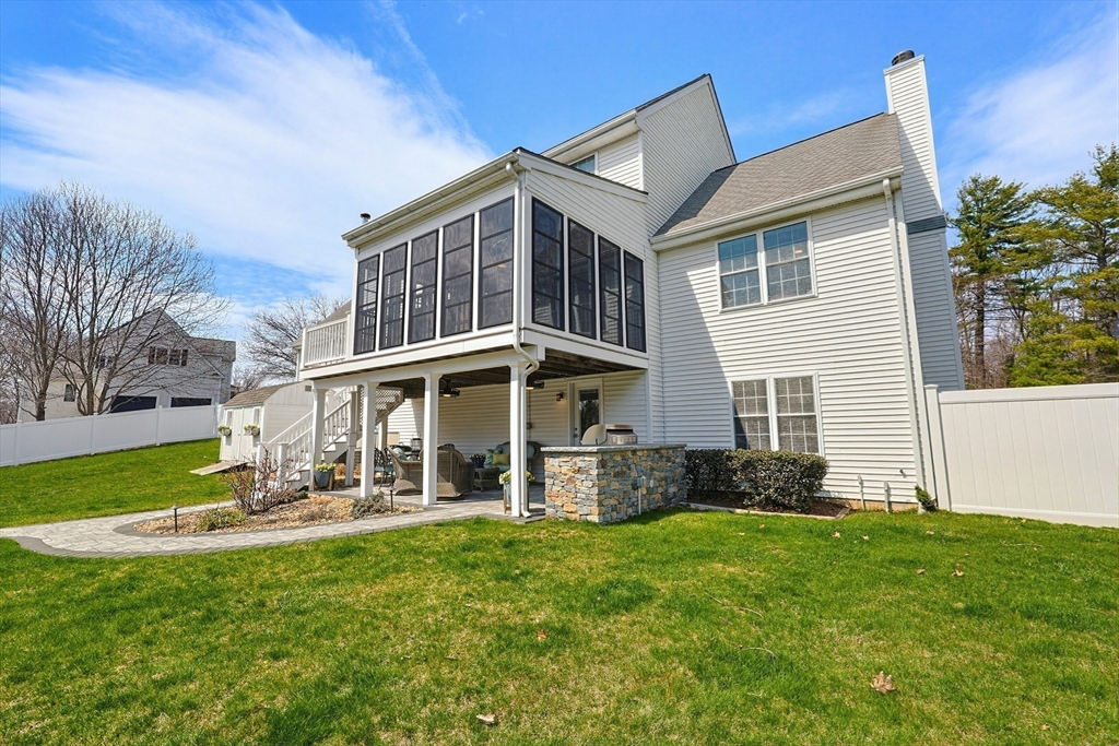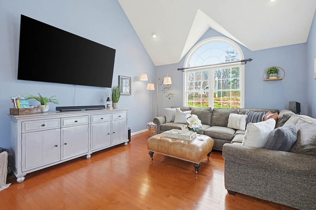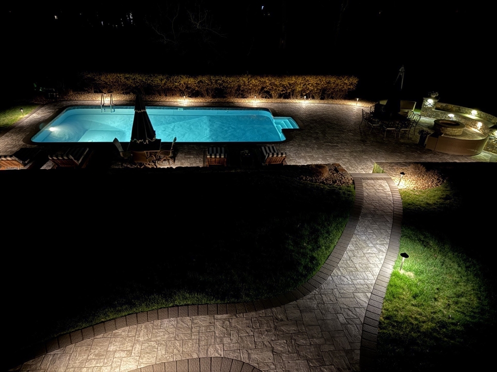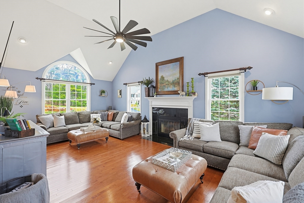 Welcome to 19 Harmony Tr in Harmony Estates! Hardwood floors, elegant crown molding, and classic wainscoting welcome you home, centered around a beautiful fireplace and enhanced by a vaulted ceiling, complementing the home’s open-concept design. The kitchen, featuring stainless steel appliances, a spacious breakfast bar peninsula, and stunning granite countertops are ideal for both everyday living and entertaining. Upstairs are 4 bedrooms, each with ceiling fans and plush wall-to-wall carpeting. The primary suite offers a double vanity, a luxurious jetted tub, and an expansive walk-in closet with additional bonus storage. Enjoy summer with a beautiful in-ground saline pool, paver pool deck with fire pit, a three-season porch and covered patio with a built-in grill. Easy access to a ¾ bathroom in the lower level with a large bonus room perfect for a home gym or media space. Updates include heating, AC, water heater, oil tank, pool pump and liner, recently paved driveway and MORE!
