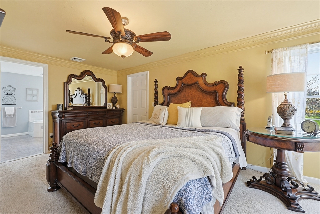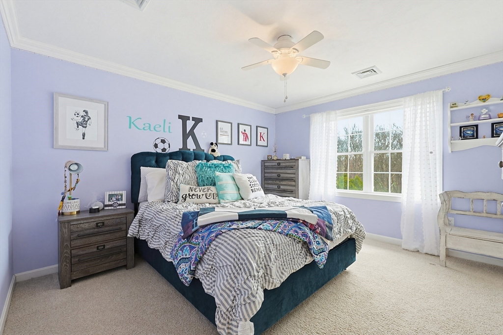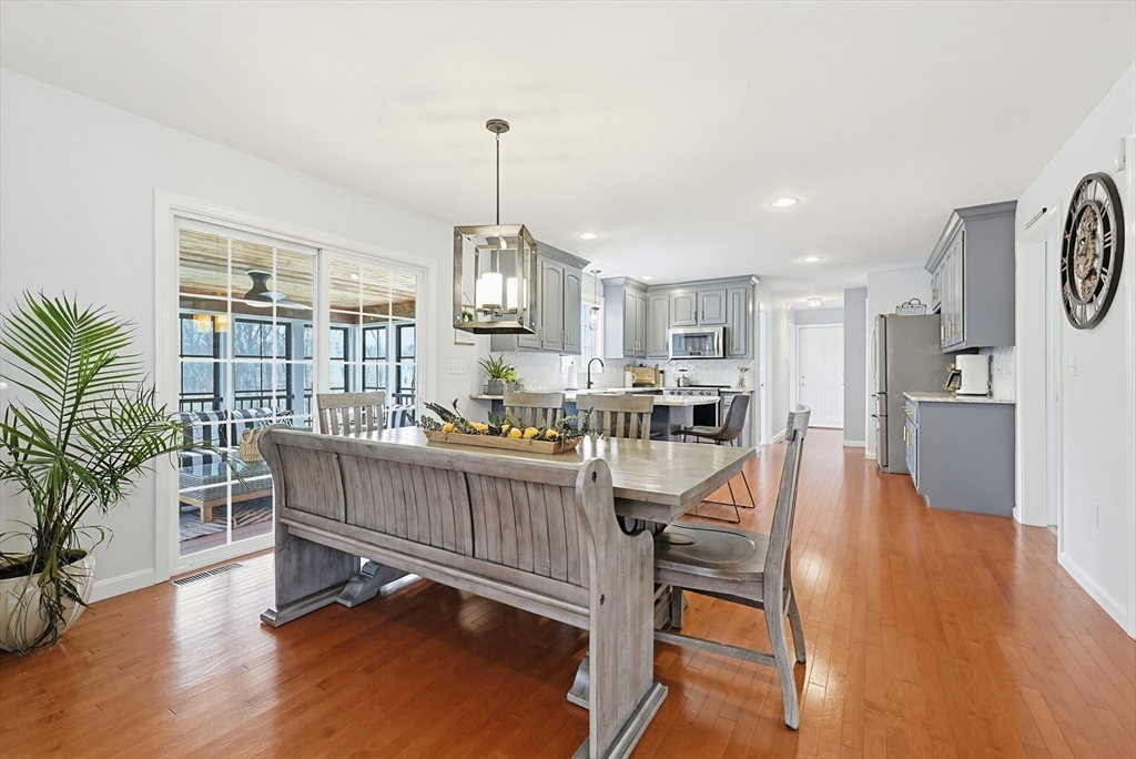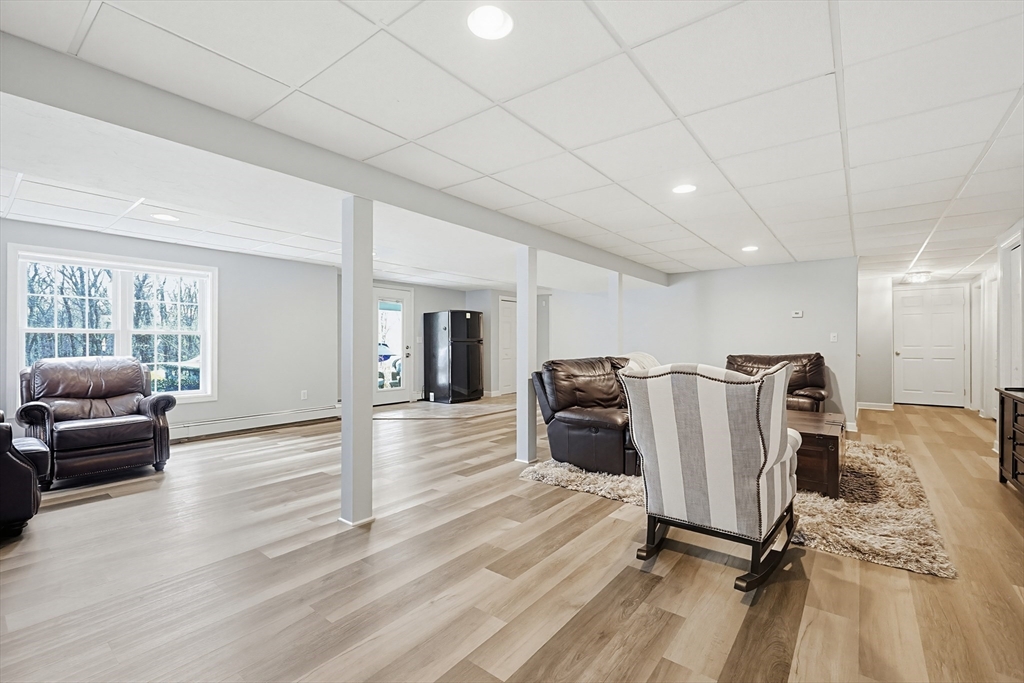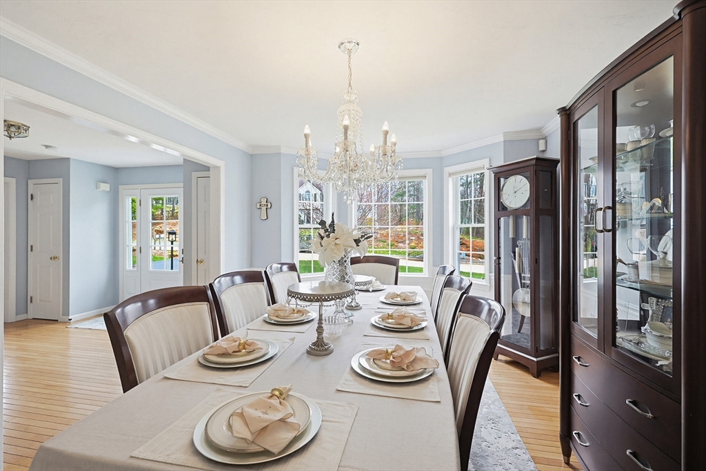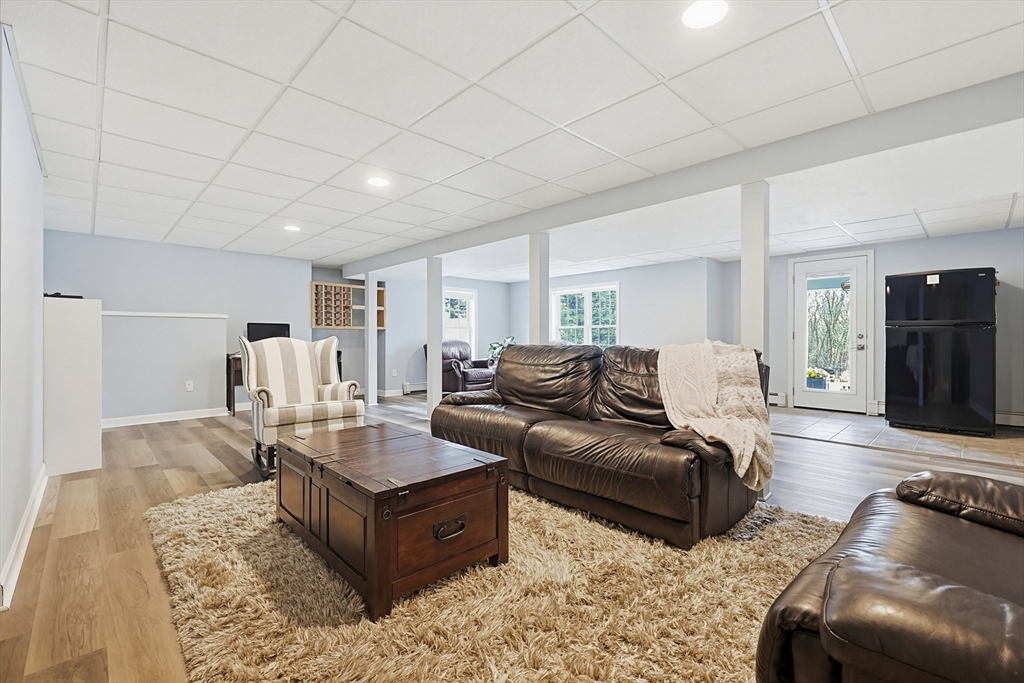 Welcome to 19 Harmony Tr in Harmony Estates! Hardwood floors, elegant crown molding, and classic wainscoting welcome you home, centered around a beautiful fireplace and enhanced by a vaulted ceiling, complementing the home’s open-concept design. The kitchen, featuring stainless steel appliances, a spacious breakfast bar peninsula, and stunning granite countertops are ideal for both everyday living and entertaining. Upstairs are 4 bedrooms, each with ceiling fans and plush wall-to-wall carpeting. The primary suite offers a double vanity, a luxurious jetted tub, and an expansive walk-in closet with additional bonus storage. Enjoy summer with a beautiful in-ground saline pool, paver pool deck with fire pit, a three-season porch and covered patio with a built-in grill. Easy access to a ¾ bathroom in the lower level with a large bonus room perfect for a home gym or media space. Updates include heating, AC, water heater, oil tank, pool pump and liner, recently paved driveway and MORE!