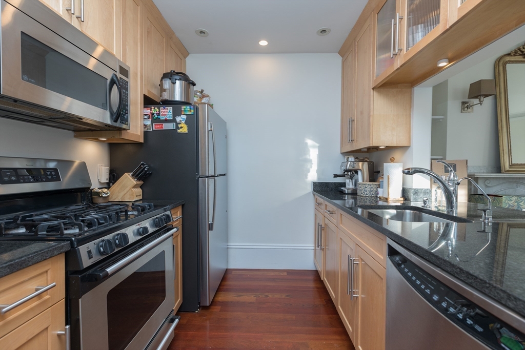 Experience the charm of this gorgeous second-floor condo on the highly desirable Montgomery Street at West Canton. Step into a sunlit living room featuring a decorative fireplace, South facing, open kitchen, complete with a breakfast bar, sleek granite countertops, stainless steel appliances, and gas cooking. Ideal for cooking enthusiastsThe home is outfitted with central A/C and showcases beautiful hardwood floors throughout, adding warmth and sophistication. The beautiful bathroom features a marble shower, and the in-unit washer/dryer adds ultimate convenience. The spacious bedroom opens to your own private balcony, where you can unwind and take in serene views of picturesque Hayes Park.