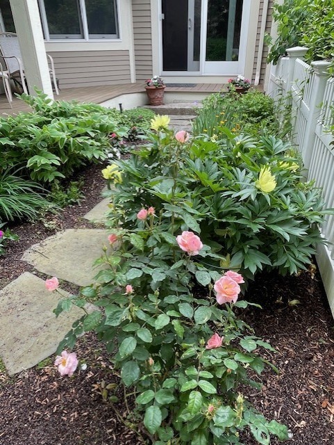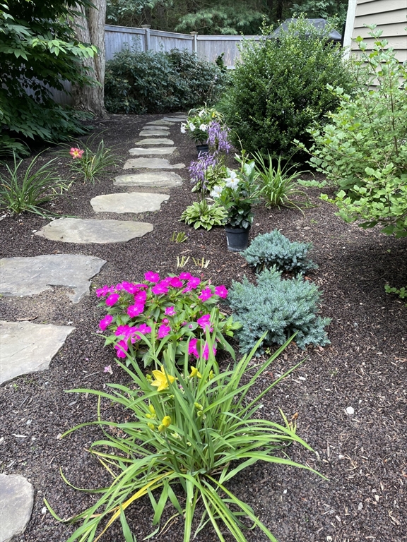 Do you love to garden or sip your morning coffee while overlooking beautifully landscaped grounds? This stunning end-unit condo in a 55+ community offers both, with gardens designed and meticulously maintained by the current owner, a master gardener. Lush plantings surround the home, creating a serene approach to both the front and side entrances. Inside, soaring ceilings, hardwood floors, and abundant natural light set the tone. The living room features a fireplace, wall of windows, slider to the deck, and flows seamlessly to the dining area. A spacious office with custom shelving and built-in desks overlooks the gardens. The updated kitchen boasts new s/s appliances, double oven, island, and opens to a cozy family room with garden access. A first-floor primary suite offers a spa-like bath. Upstairs is a 2nd bedroom, full bath, and loft ideal for reading or TV.Unfinished basement for storage. Enjoy the outdoor pool, BBQ area, active community club house, two-car garage and gas heat.