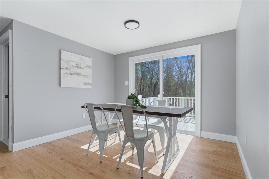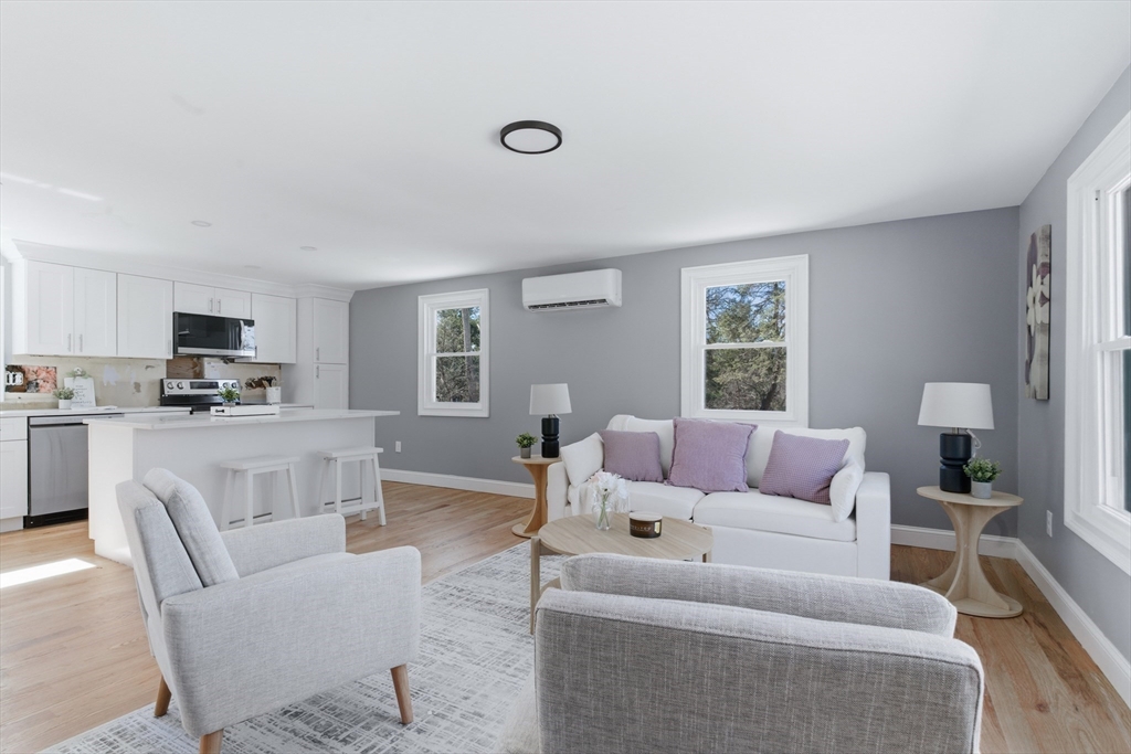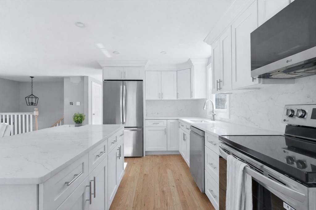 Fully renovated single-family home in Bellingham offering 3 bedrooms and 2 full bathrooms with a spacious, modern layout. Stunning updates throughout include a brand new kitchen with stainless steel appliances, large island, and sliding doors leading to a generous backyard. Finished walkout basement adds valuable additional living space. Detached 2-car garage with high ceilings provides excellent workspace potential, plus ample parking in a paved driveway. Recent upgrades include new roof, windows, siding, electrical, HVAC, plumbing, hardwood flooring, tile baths, and Trex decking. Ideally located along Route 126 with easy access to shopping, dining, and everyday conveniences. Close to Forge Park/495 Station for commuter rail access, and near Interstate 495. Minutes to Silver Lake Park and a short drive to Franklin and Woonsocket. Ideal for commuters to Boston and Providence.