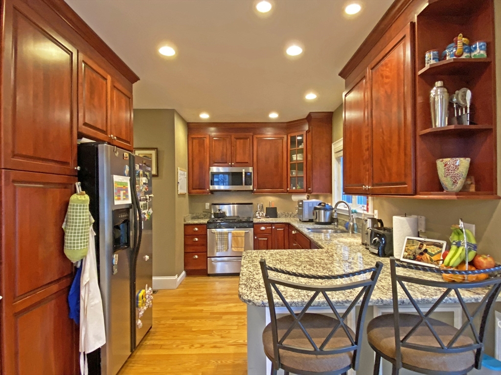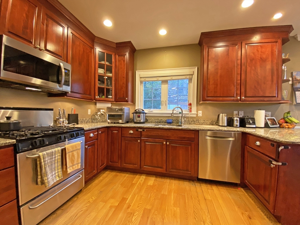 Available for 6/1/2026. Mint condition 3 BR, 2.5 bath townhouse in desirable Newtonville near Newton North with abundant natural light. Perfect for entertaining, the floor plan provides flexible open living space. A lovely, well equipped granite & SS kitchen features a large breakfast bar and direct access via sliding doors to an enclosed private patio & small yard. Open living & dining areas w/ gas fireplace, crown molding & hardwoods throughout. Spacious primary BR w/ en suite bath. Nice sized guest bedrooms, ample storage/closet space and an oversized 2-car garage. Newton North HS just a few minutes walk as well as all the shops & restaurants of vibrant Newtonville Square!