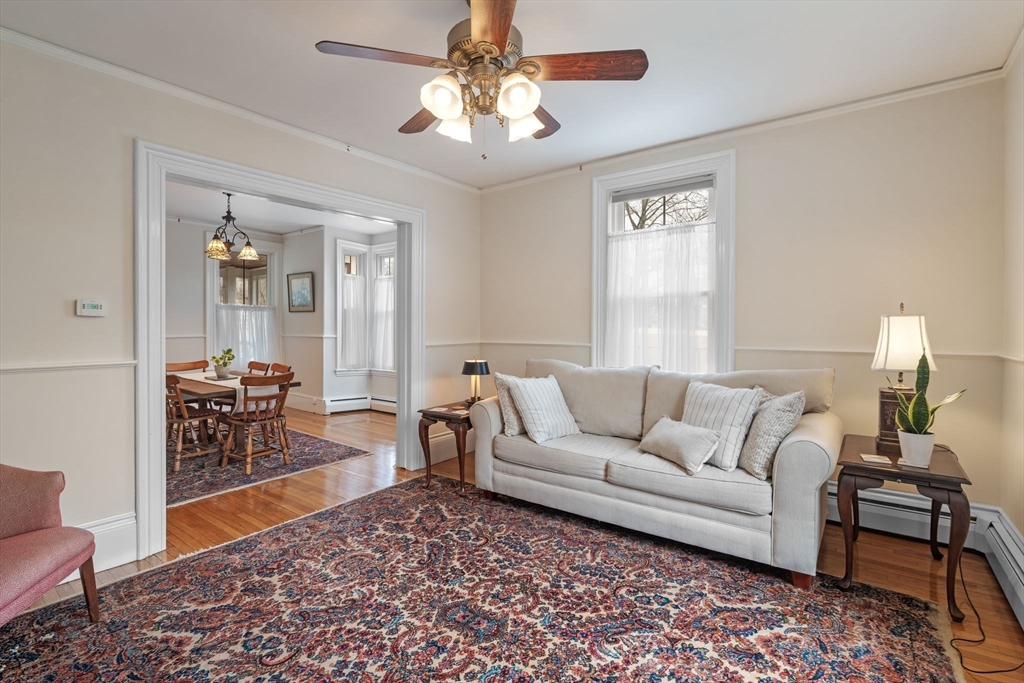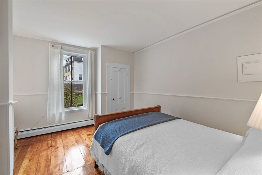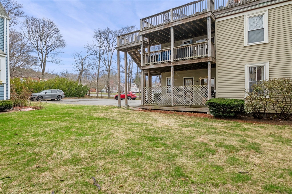 Charming four-room, 1BR/1BA garden-style condo in the heart of historic Downtown Ipswich — where location truly delivers. Enjoy single-level living with an open floor plan, tall ceilings, hardwood floors, granite countertops, and an updated bath. Freshly painted throughout, with oversized windows that flood the space with natural light — it lives and feels larger than the square footage suggests. The spacious bedroom features built-ins and a cozy nook perfect for a home office. The eat-in kitchen frees up the additional room for a second bedroom or extra living space — flexible to fit your needs. Private laundry in the basement adds everyday convenience. Step outside to a private covered deck overlooking a shared yard, or relax on the classic antique front porch. Steps to downtown shops and restaurants, a short drive to Crane's Beach, and walkable to the commuter rail. A rare find — don't miss it!