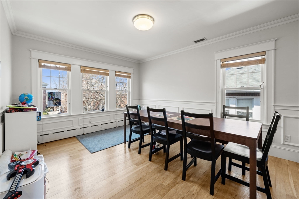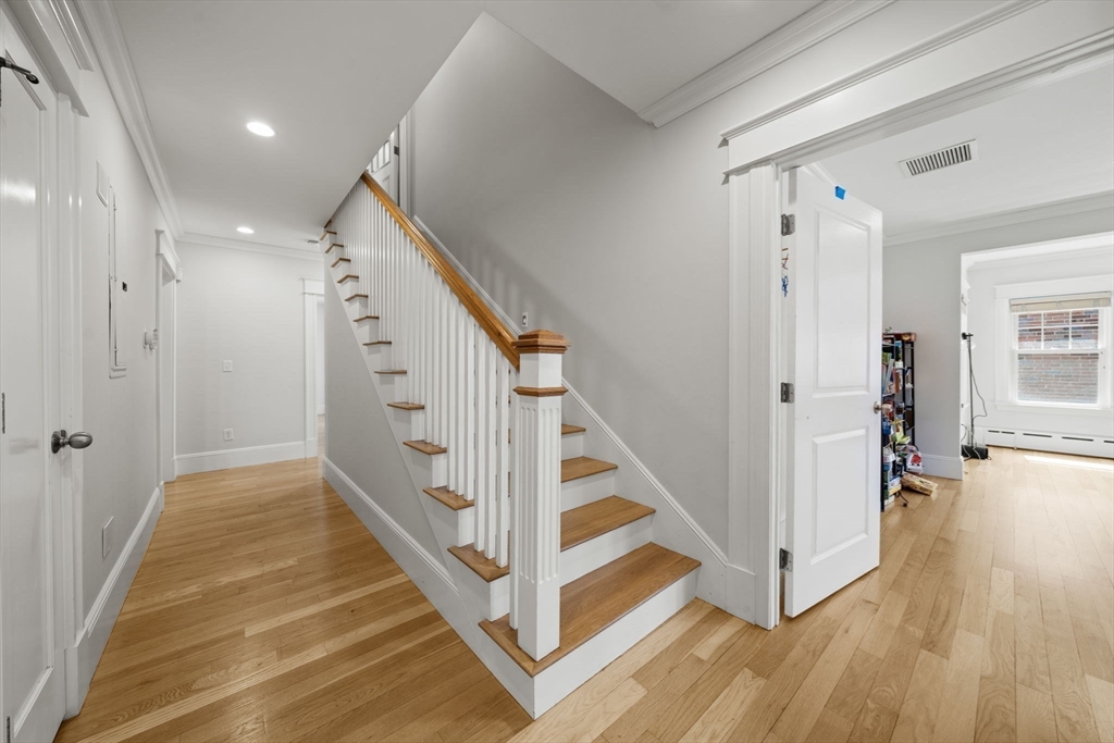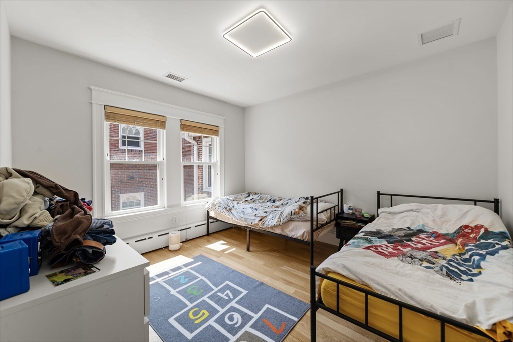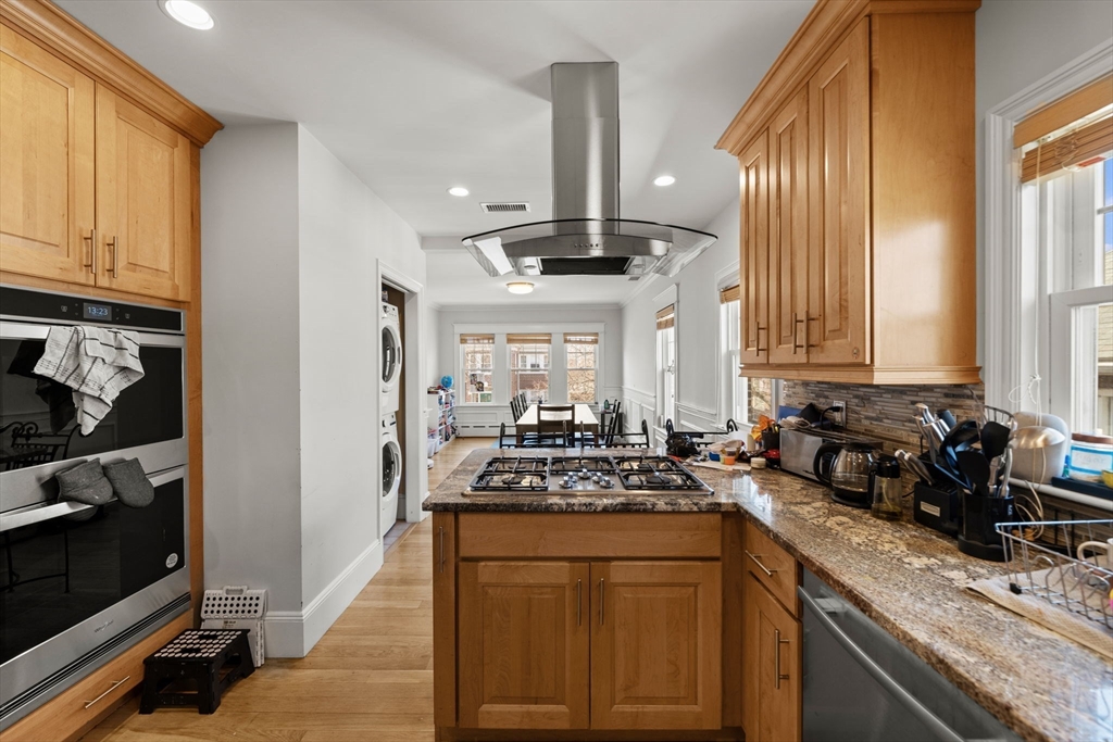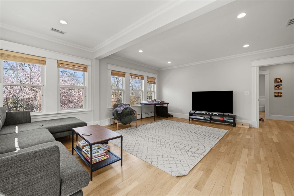 Truly special 4-bedroom, 3-bathroom penthouse offering two full levels of living in the heart of Coolidge Corner. This thoughtfully designed home features an expansive open layout with three large bedrooms and two full bathrooms on the main level, plus a bright and spacious loft above—perfect for a fourth bedroom, home office, or flexible living space—complete with its own full bath. The standout eat-in kitchen is built for both everyday living and entertaining, featuring double ovens, a gas cooking range, and a high-tech ventilation system. The open living and dining area flows seamlessly, creating a comfortable and functional space filled with natural light.Additional highlights include central A/C, in-unit laundry, a front balcony, rear deck, and two tandem off-street parking spaces. Fully renovated down to the studs in 2013, the home offers modern systems and energy-efficient construction throughout. Unbeatable location just steps to Coolidge Corner!