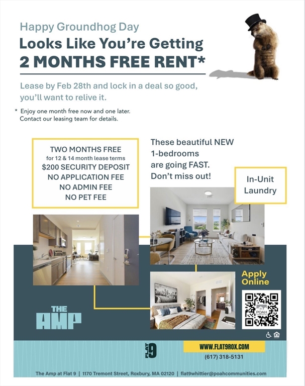 NO Fee & 1+ month FREE - Lower Roxbury’s newest modern luxury community located just steps from the Orange Line Ruggles Commuter Rail and T station. Featuring quartz countertops, stainless steel appliances, an in-unit washer & dryer, luxury vinyl flooring, designer pendant lighting, spacious closets, & central AC. Enjoy an exceptional array of amenities, including a wellness room, a rooftop terrace with sweeping city views on the 11th floor, facility & outdoor spaces on the 3rd floor, and a game room, stage & lounge on the 1st floor. Additional conveniences include a business center, a community/recreation room, secure package receiving, & on-site maintenance. Parking available by lottery. Commercial retail space on the ground level. Two blocks from Northeastern University, & easy access to Universities, Hospitals, Boston Medical Center, Tufts Medical and Downtown Boston. Contact agent for Concessions offered. 8 & 12 month leases available. Can come furnished!