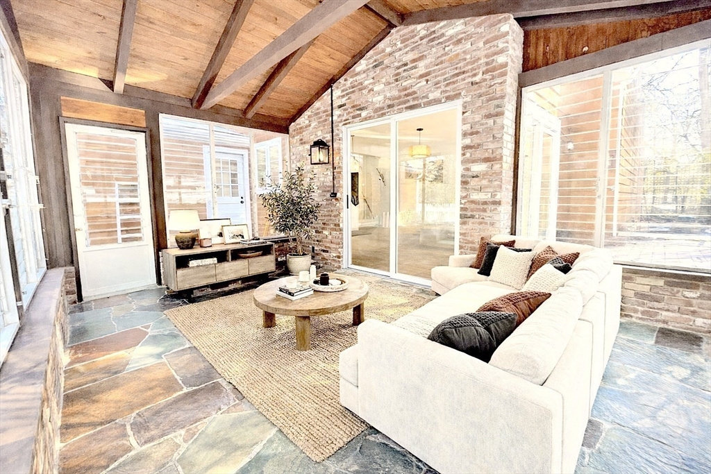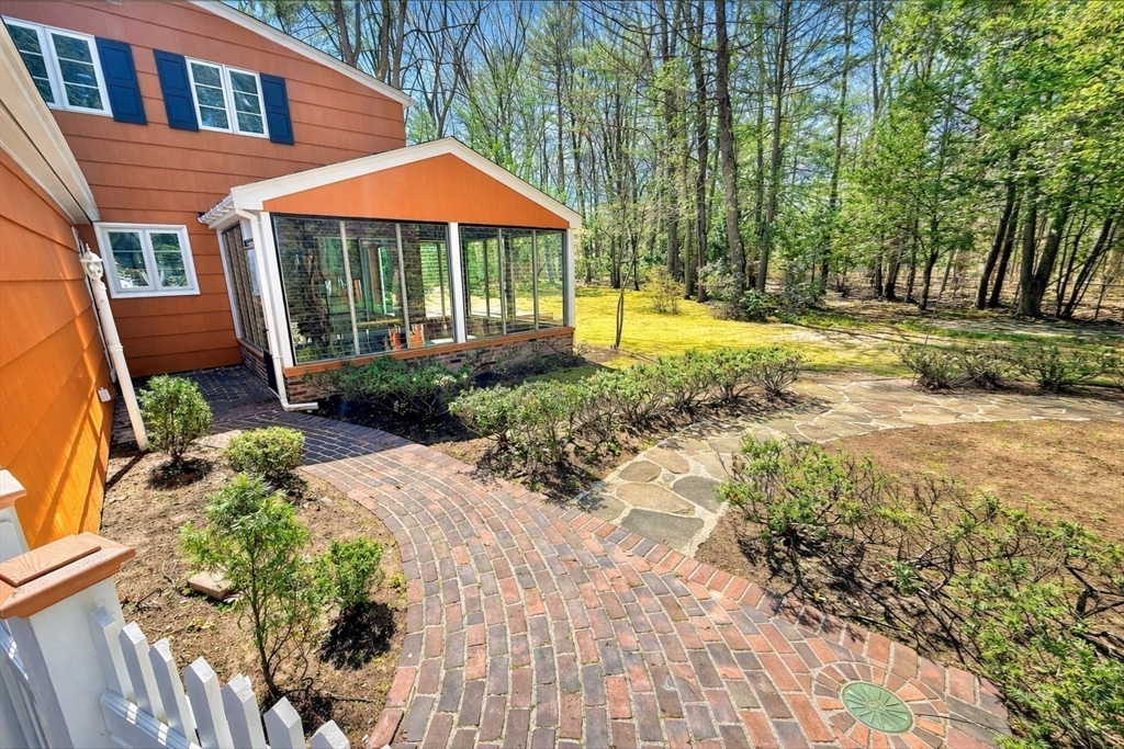 Quiet elegance of New York Colonial home meticulously remodeled with custom crafted elements in line with traditional design, craftsmanship & modern conveniences, Spectacular setting in sought after cul-de-sac neighborhood, exquisite privacy, tremendous use of space. Brick facade features farmer’s porch, inviting living area feat. sky-lit atrium with beamed high ceilings, lovely family room with coffered ceiling, serene sunroom, eat-in kitchen, island/dinning opens to a deck, spacious private patio, overlooking lovely garden and tranquil sitting area. Charming lower level offers extra space with lots of storage. Bespoke cabinetry, matched period details/fixtures/hardware, high ceilings, oak flooring. Updates include roof and gutters, windows, doors, sliders, garage door, floors, electric service, siding, gas cooking, deck, patio,AC, all fenced-in yard, equipped with sprinkler system and back up generator ready, fully powered shed. Superb location boasting local trails, parks and nature