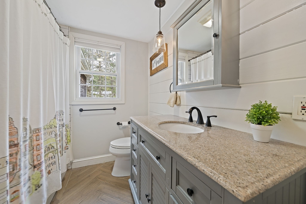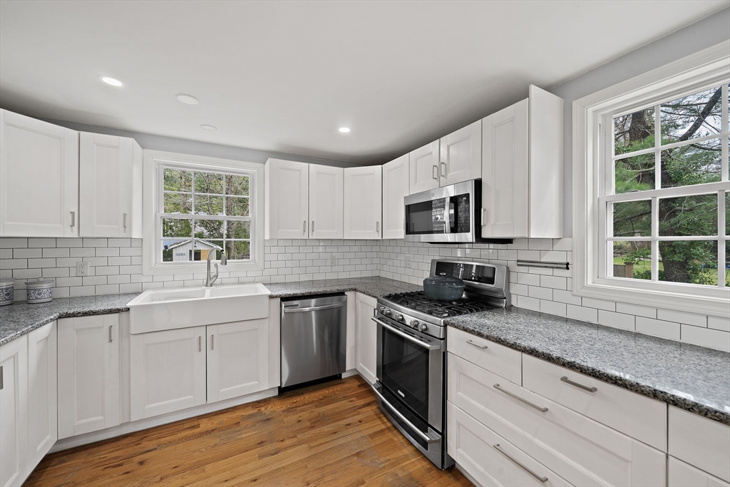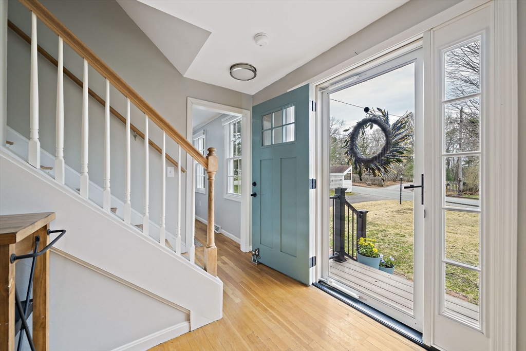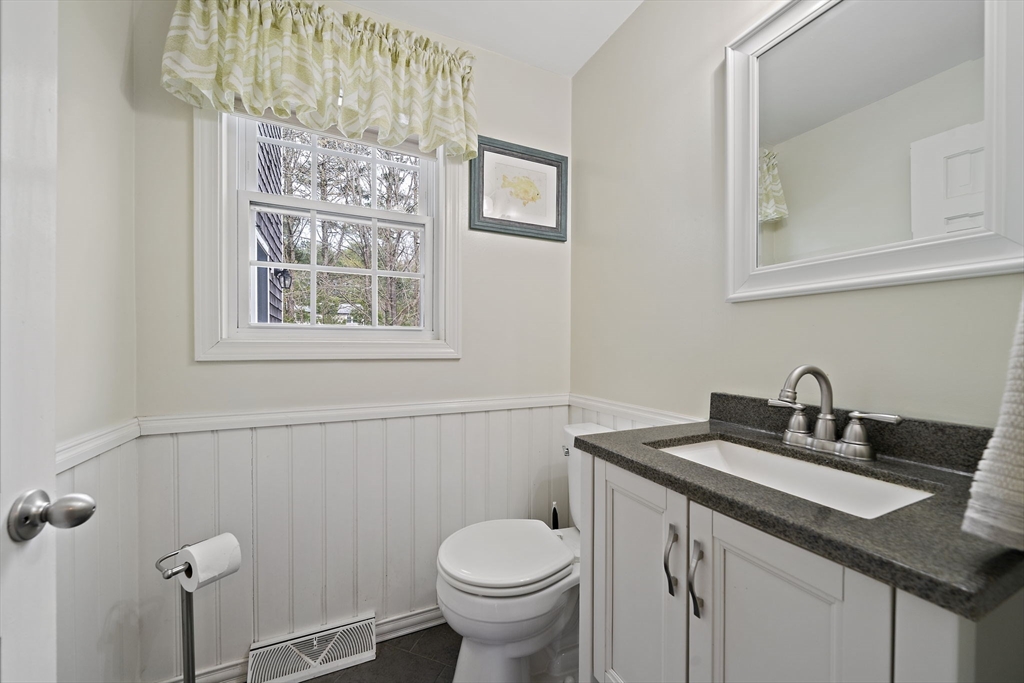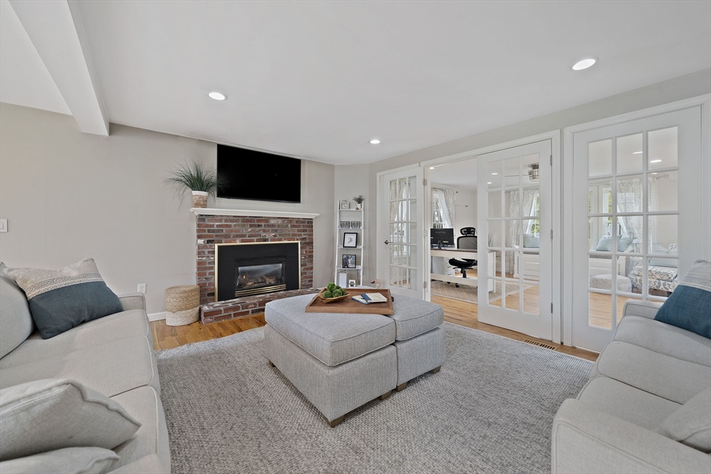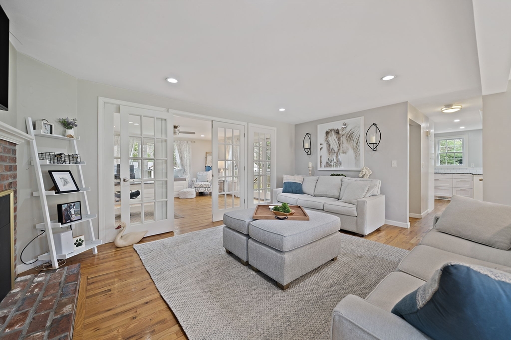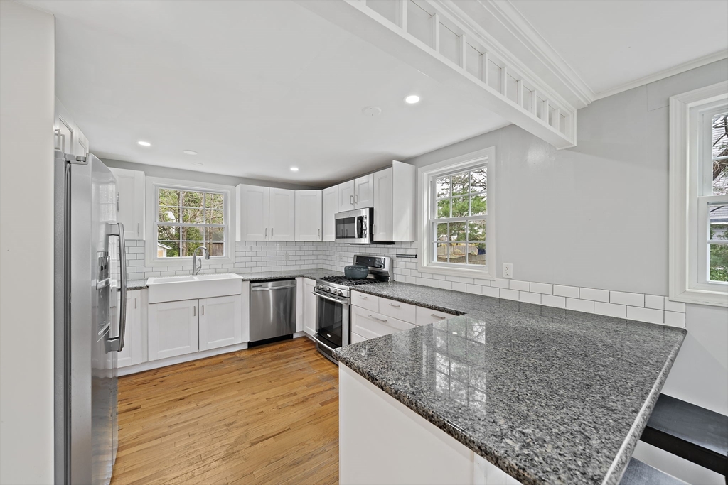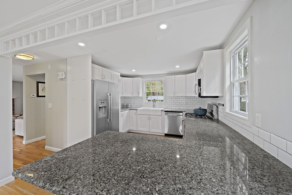 Meticulously maintained Cape in the highly desirable Blackmount area of Marshfield.This 3BR/2.5BA home offers 2,006 sq ft of beautifully updated living space on a lovely 0.46-acre lot. The renovated kitchen features granite countertops, white shaker cabinets, subway tile backsplash, farmhouse sink & stainless appliances, plus a breakfast nook & separate dining area. The living room boasts a brick fireplace & French doors leading to a bright home office. First-floor laundry & half bath. Upstairs find a primary suite with oversized closet & en suite bath, two additional bedrooms each with generous closet space, & full hall bath. Oversized 2-car garage with bonus space above offering incredible expansion potential. Unfinished basement with great potential, central A/C, gas heat & hardwood floors throughout. Close to schools, beaches, shopping & highway access. Don't miss this one! Offers due Saturday by 5pm