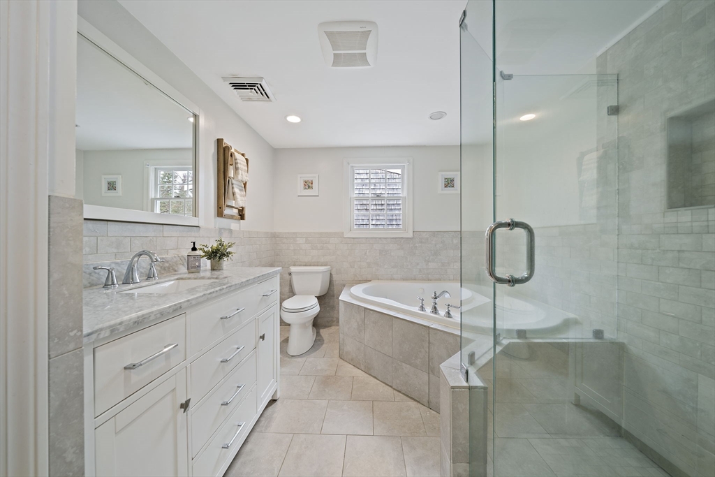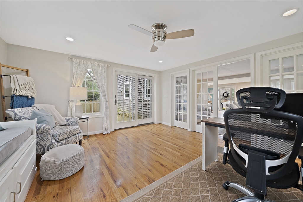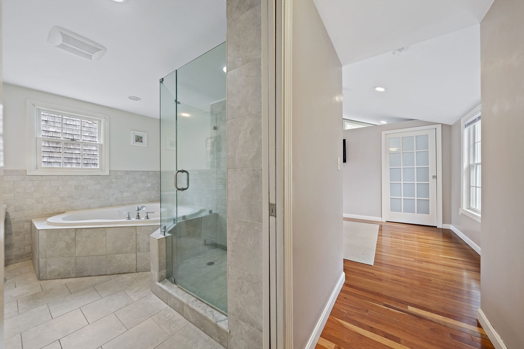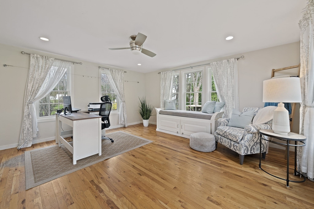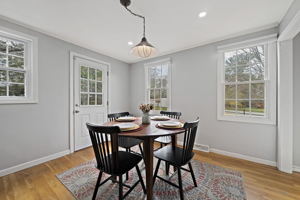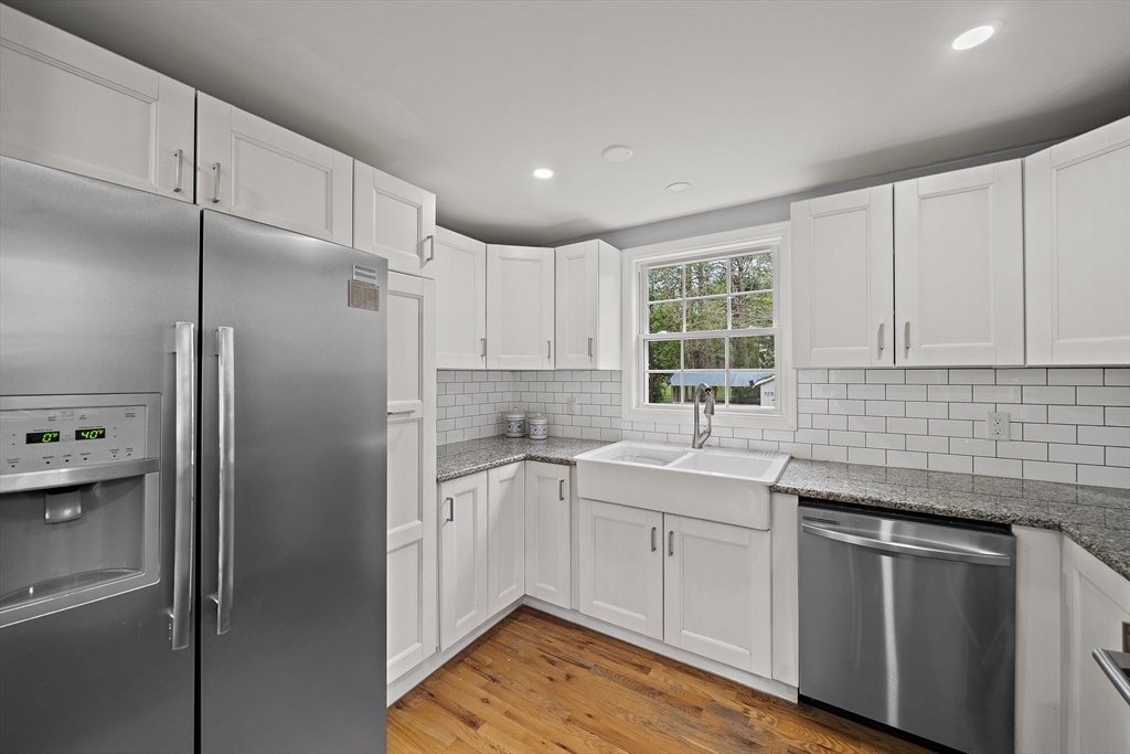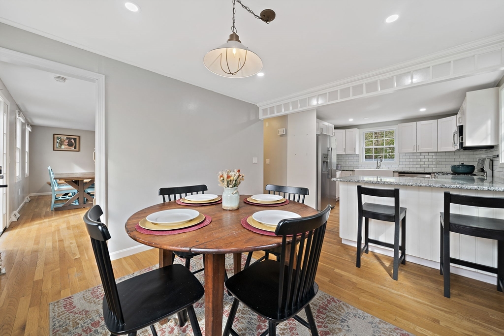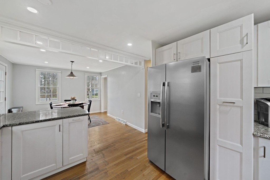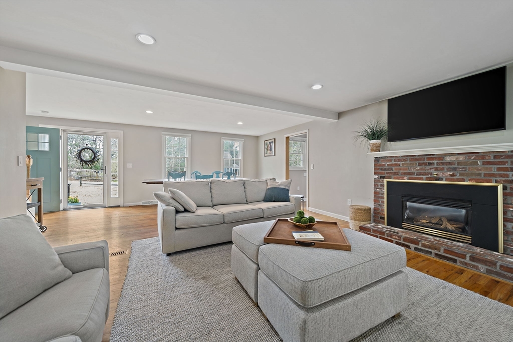 Meticulously maintained Cape in the highly desirable Blackmount area of Marshfield.This 3BR/2.5BA home offers 2,006 sq ft of beautifully updated living space on a lovely 0.46-acre lot. The renovated kitchen features granite countertops, white shaker cabinets, subway tile backsplash, farmhouse sink & stainless appliances, plus a breakfast nook & separate dining area. The living room boasts a brick fireplace & French doors leading to a bright home office. First-floor laundry & half bath. Upstairs find a primary suite with oversized closet & en suite bath, two additional bedrooms each with generous closet space, & full hall bath. Oversized 2-car garage with bonus space above offering incredible expansion potential. Unfinished basement with great potential, central A/C, gas heat & hardwood floors throughout. Close to schools, beaches, shopping & highway access. Don't miss this one! Offers due Saturday by 5pm