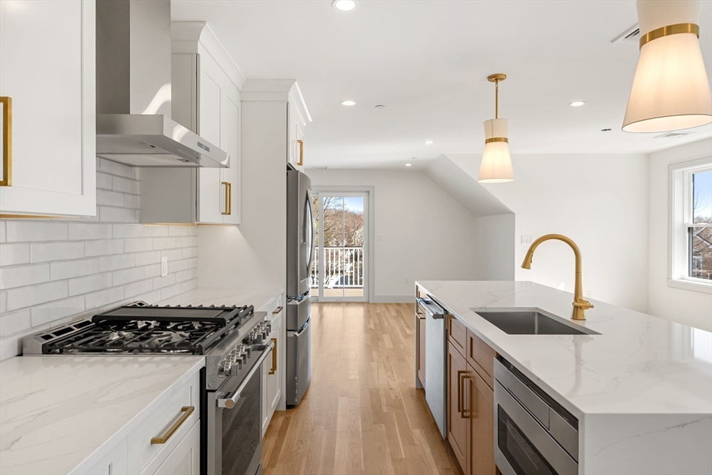 Perfectly positioned across from Spot Pond, this newly constructed top-floor residence at 6–8 South Street, Unit 3 offers a refined blend of luxury and natural beauty within an exclusive three-unit luxury development. This sophisticated 2-bedroom, 2-bath home showcases elevated finishes throughout, including white oak flooring and designer quartz surfaces in both the kitchen and baths. Crafted by an award-winning builder, the open-concept living space flows seamlessly to a private ~200 sq. ft deck, ideal for outdoor relaxation and entertaining, while select rooms capture partial pond views. Ideally situated with convenient access to Interstate 93, and moments from the trails of Middlesex Fells Reservation and Stone Zoo. Offered at $699,900, with two off-street parking spaces and dedicated storage, and alongside two additional 3-bedroom residences offered at $749,900, this is a rare opportunity to own new construction luxury at an exceptional value.