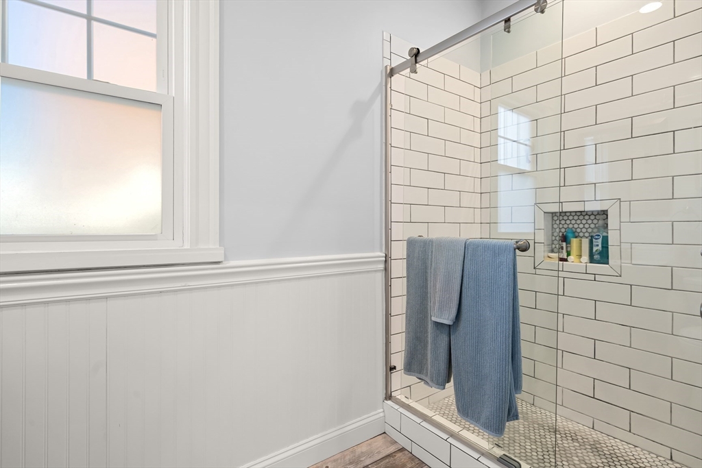 Highly desirable renovated colonial w/ authentic South Boston charm on a quiet street in the heart of Southie. This 3-bed, 2-bath home delivers timeless character—soaring ceilings, new & refinished hardwoods, and a striking exposed Bostonian brick wall framing the foyer and stairway—alongside polished modern updates. The kitchen features gas cooking & stainless steel appliances; renovated bathrooms are crisp and contemporary. Second-floor skylights flood the hallway w/ natural light, and the spacious primary bedroom features a walk-in closet. Stay comfortable year-round w/ high-efficiency hydro-air heat & central A/C. Approximately 1,470 sq ft above grade is complemented by a partially finished 692 sq ft lower level—ideal for a gym, studio, or hobby space. Step outside to a private enclosed patio perfect for quiet mornings or alfresco evenings. Move-in ready & refreshingly one-of-a-kind, this Southie gem puts you moments from the beach, local restaurants, and neighborhood shops.