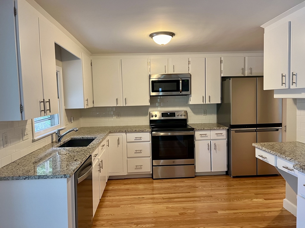 Beautifully renovated Wellesley home in prime location! This stunning brick front home offers exceptional space, style, and comfort with 4 to 5 bedrooms and 2 1/2 baths. Featuring a totally renovated gourmet kitchen and updated bathrooms, this home is an excellent, immaculate, move-in ready condition. The spacious layout includes a fireplace, living room, formal dining room, and a large family room with a brick wall fireplace, perfect for both every day living and entertaining. The updated eat in kitchen offers granite countertops, stainless steel appliances, and sliding glass doors leading to the patio and backyard. The large primary bedroom features a beautifully renovated en suite bath. Additional highlights include central air, and oversize two car garage and a lovely yard complete with patio and Stone walls. Ideally located close to Wellesley shopping, commuter routes and nearby train. Pets are on a case by case basis.