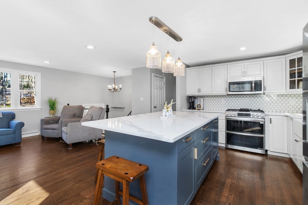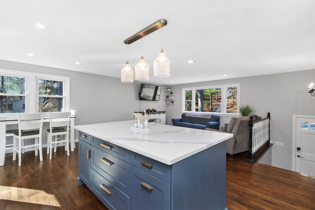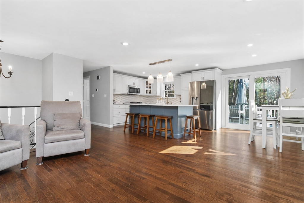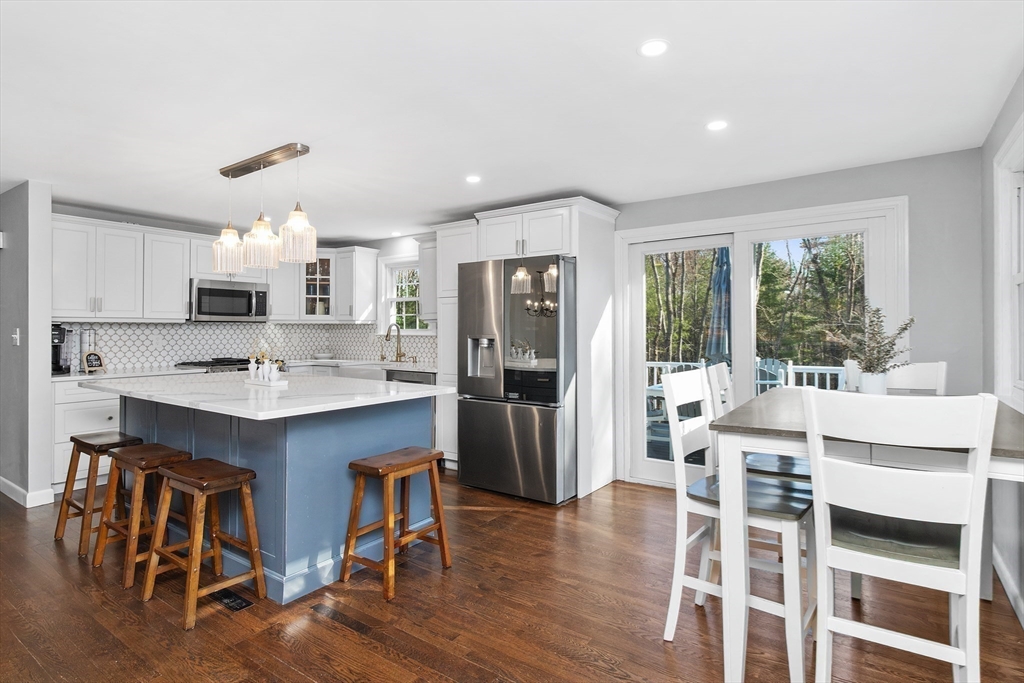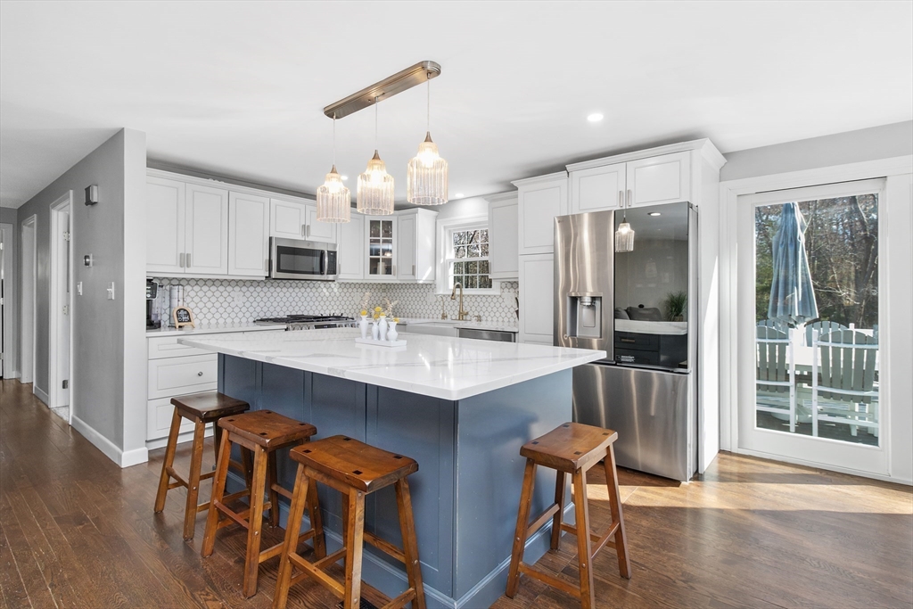 Set along one of Norwell’s most scenic roads, this beautifully updated 3 bed, 2 bath home offers comfort and modern convenience. The kitchen features granite countertops, stainless steel appliances, and an open layout centered around a large island with sliding glass doors leading to a TimberTech deck. Bright, open living and dining areas feature hardwood floors that continue through all three bedrooms. The main level showcases a beautifully updated bath with a double vanity, sleek countertops, custom tilework, and a glass-enclosed shower with gold-tone fixtures. The lower level offers a spacious family room with gas fireplace, full bath, and a finished bonus room with walk-out access-ideal for an office, gym, or flexible space. Recent upgrades include CertainTeed Cedar Impressions siding, paved driveway, new walkway with granite stairs, updated 200-amp electrical, whole house generator, and newer appliances. Move-in ready and minutes to Scituate Harbor, Greenbush and Norwell Center.