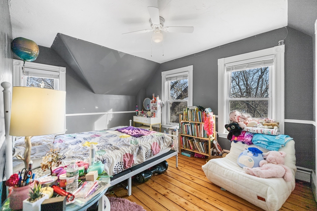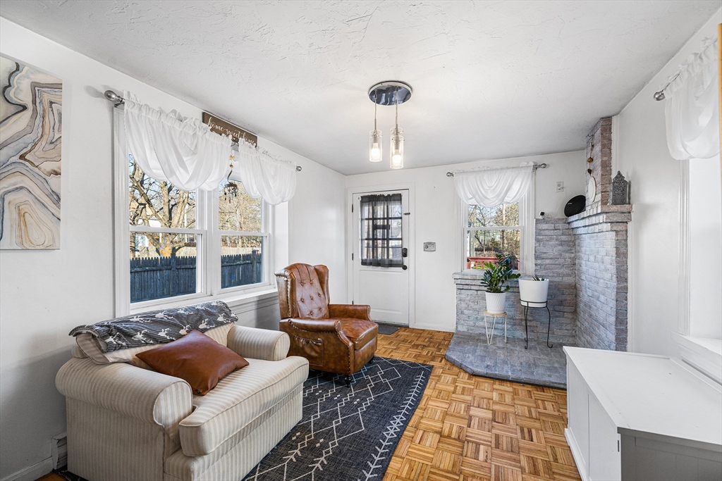 Showings begin this weekend at the Open Houses - Don't miss out on this home!Welcome home to this charming 3-bedroom NE Farmhouse tucked away on a dead-end street that blends timeless charm with modern conveniences. This home offers more space than meets the eye starting with the welcoming enclosed porch with custom built-in storage. The living room features an electric fireplace & has plenty of room to keep everyone comfortable. The spacious kitchen features SS appliances, ample cabinetry & a large peninsula that seats 3. The dining room & a family room are right off the kitchen making this a great space for everyone to gather. The partially finished basement adds even more flexibility—ideal as a media room, play space or work-out area. Enjoy outdoor living on the large deck overlooking the fully fenced private backyard and a sizable shed with electricity—perfect for hobbies or extra storage. Conveniently located near schools, recreation, outdoor trails and the commuter rail.