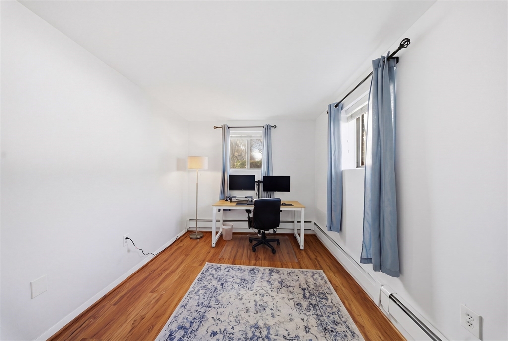 Experience commuter-friendly living at sought-after Briarwood Estates! Located just 0.2 miles from the Reading Commuter Rail Station, this home offers convenient access to Boston and surrounding areas. The updated kitchen features freshly painted cabinetry, new quartz countertops, and opens to the dining area after removal of a non-load-bearing wall, creating a bright, open layout ideal for entertaining. Recent updates include freshly painted walls, trim, doors, and closets (inside and out), recessed lighting in the living room, and a brand-new Bath Fitter tub. The spacious primary bedroom offers flexibility for a home office, with ample closet space throughout. Enjoy a Walk Score of 83 near shops, restaurants, Parker Tavern, and Reading Town Common. This professionally managed, pet-friendly community includes an in-ground pool, deeded parking, and low-maintenance living.
